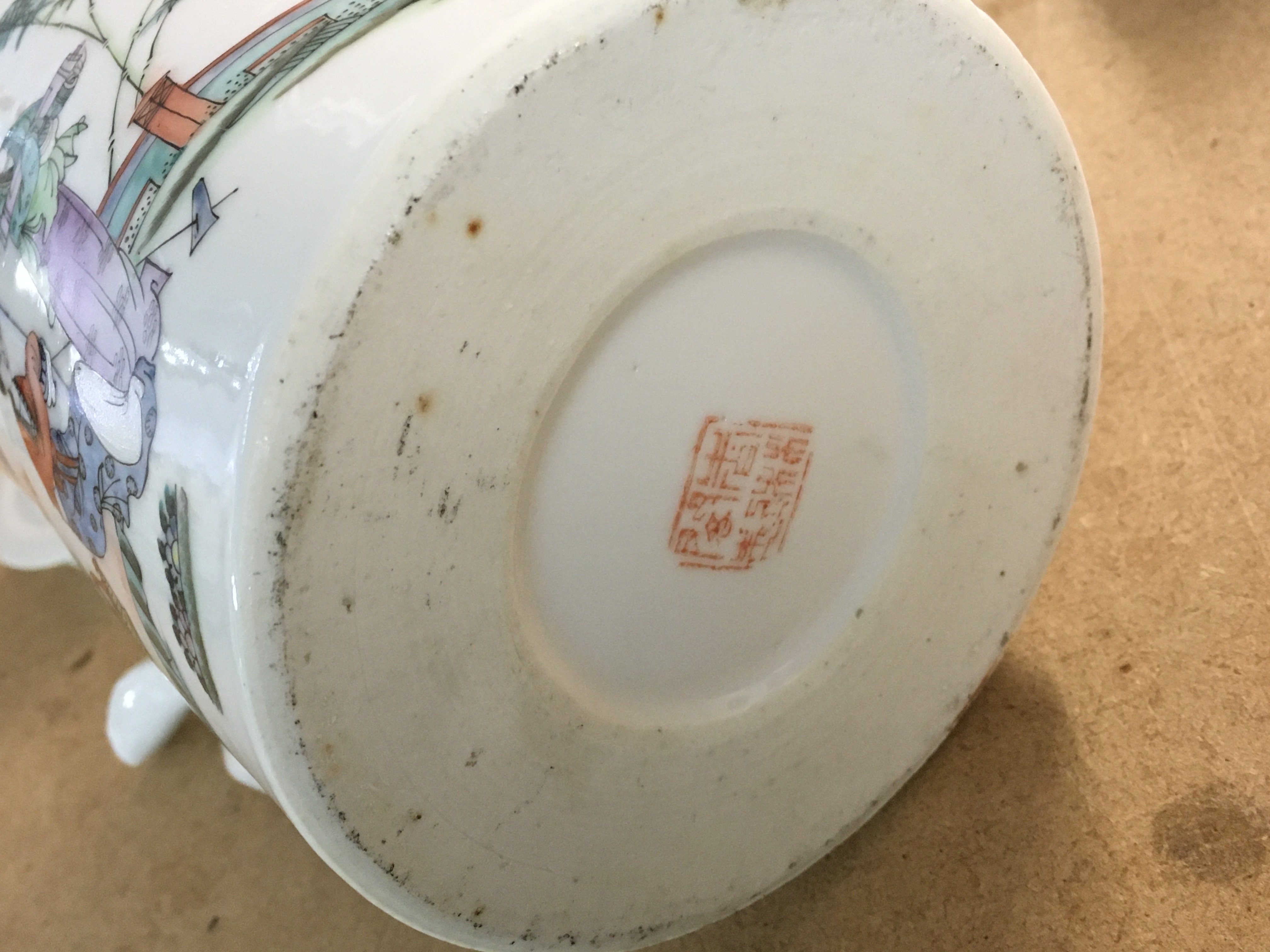 A Chinese blue and white porcelain bowl with lid along with other oriental items. Postage D