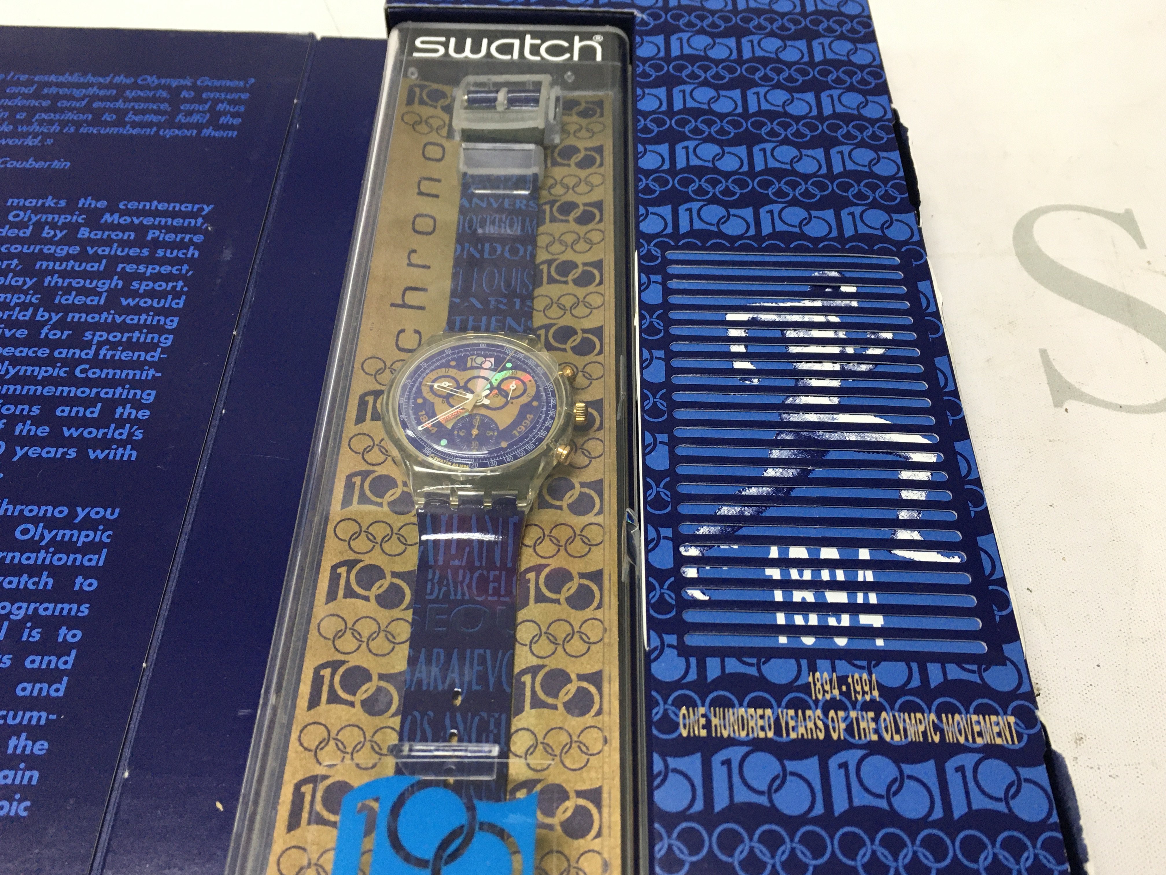 A swatch chrono scz101 "100 years of olympic movement" watch.