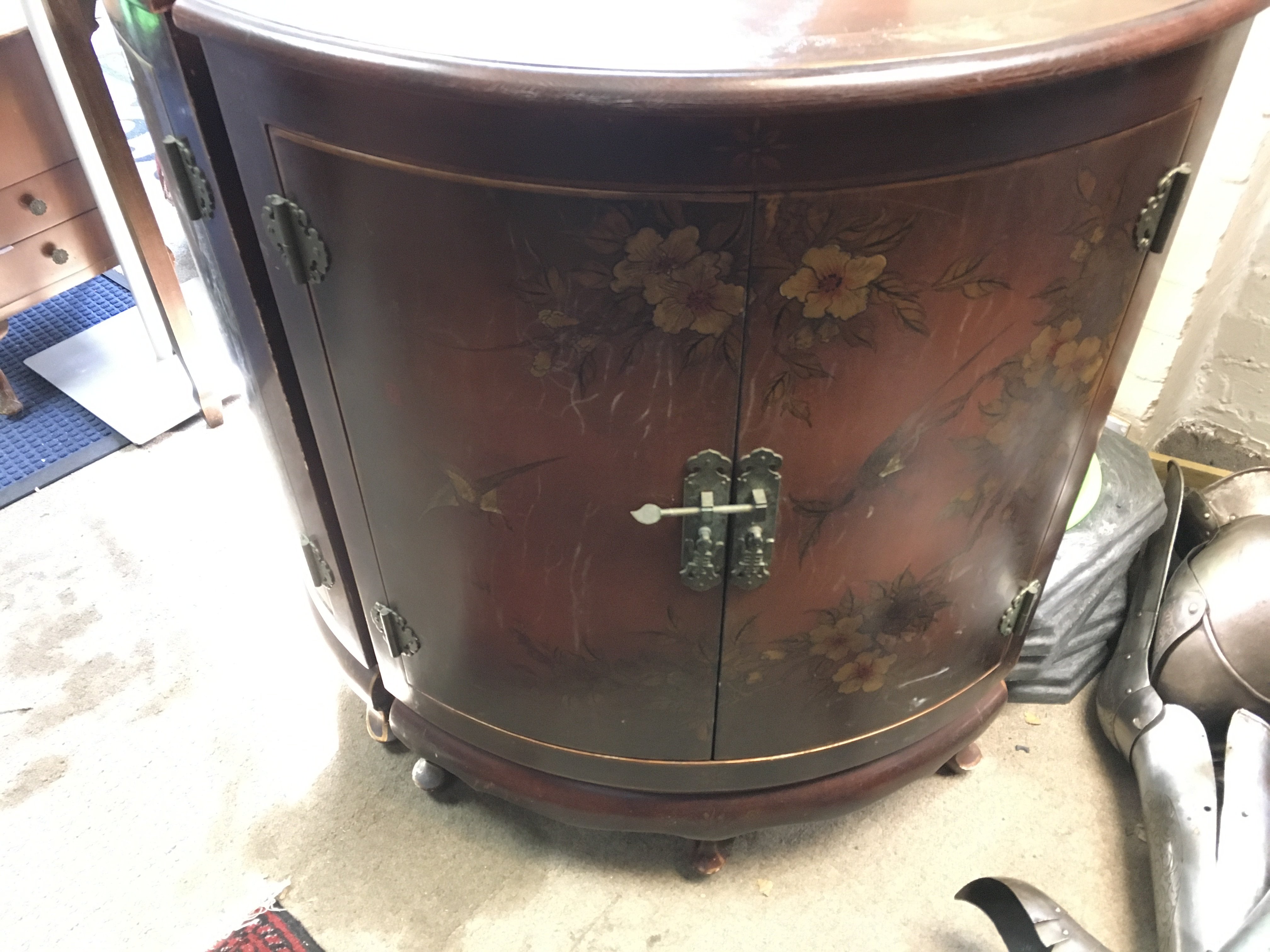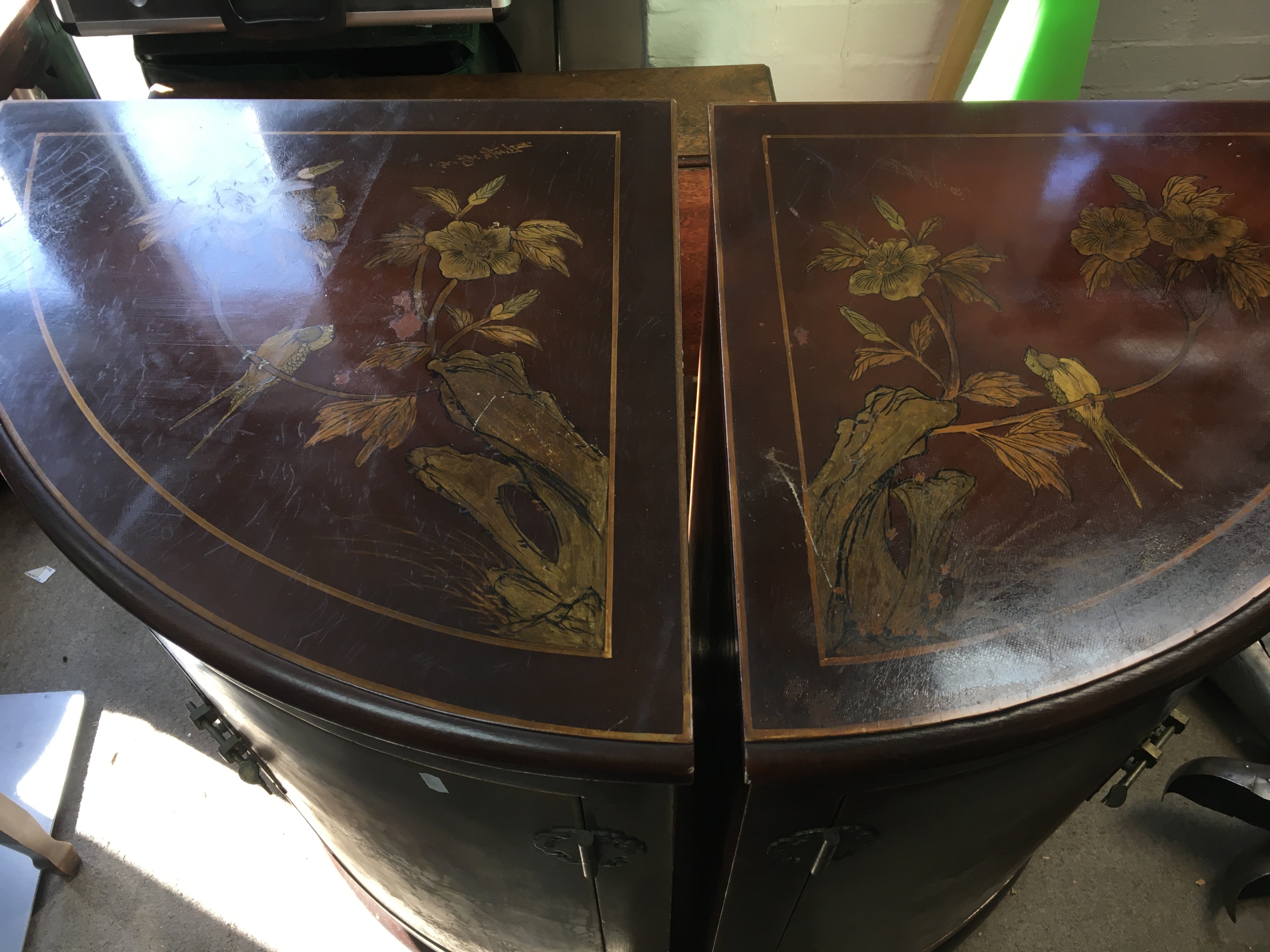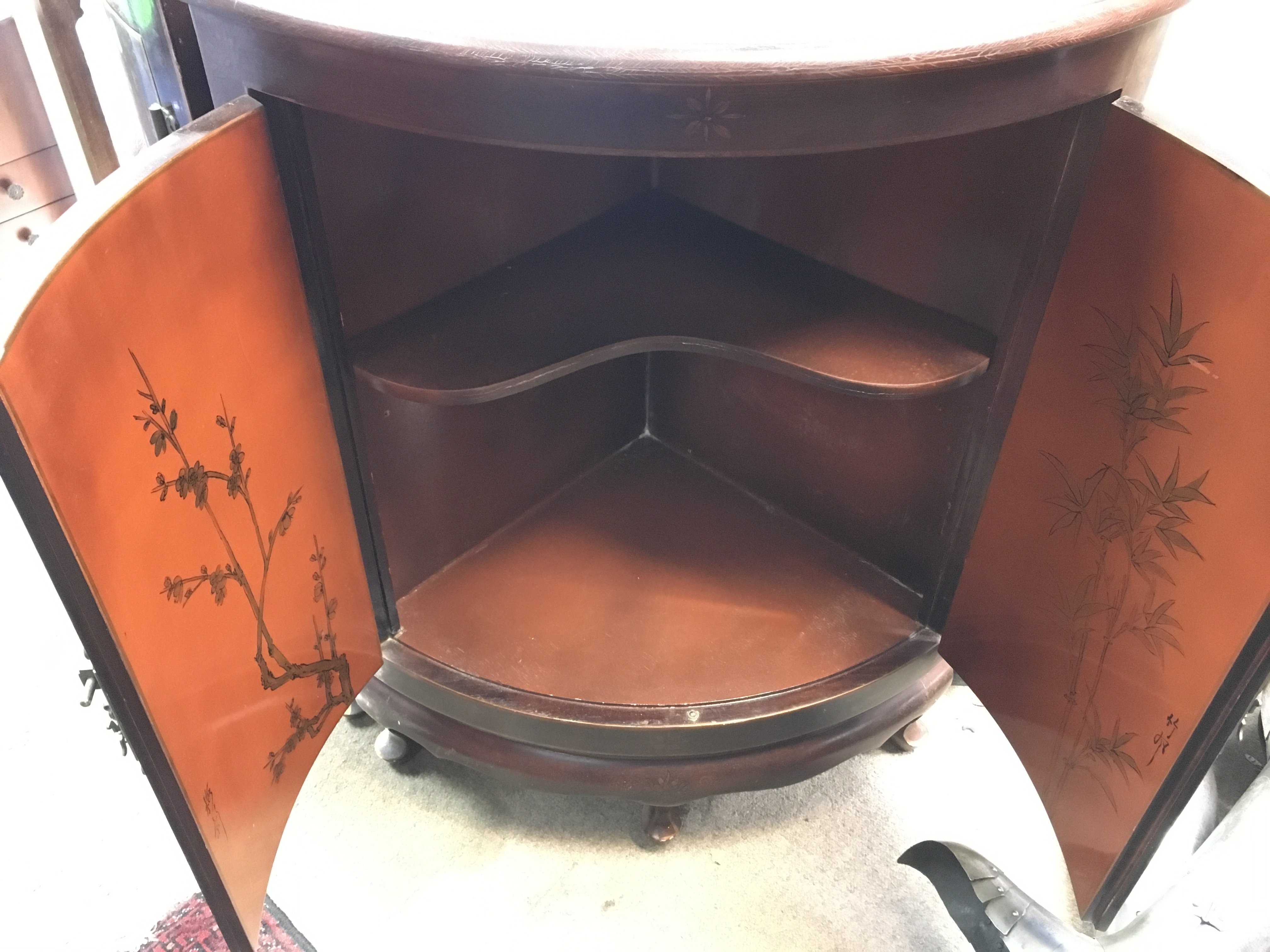 Two oriental style corner cabinets with Double doors and shelf inside. 19.5 wide by 36 tall.
