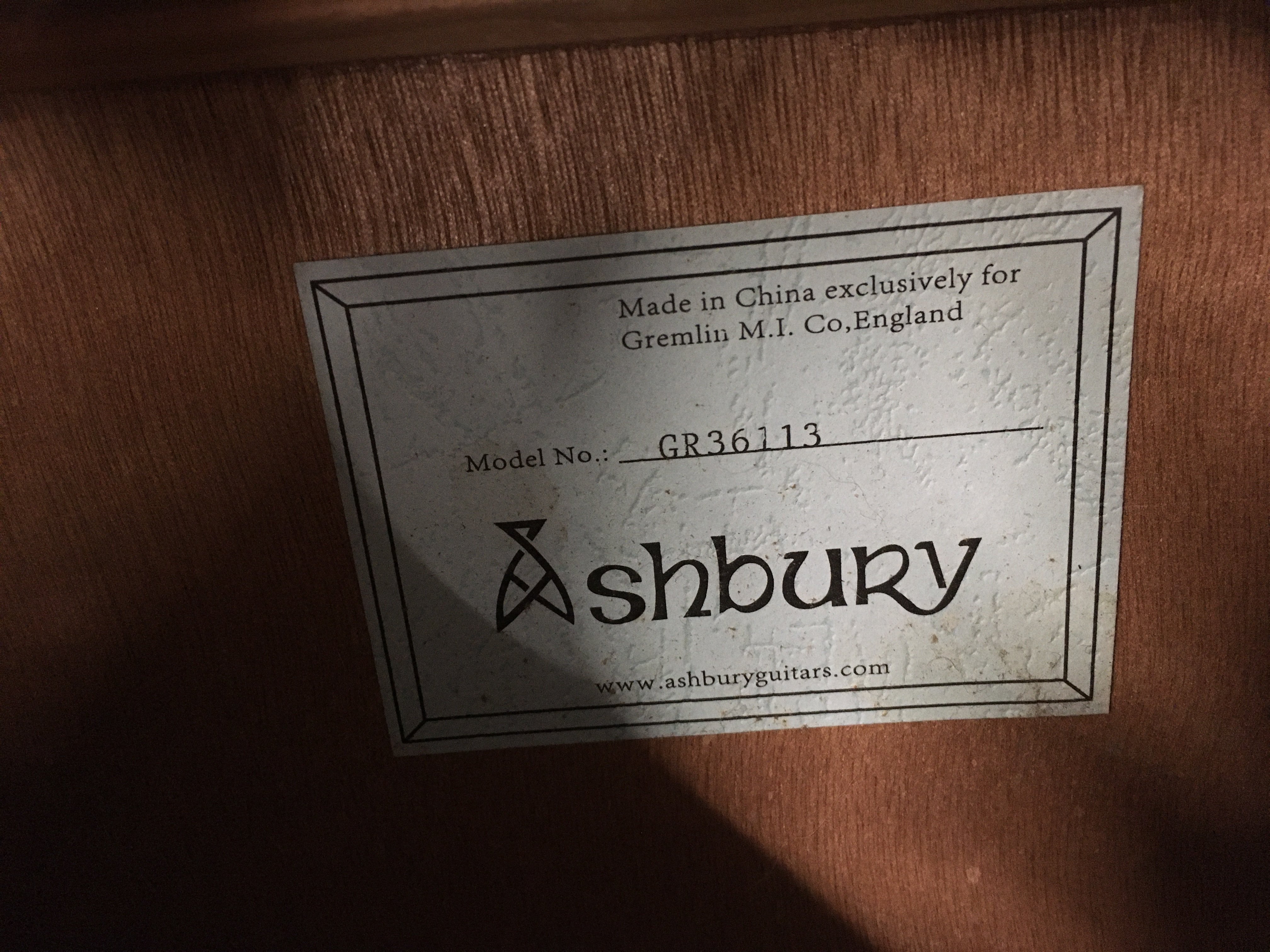 An Ashbury GR36113 four string tenor guitar with fitted carry case.