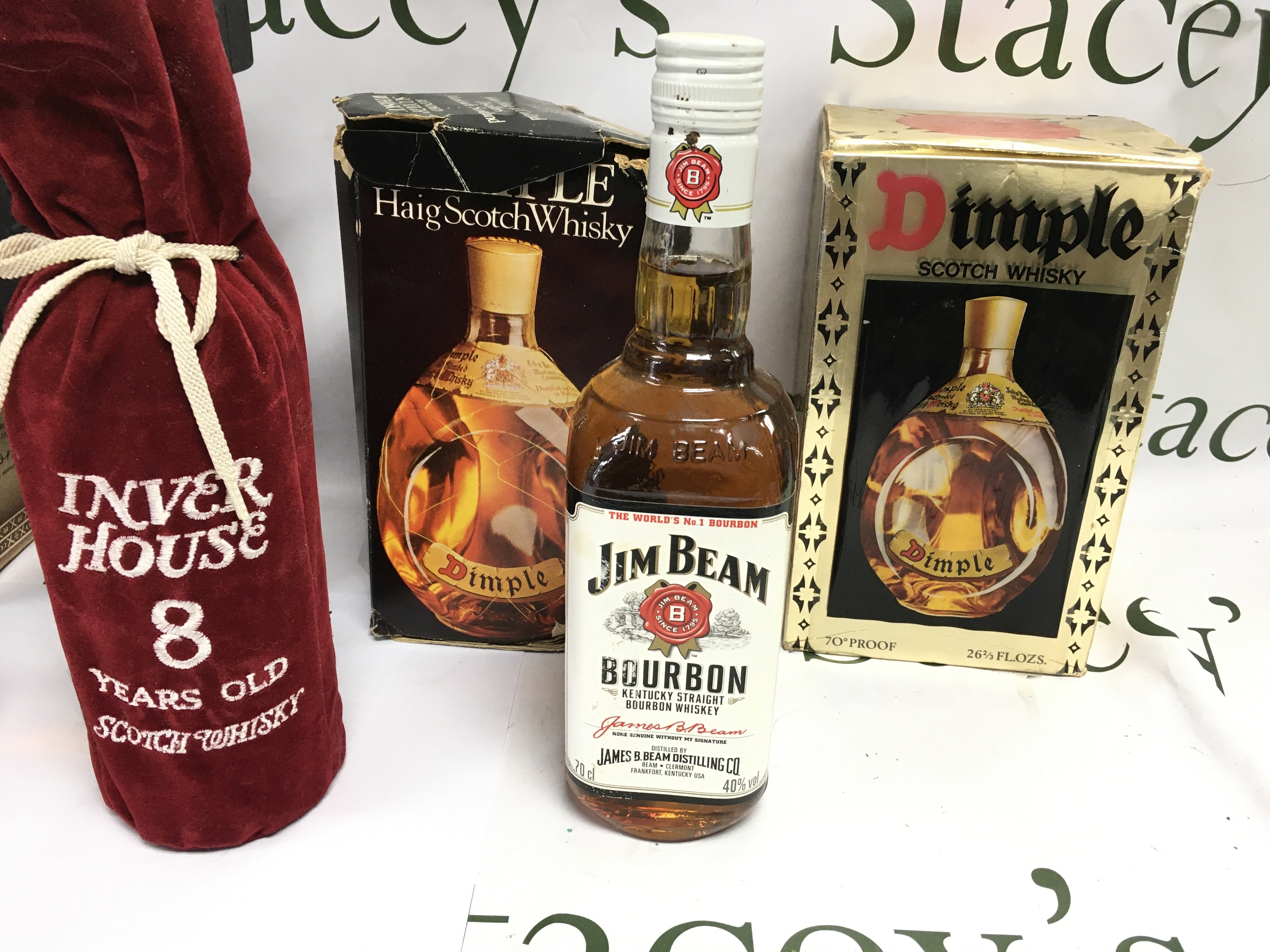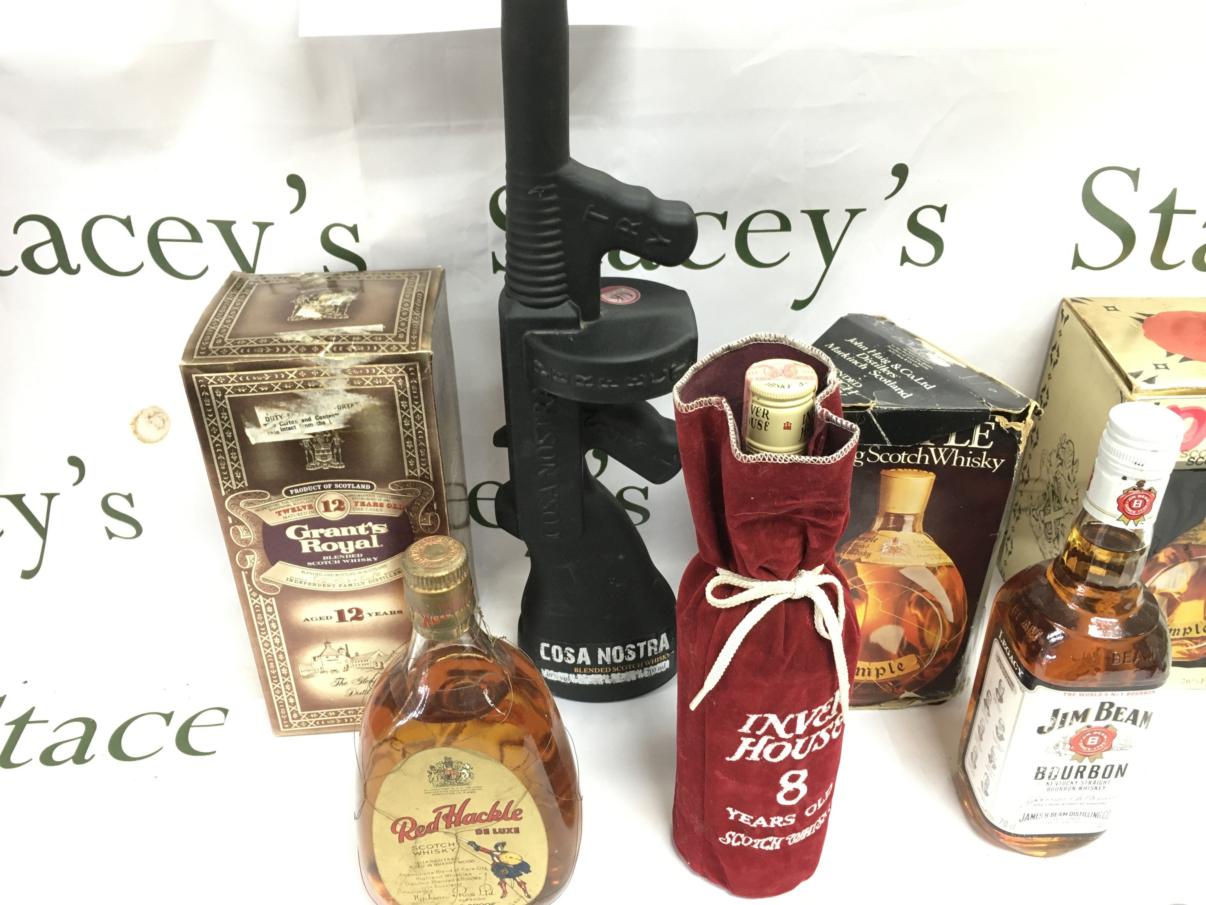 A collection of 7 bottles of various whiskey including Grants royal and dimple etc.