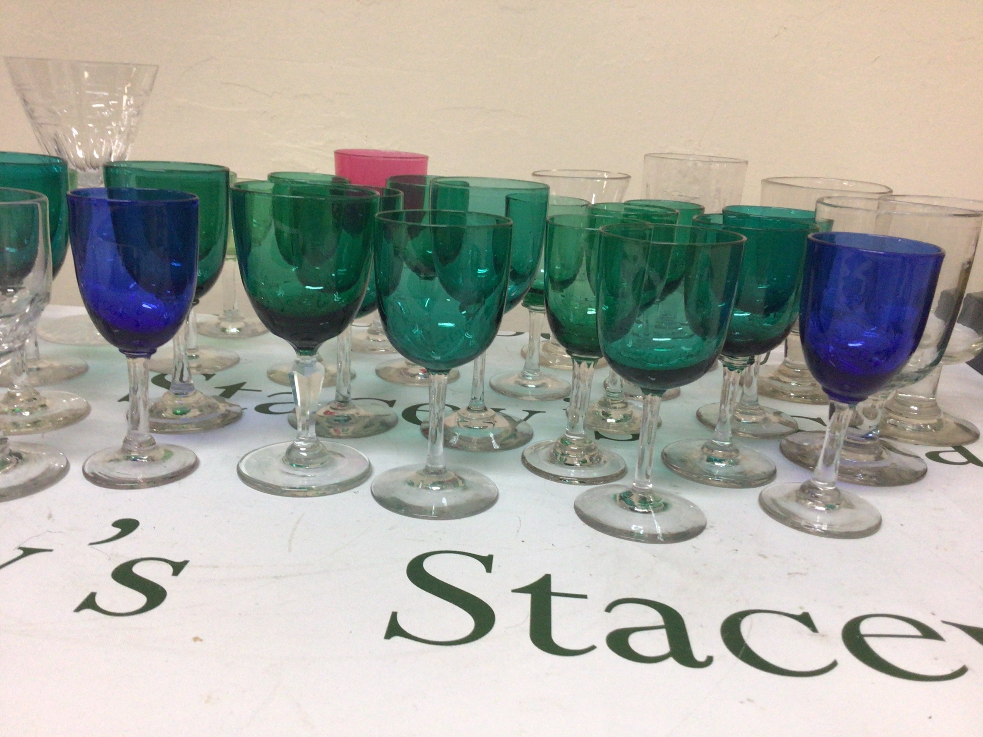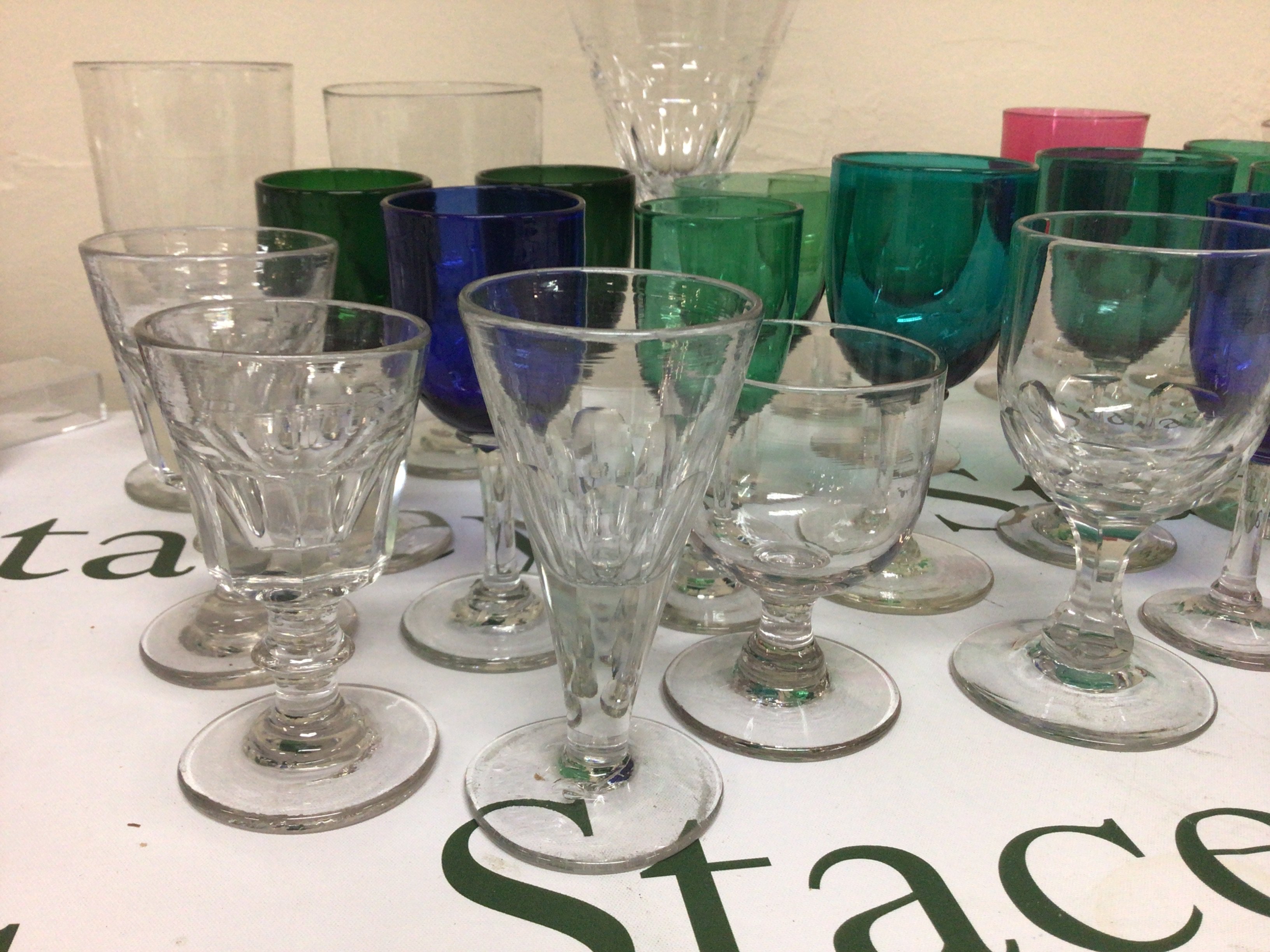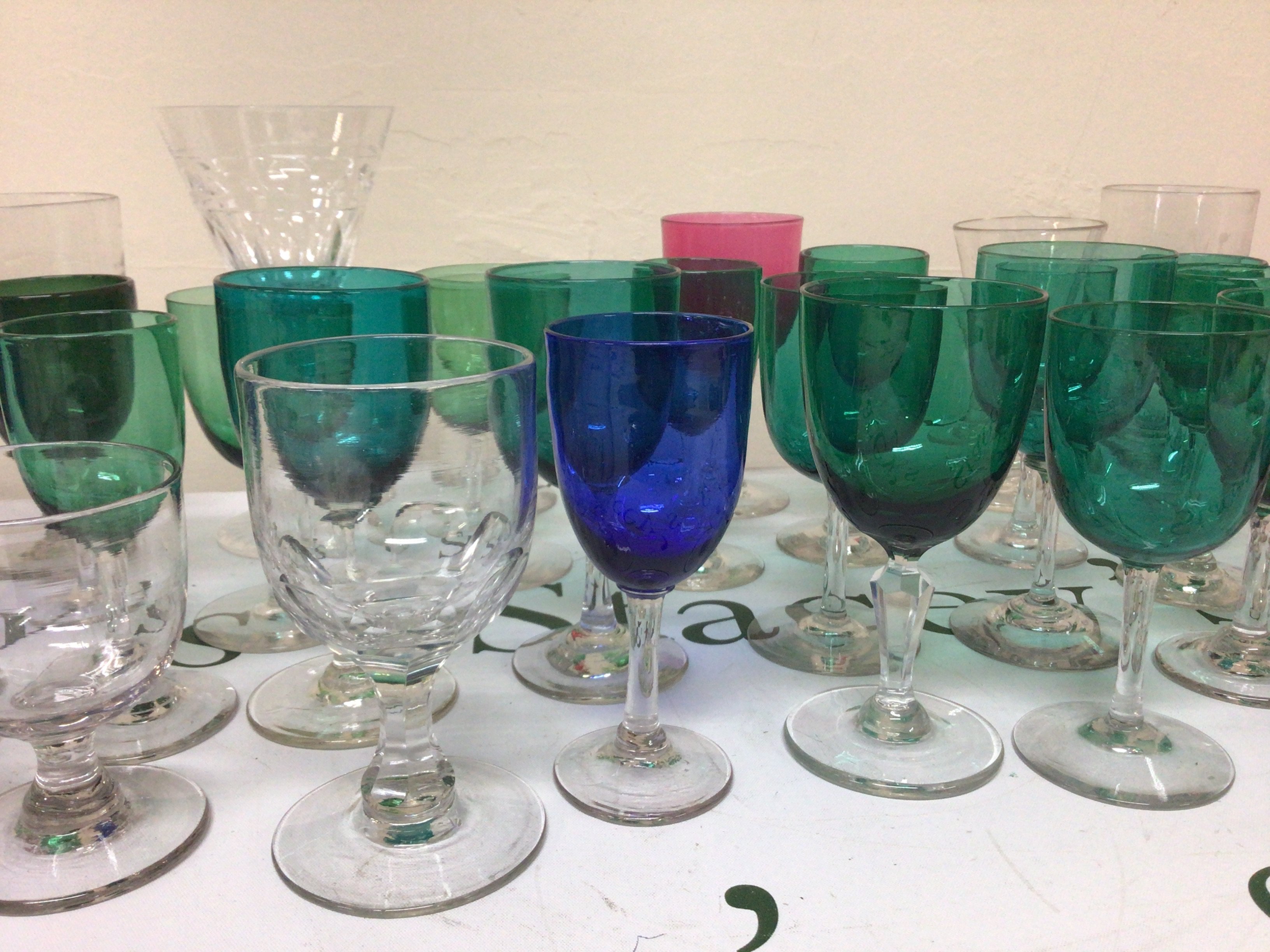 A collection of Victorian coloured wine glasses and other 19th century drinking glasses.no obvious damage.