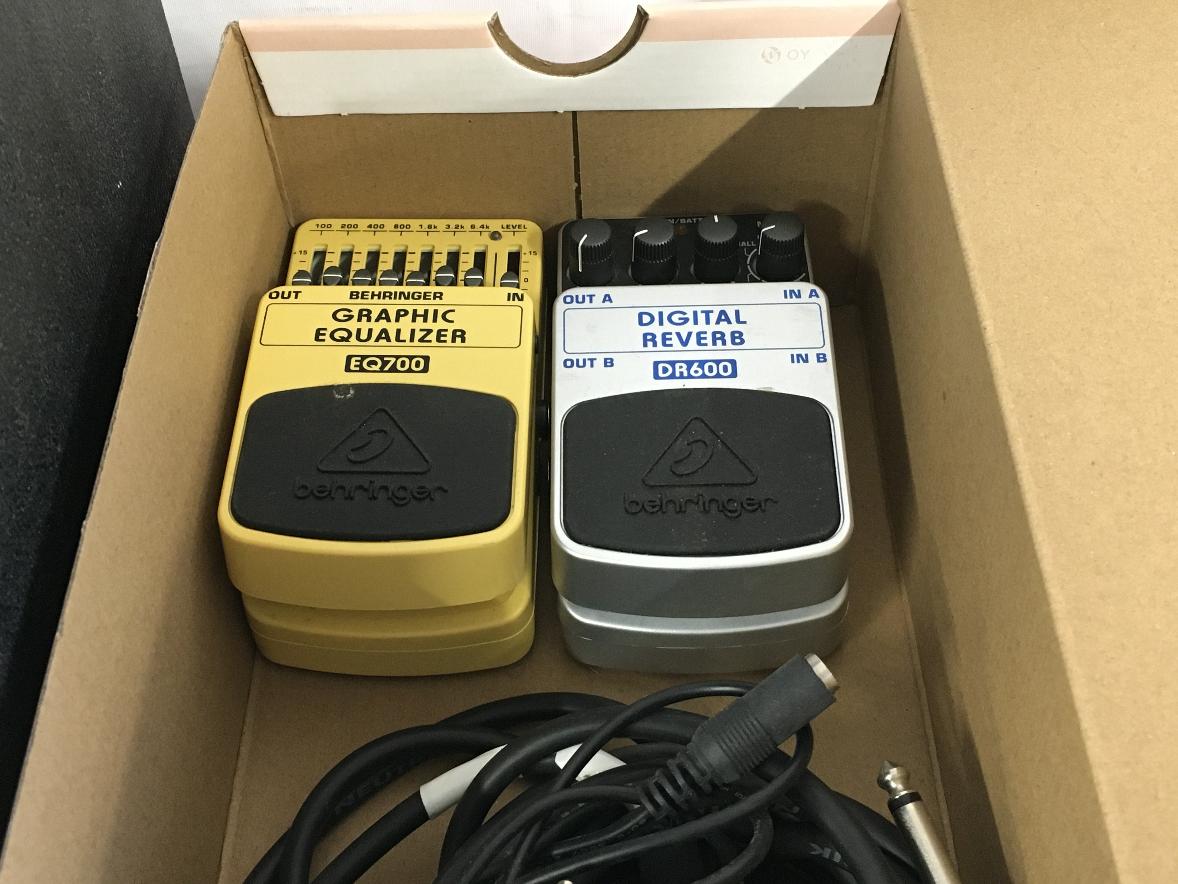 A Roland Cube 40XL amplifier and manual plus two Behringer effects pedals etc.
