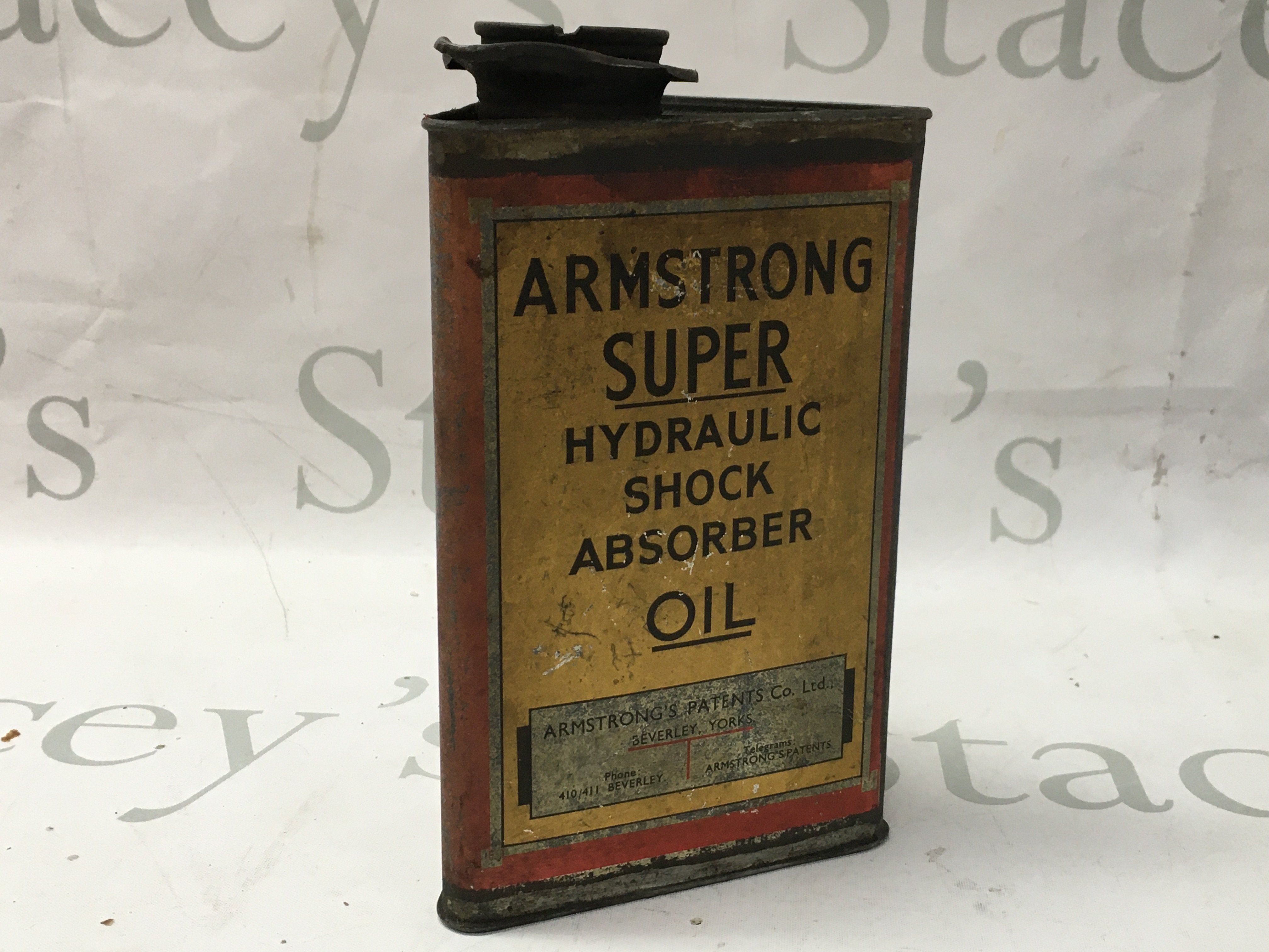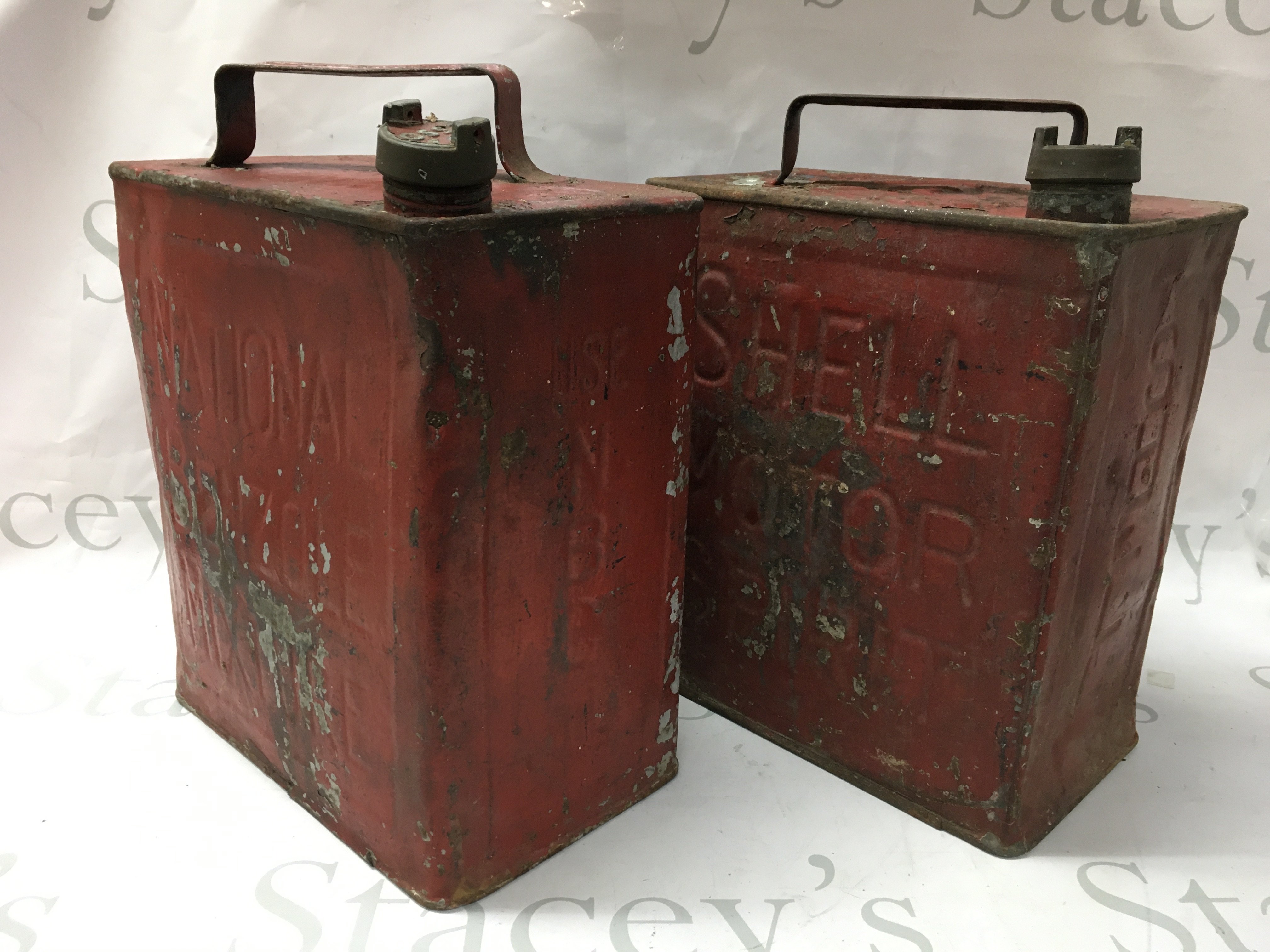 Two vintage Esso shell cans and one armstrong hydraulic oil cans.