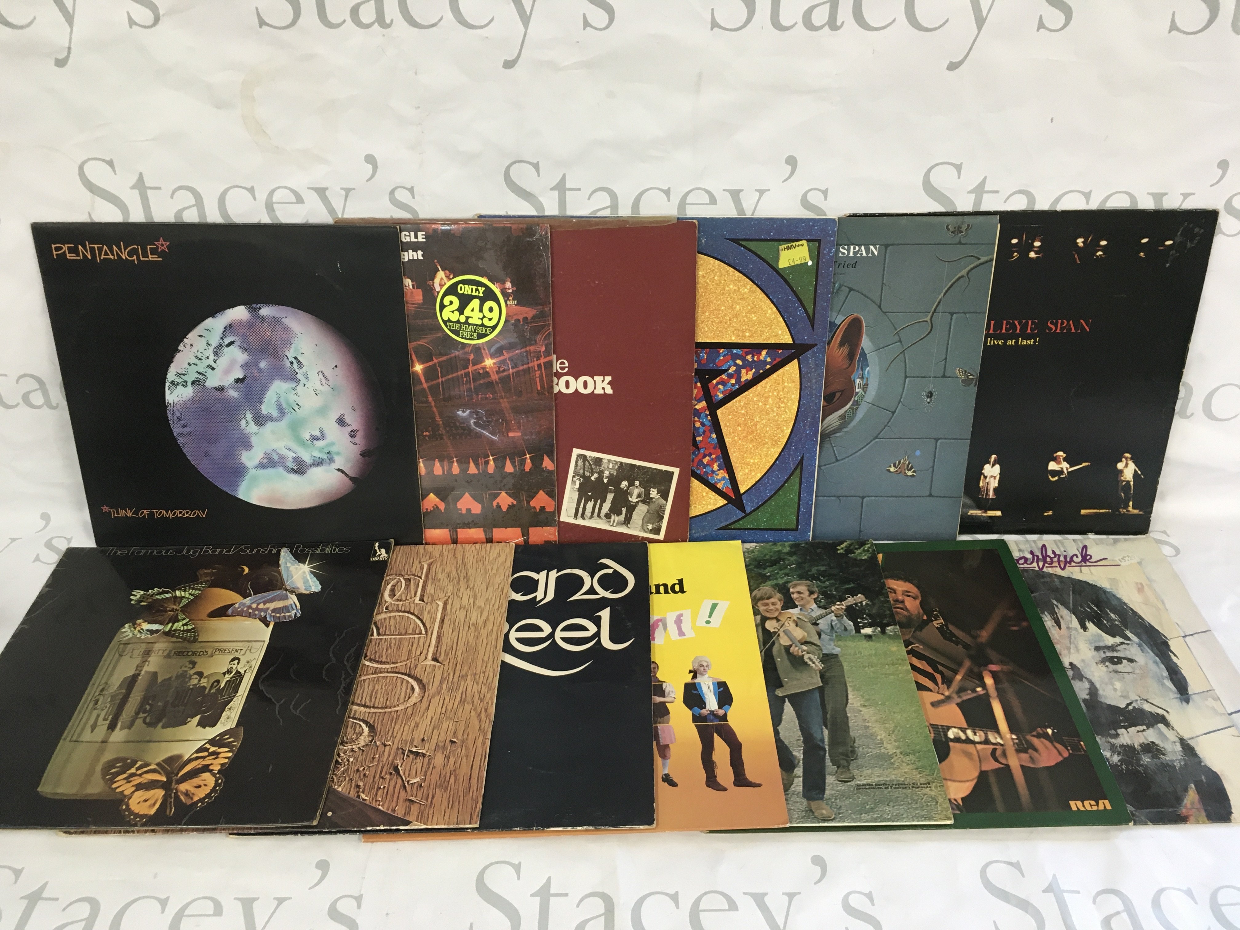 Two bags containing 26 folk rock LPs by various artists including Bob Dylan, Pentangle, Fairport Convention and others plus a Bert Jansch 5 track EP.
