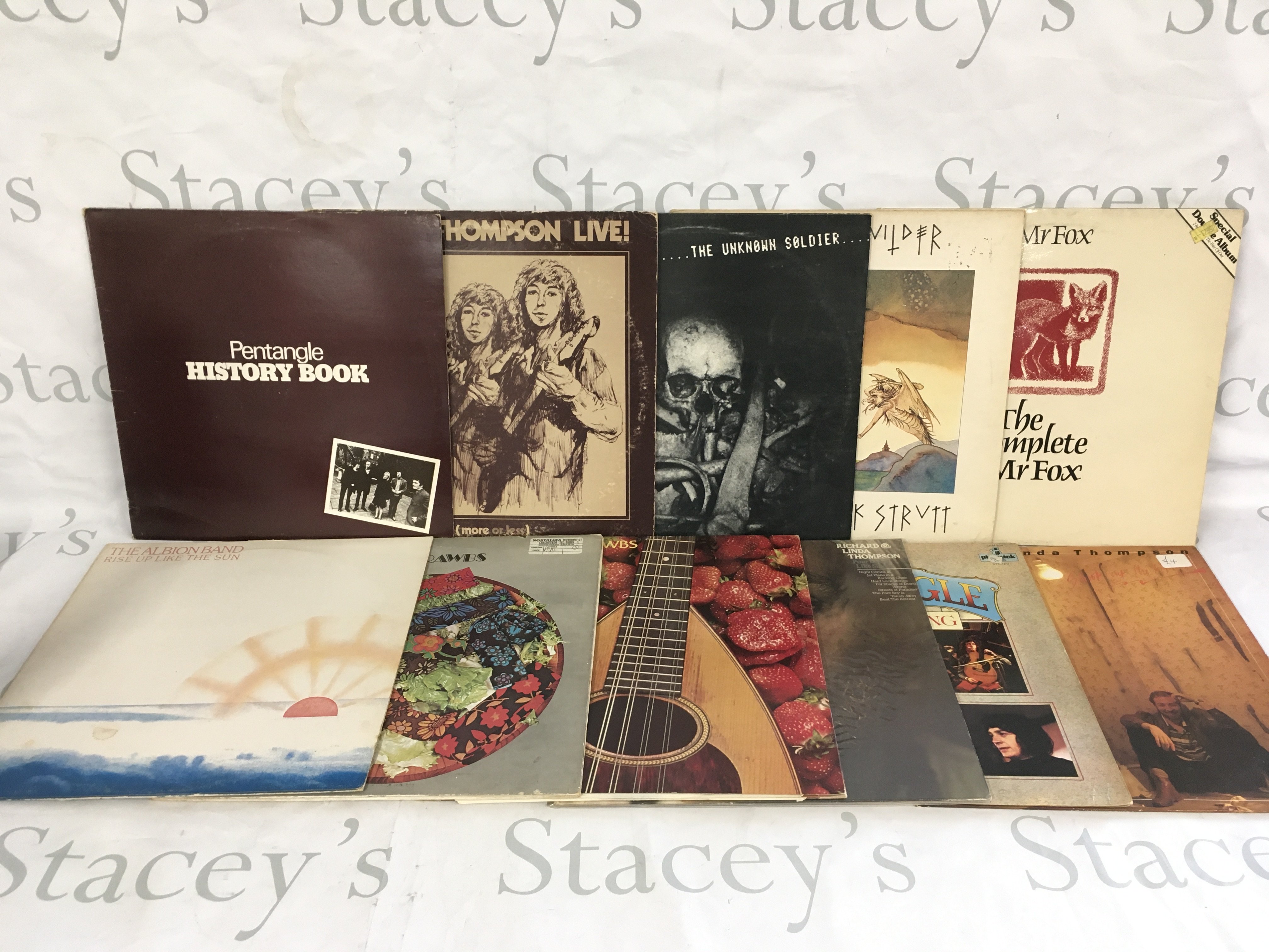 Two bags containing 22 folk rock LPs by various artists including John Martin, Sandy Denny, Richard Thompson and many more.