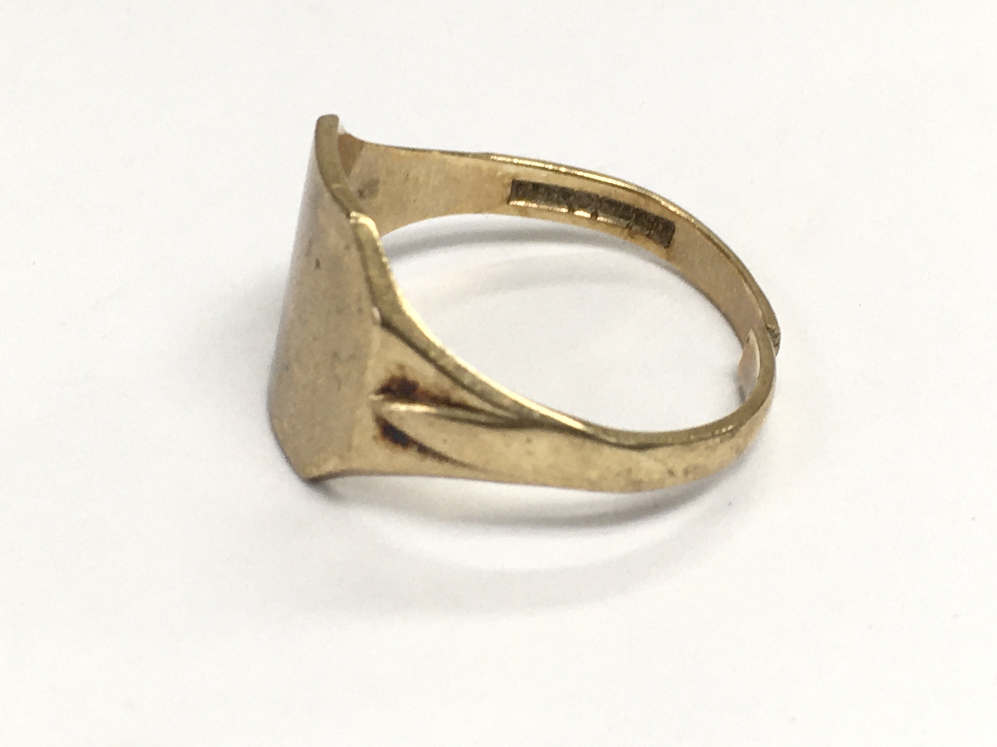 A 9ct gold gents ring. Ring has been cut Approximately size P and 2.86g
