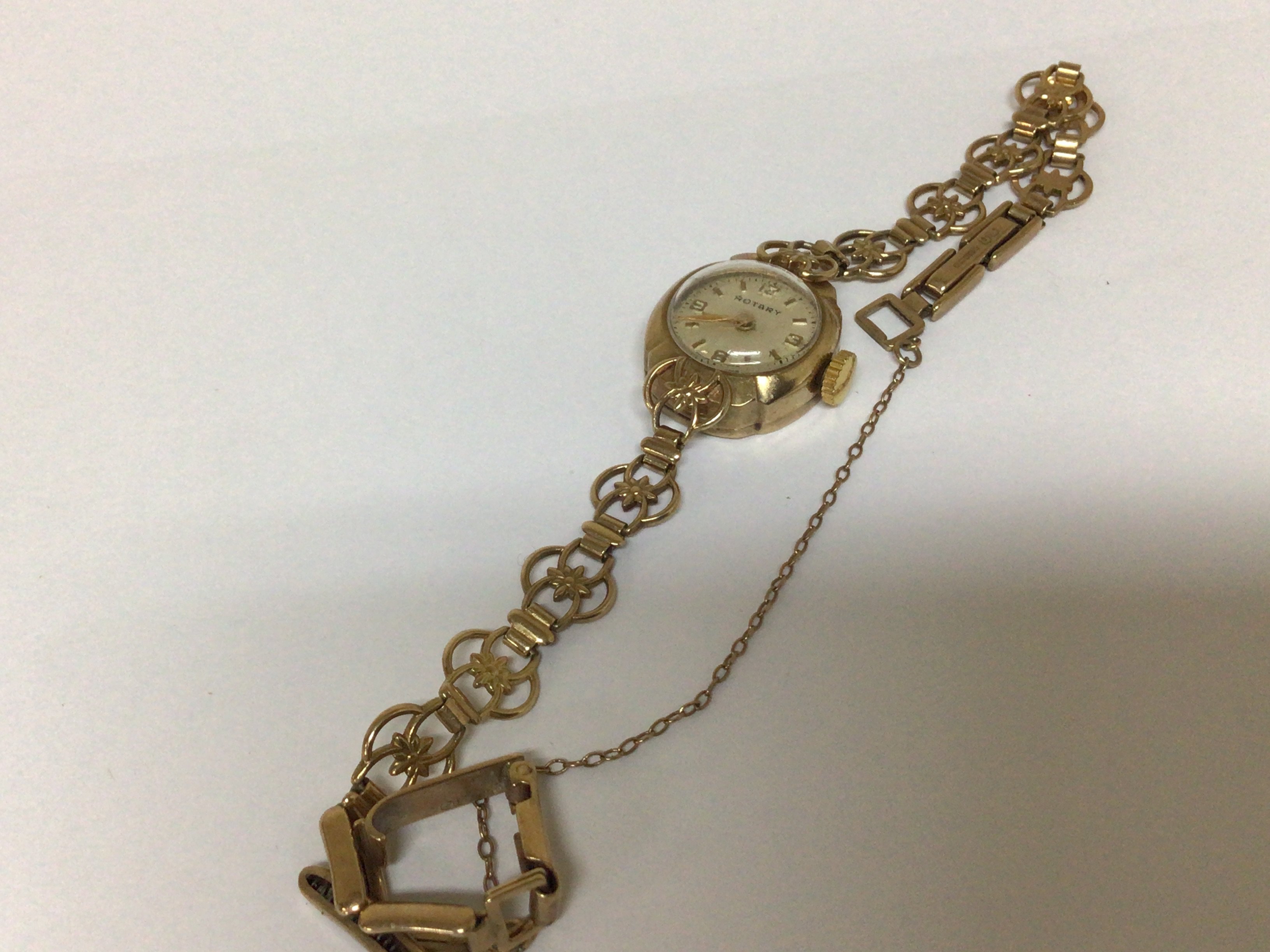 A ladies 9carat gold Rotary watch with an open repeat pattern 9carat gold attached bracelet weight 13g