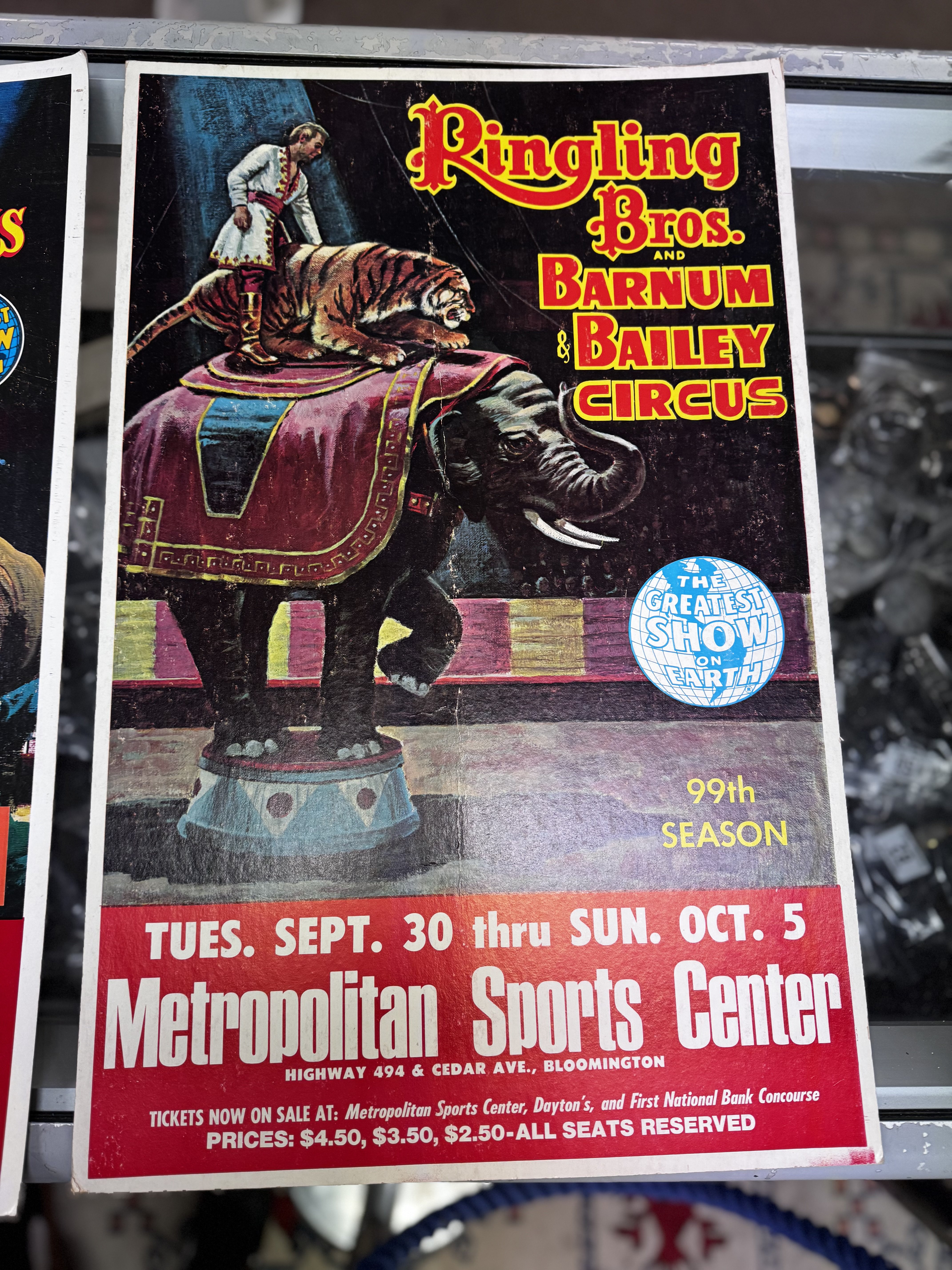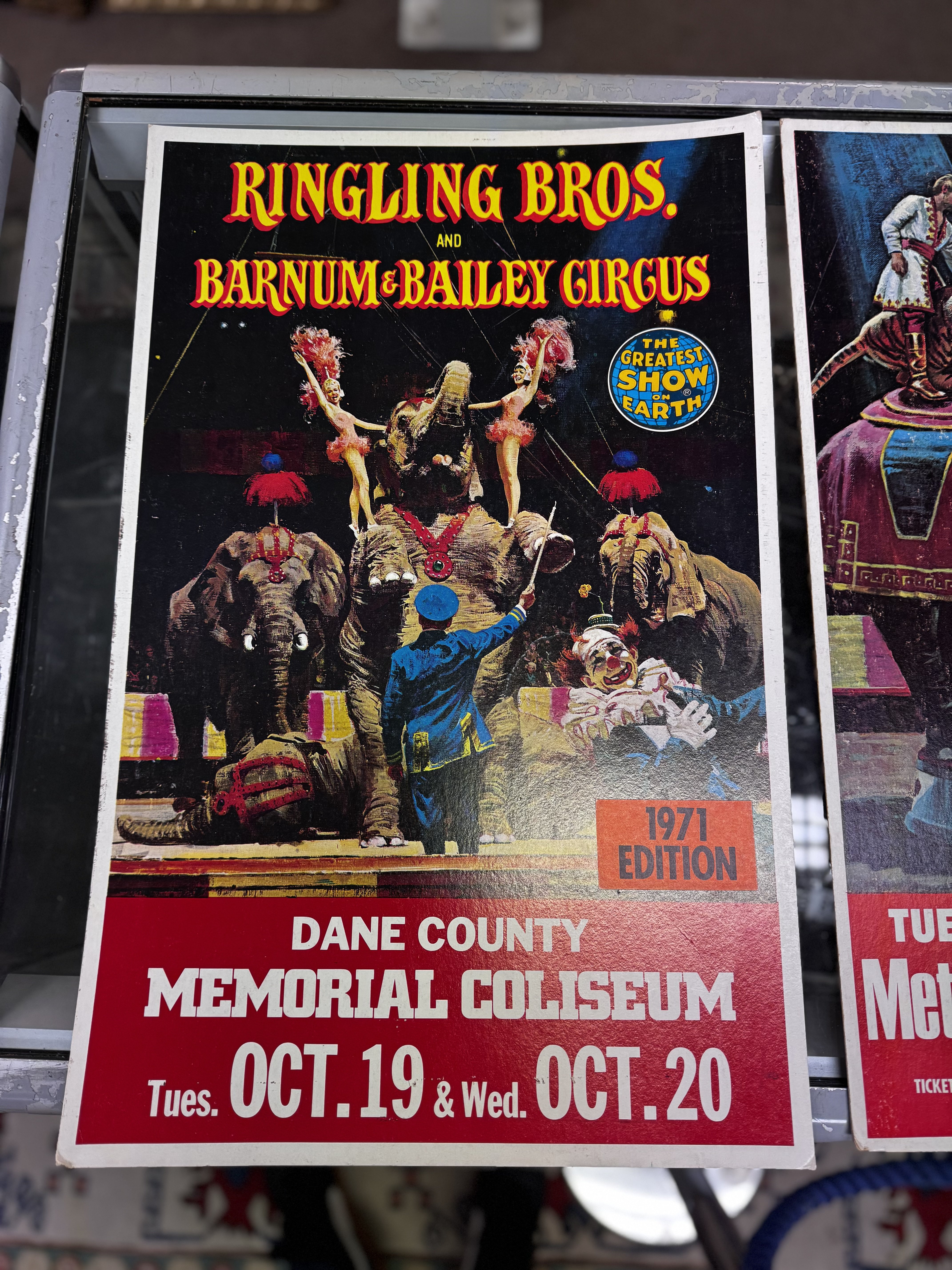 Two boxes of circus posters including posters from Ringling BROS. And Barnum & Baileys circus.