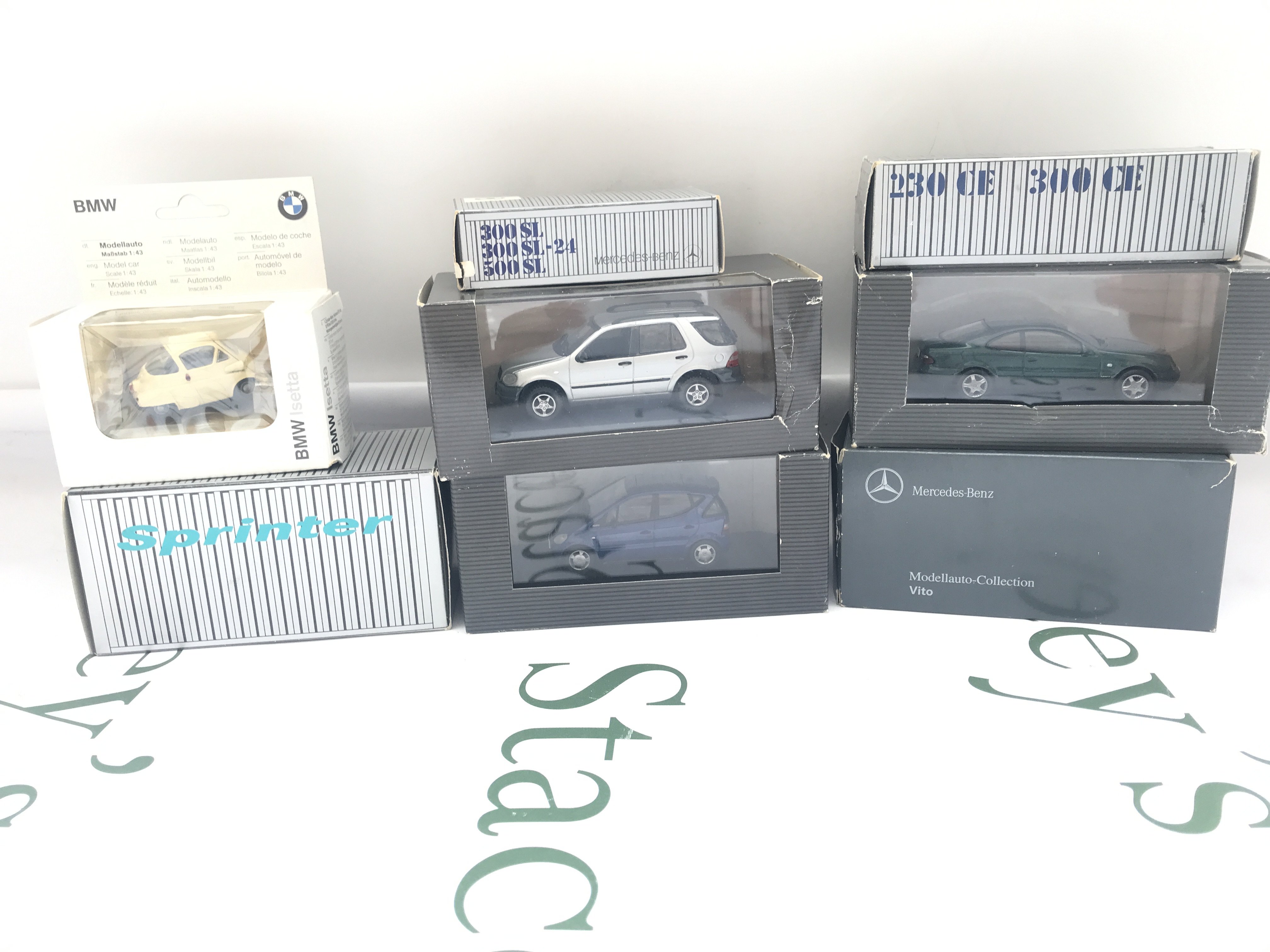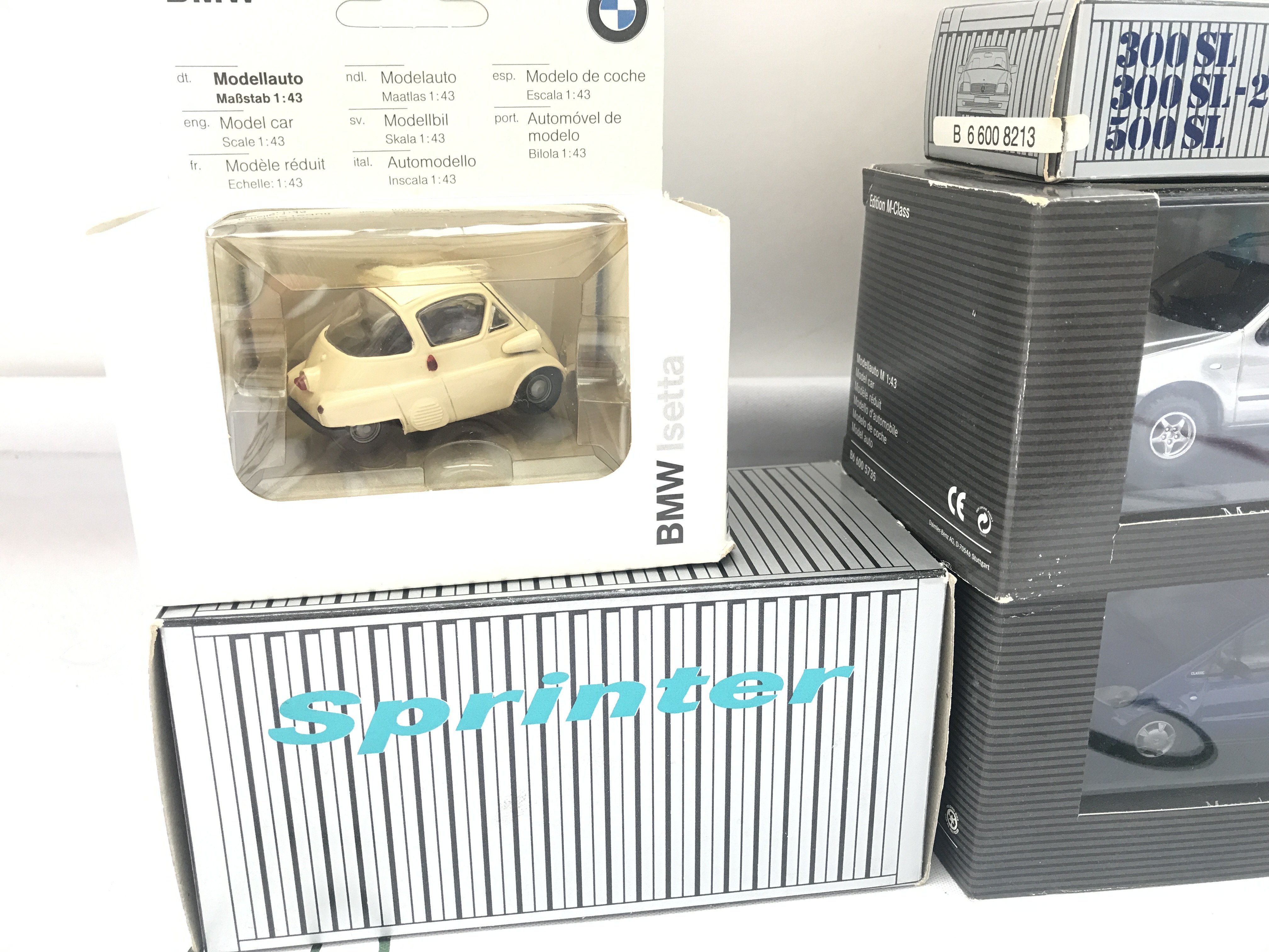 A Collection Of Boxed Mercedes-Benz Dealers Cars And A BMW Isetta.