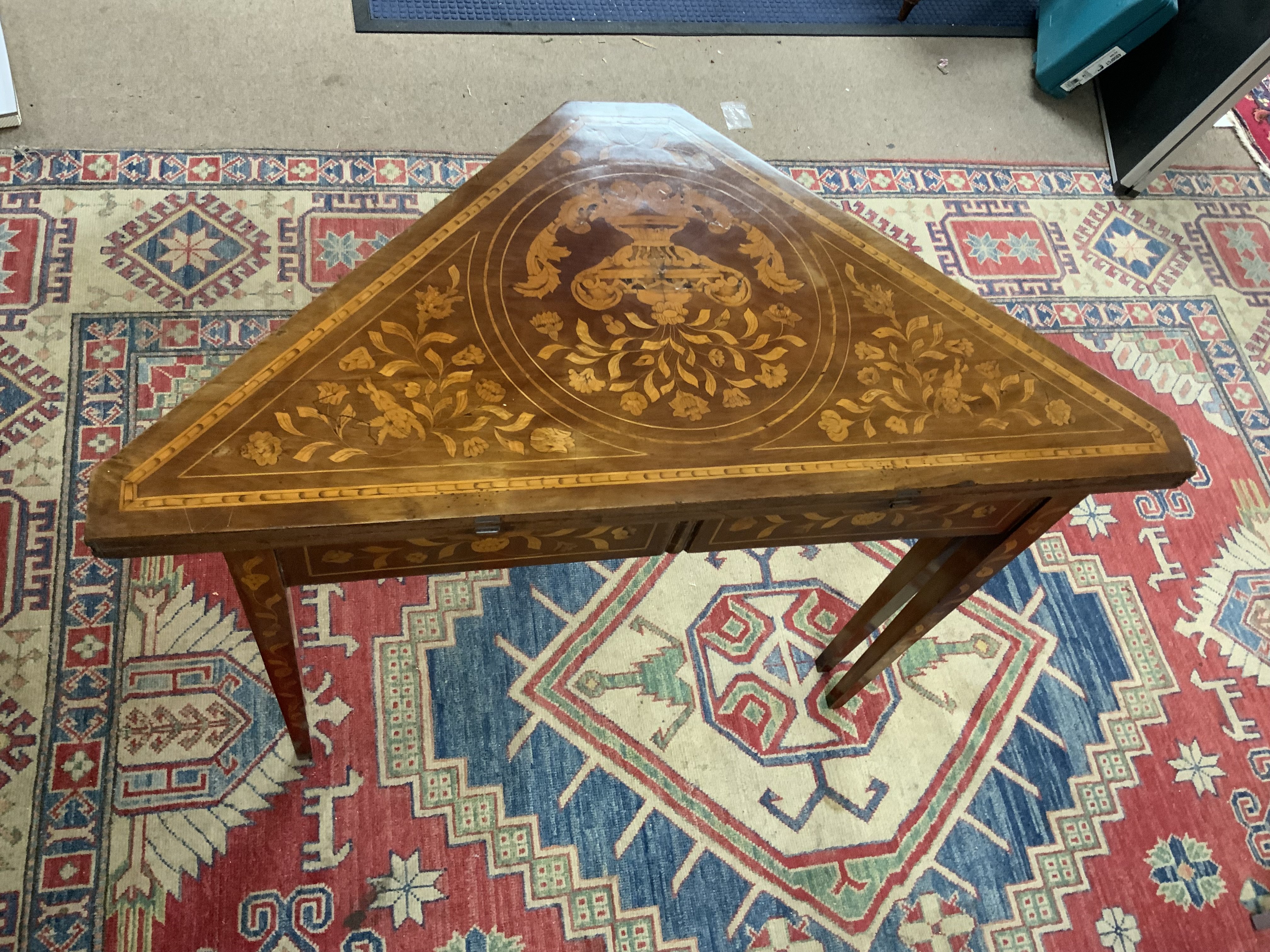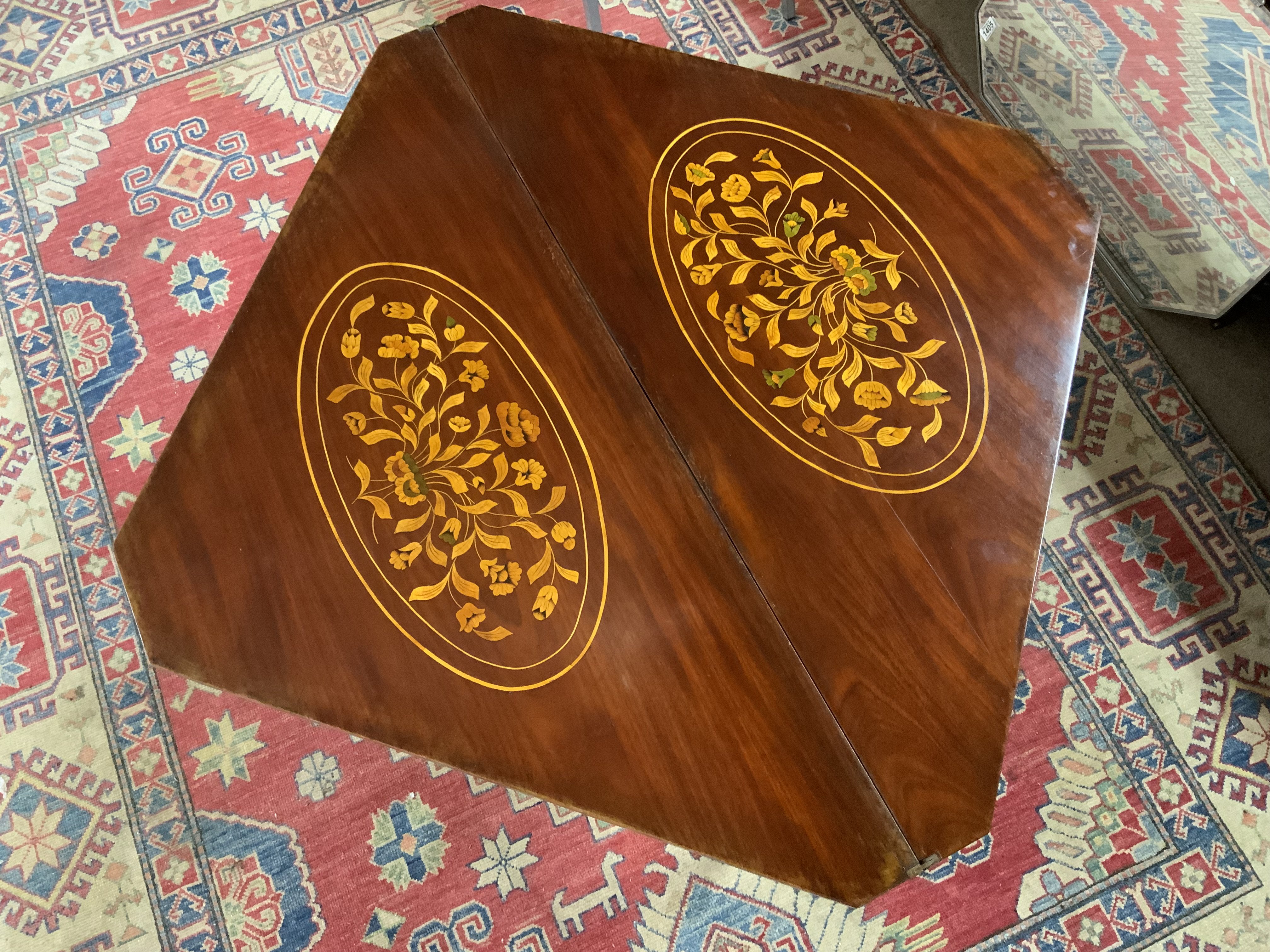 A 19th century mahogany and Dutch marquetry envelope card table.