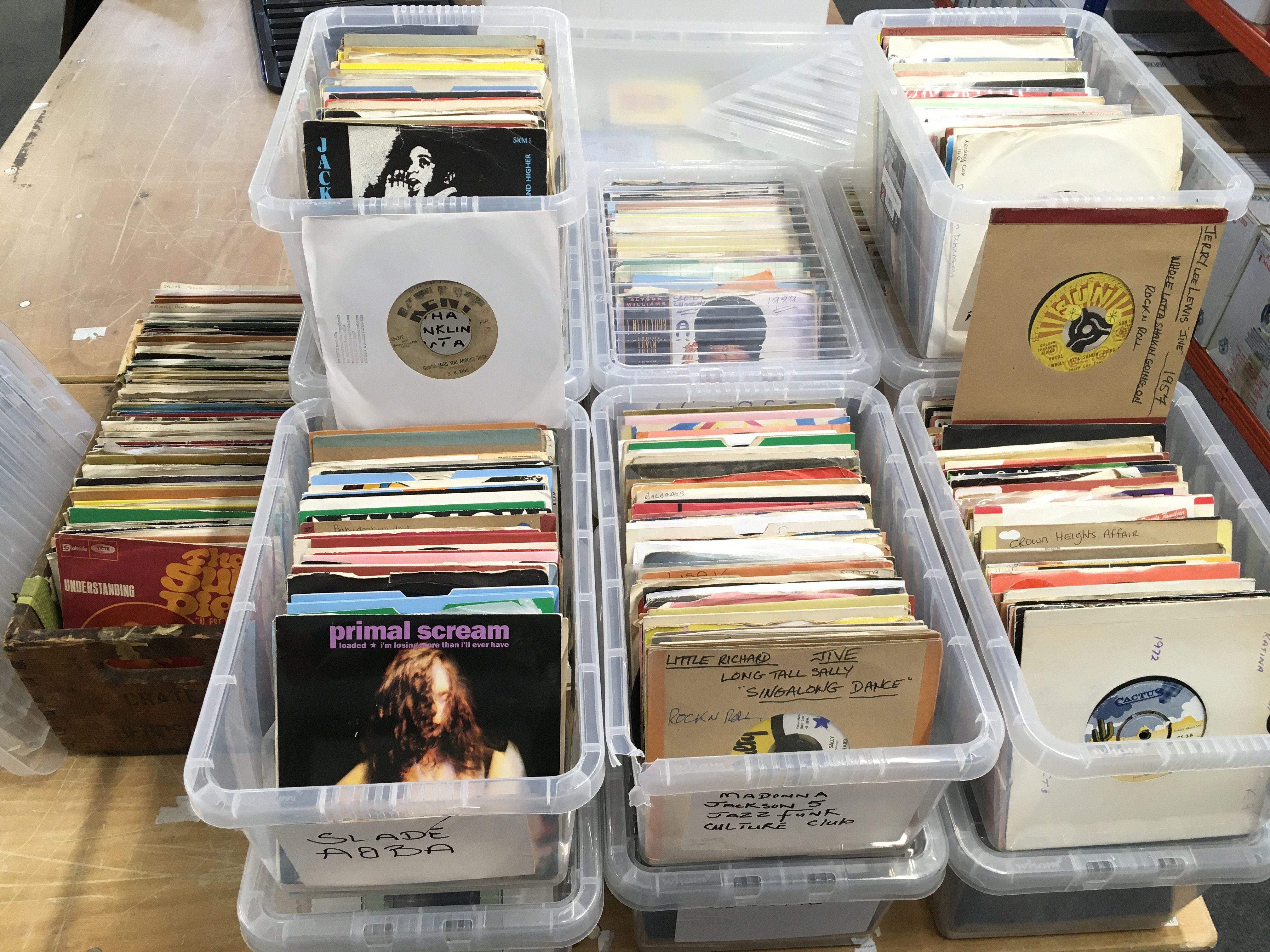 A large collection in 15 boxes of 7" singles by various artists from the 1960s onwards.