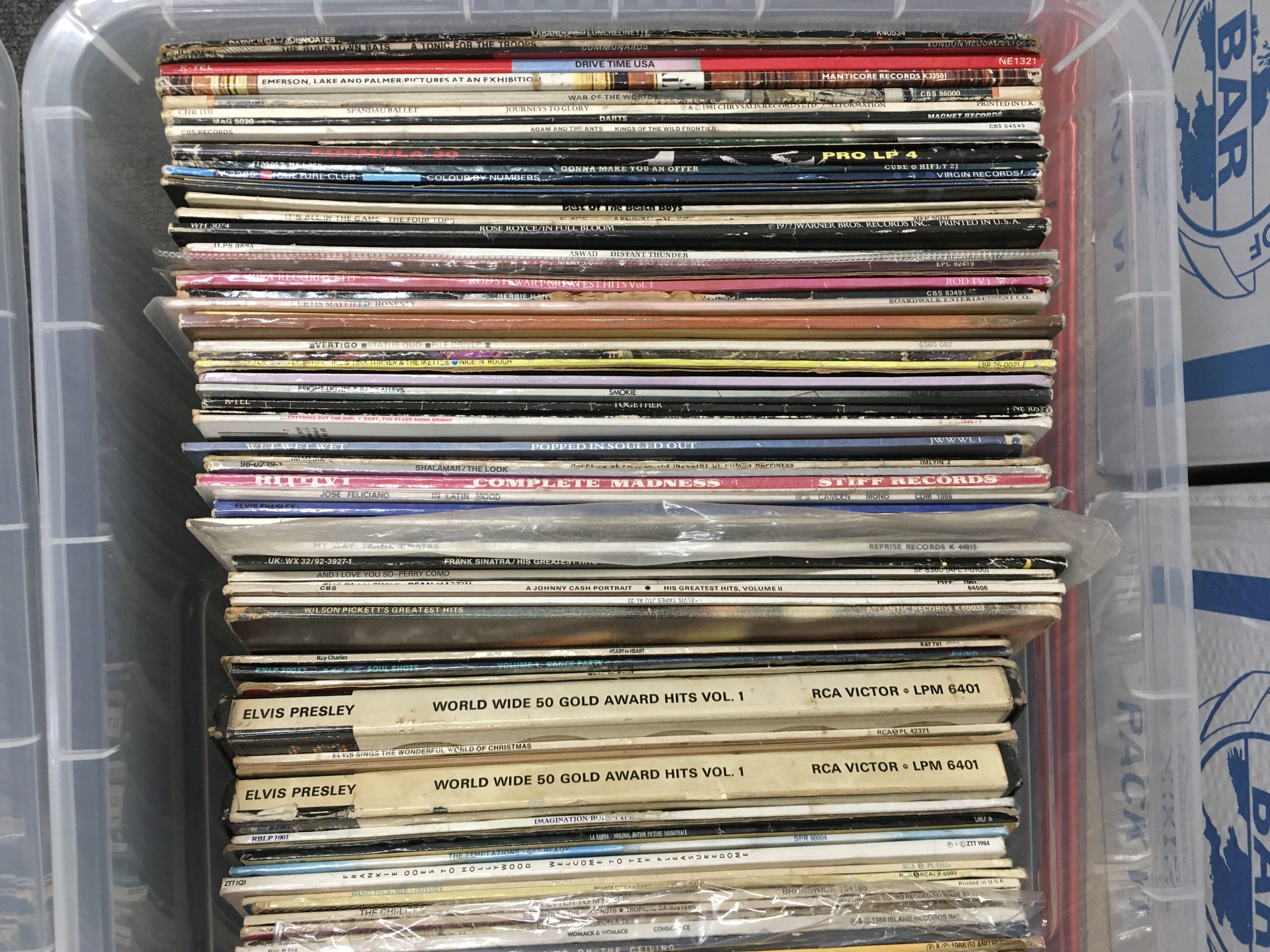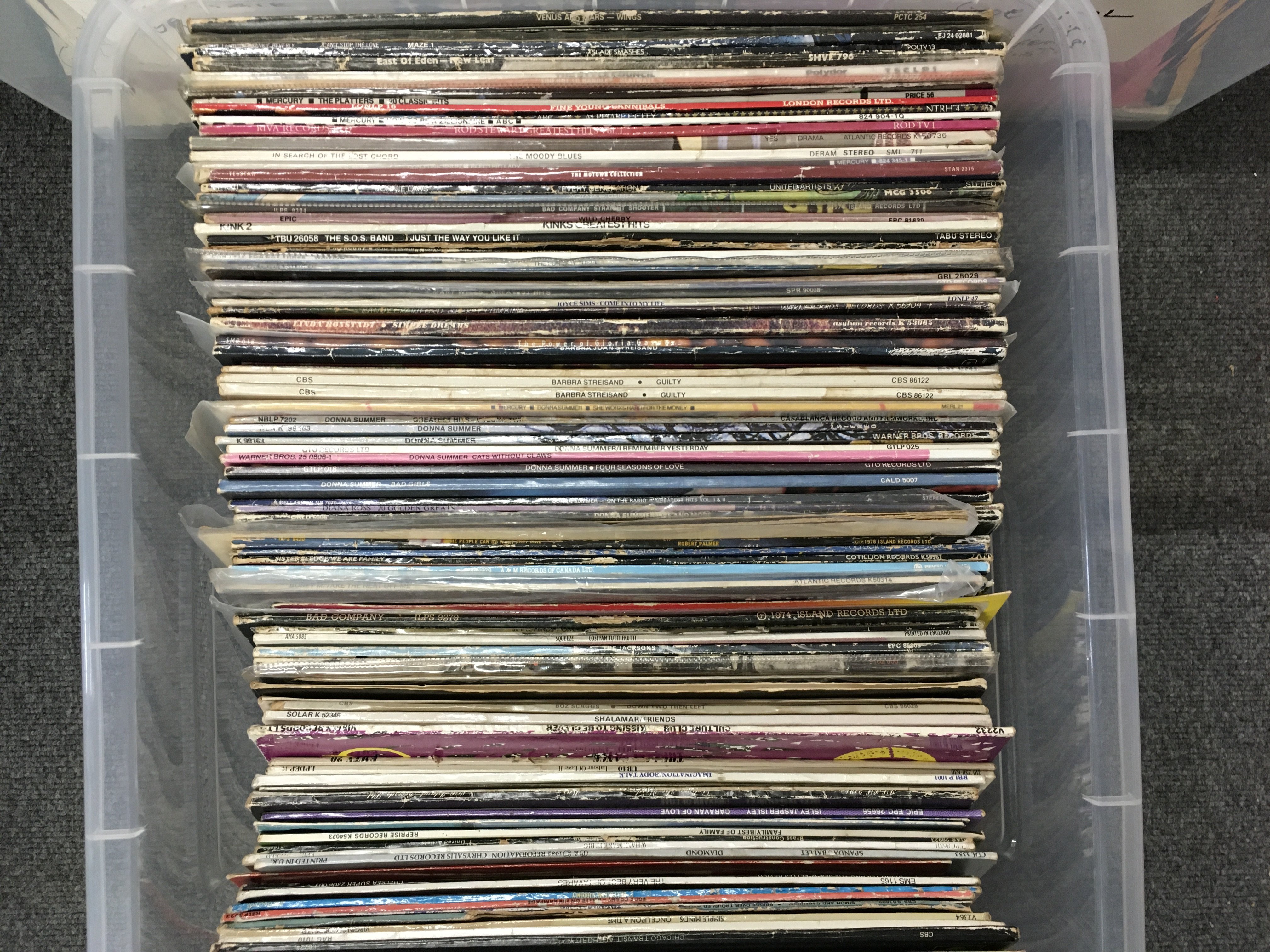 Three boxes of LPs and 12" singles by various artists including The Kinks, Bad Company, Elvis Presley, Wilson Pickett and many more.