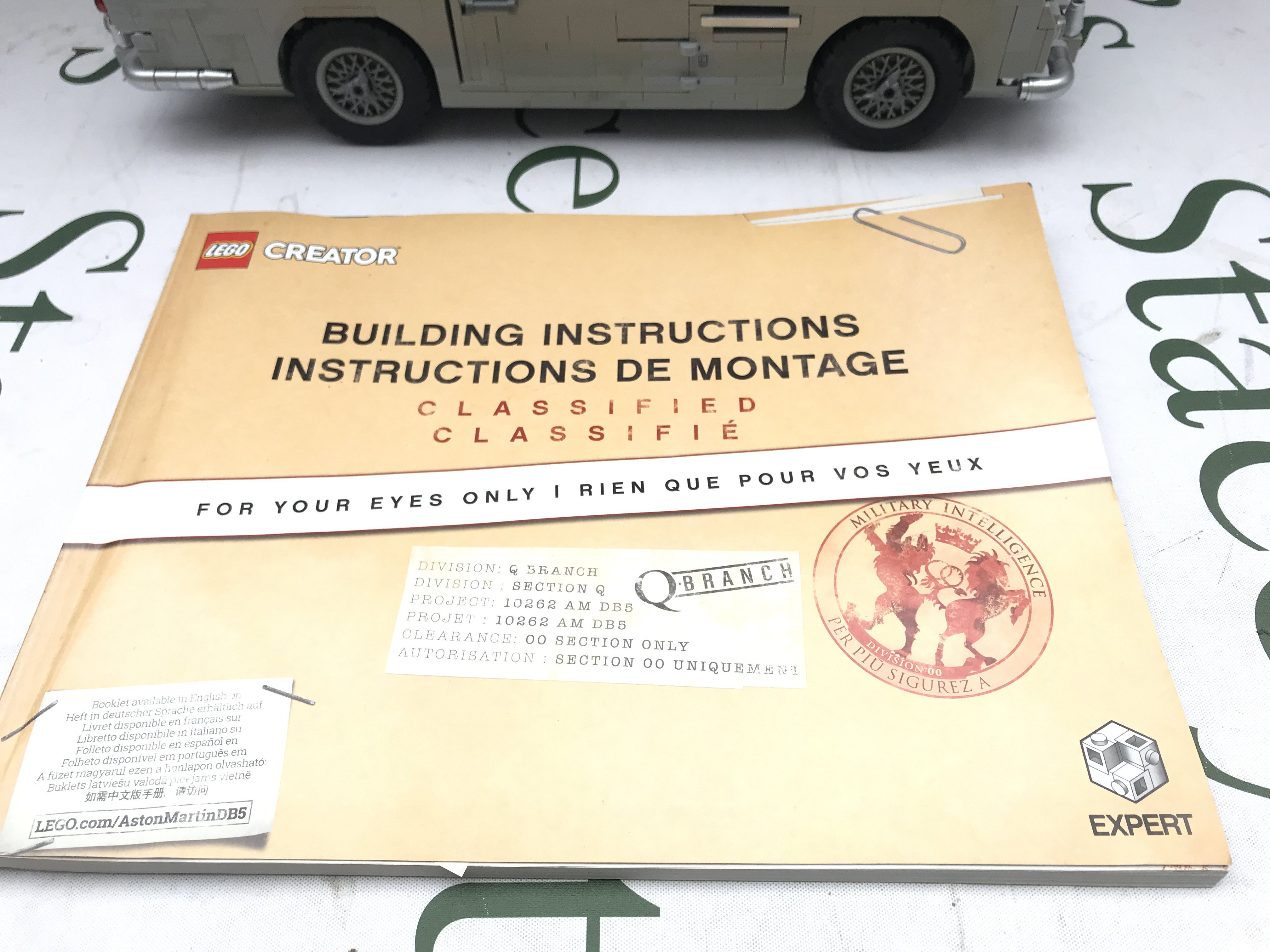 A Lego Creator James Bond Aston Martin DB5 #10262 With Box And Manual. Appears To Be Complete. (2). This Lot Cannot Be Posted In House.