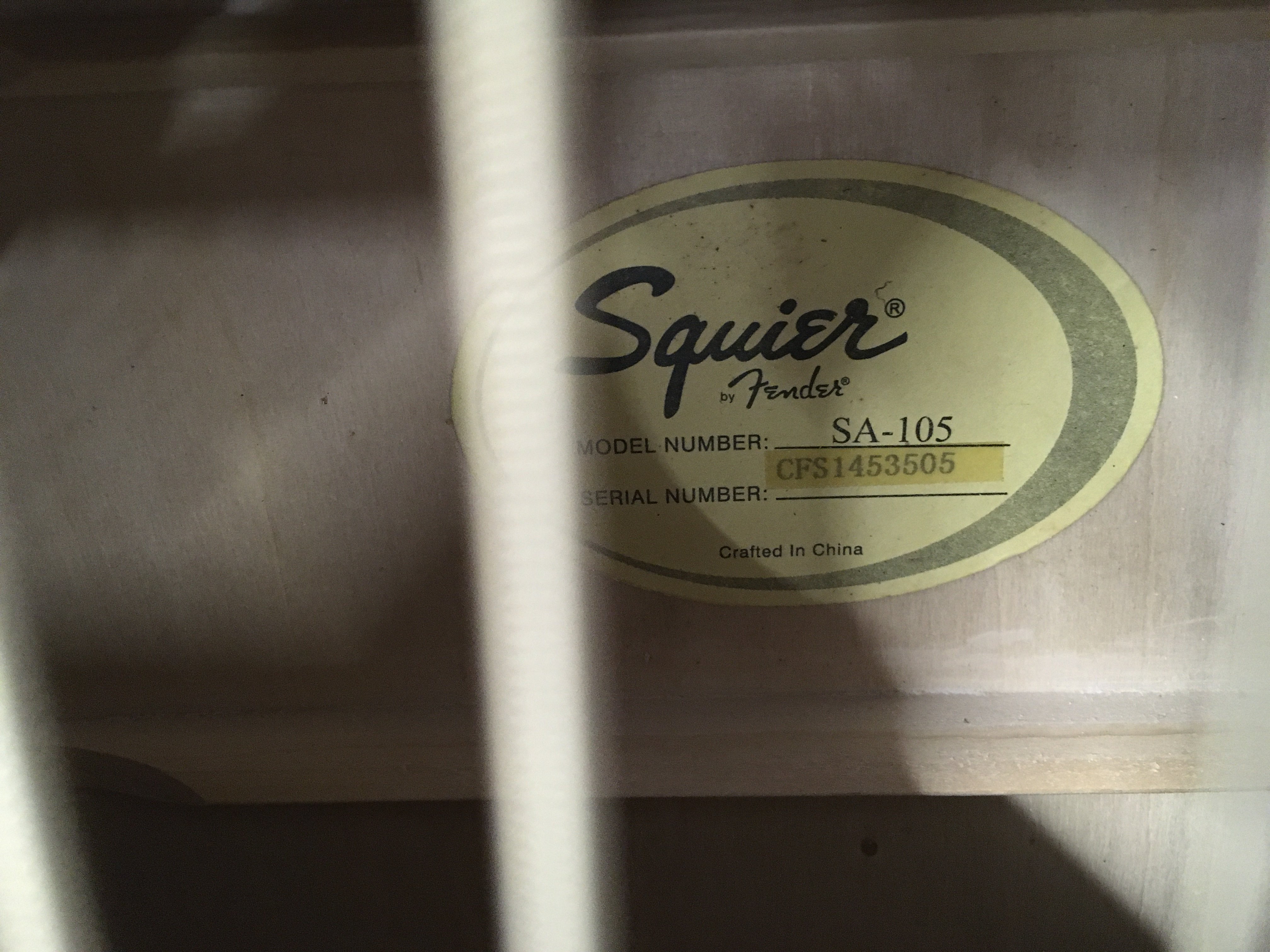 A Fender Squier SA-105 acoustic guitar with soft carry case.