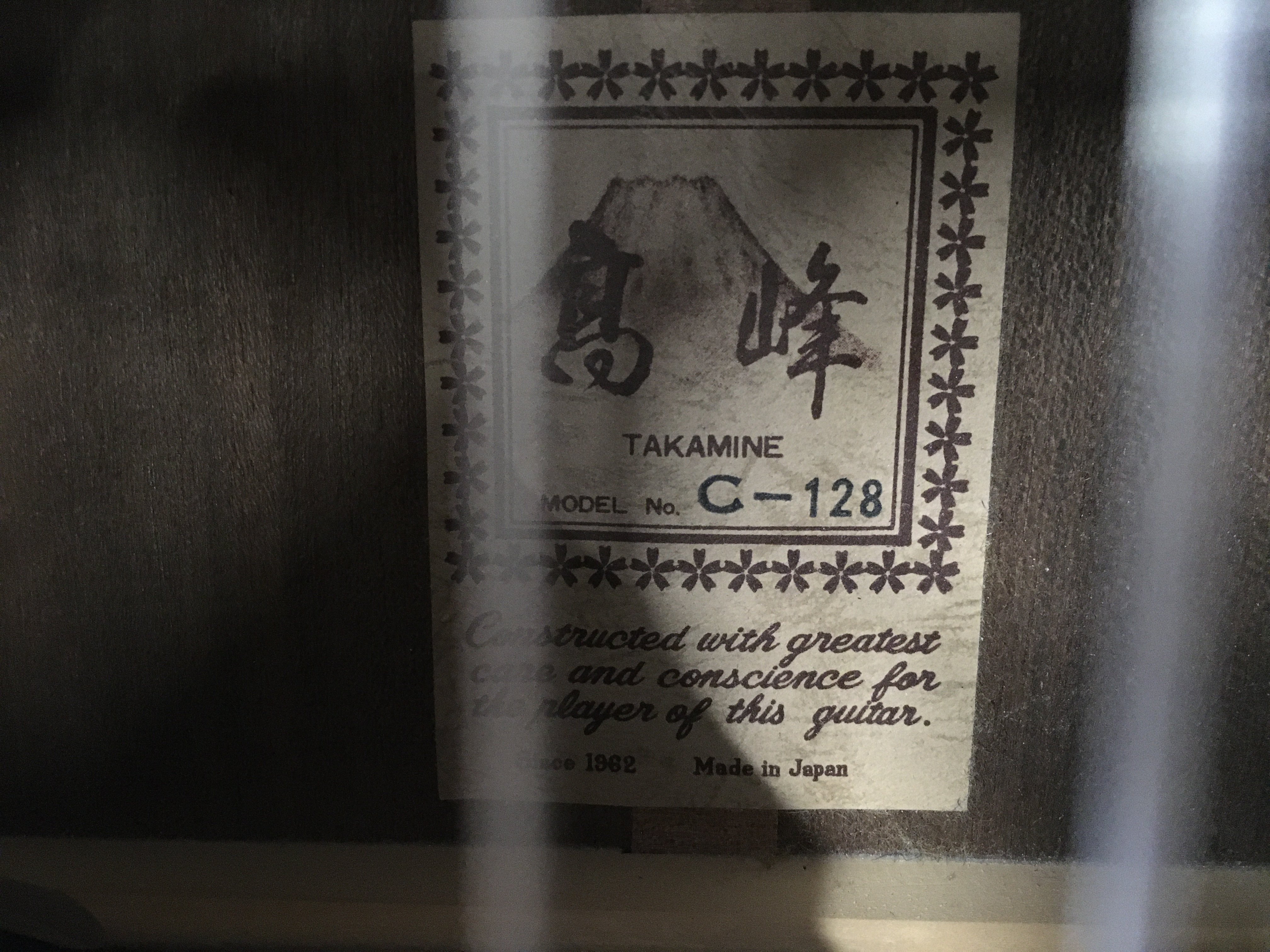 Two classical guitars comprising a Takamine C-128 and a Yamaha C40, both with hard carry cases. Please see image of discolouration to the reverse of the Takamine.