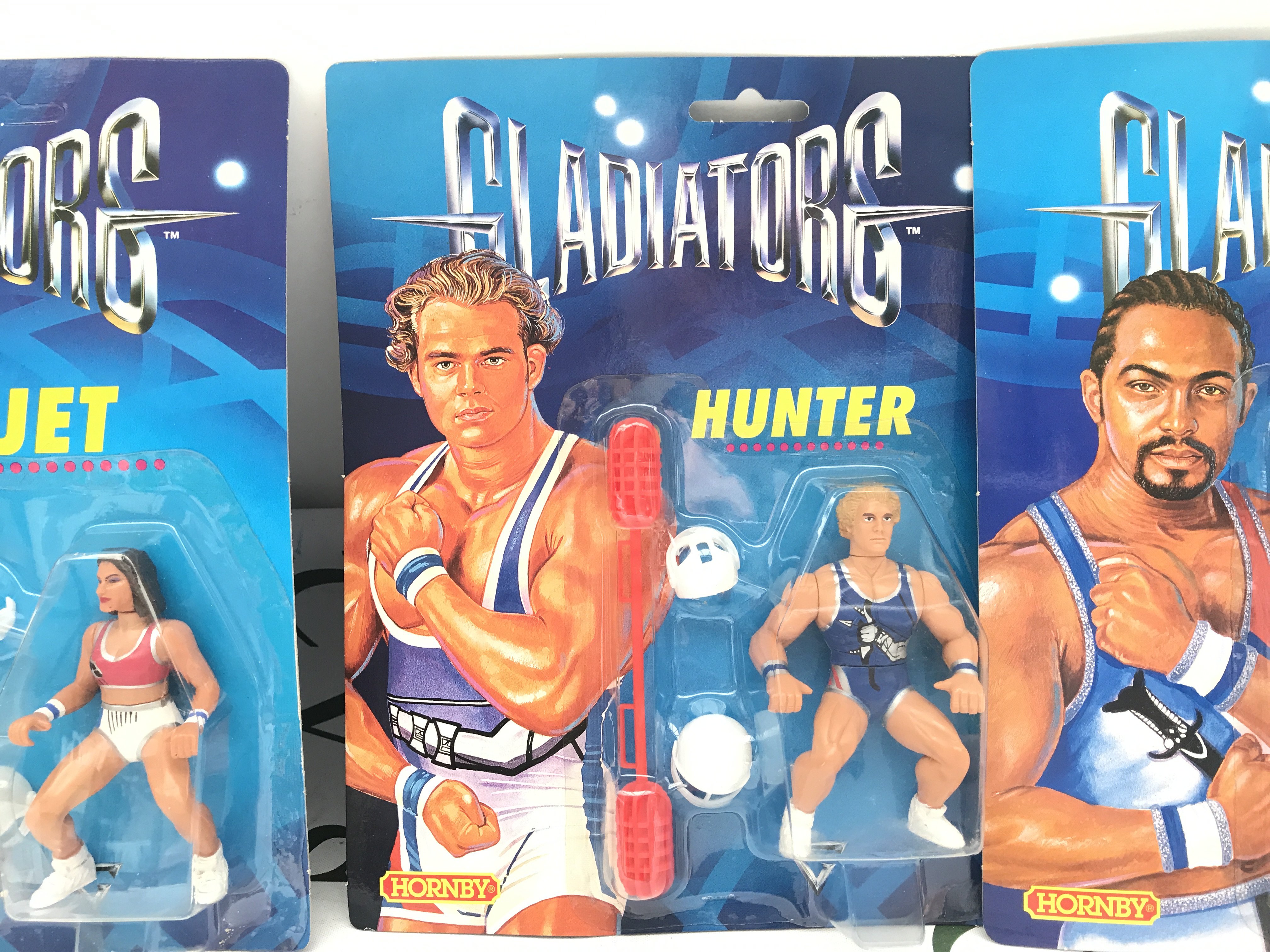 3 Carded Hornby Gladiators Figures Jet. Hunter And Saracen.