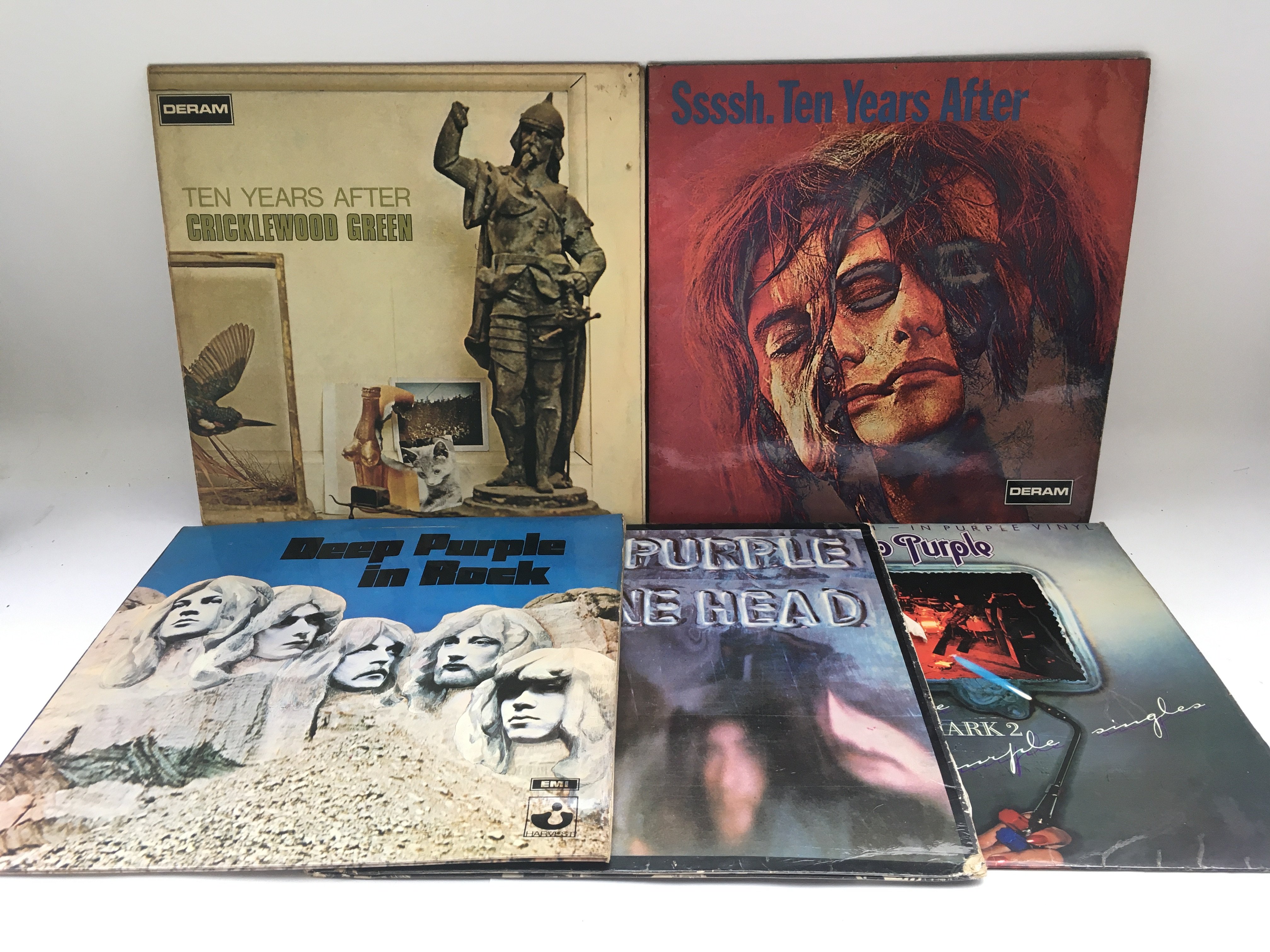 Three Deep Purple LPs and two by Ten Years After comprising 'Machine Head', 'Cricklewood Green' and others.