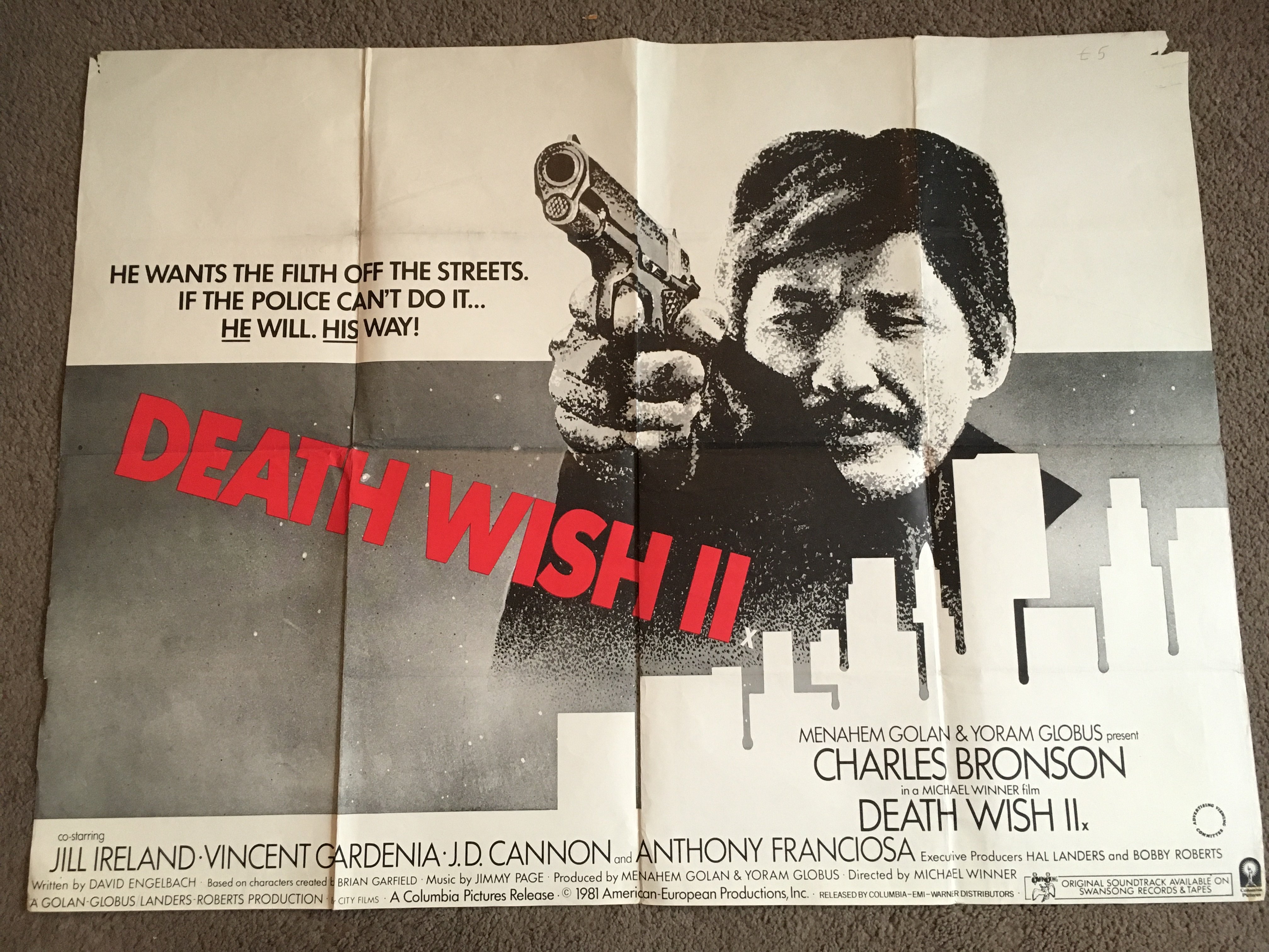 Four film posters comprising a French one sheet film poster for 'The Deep', folded with tear along crease, approx 58cm x 77cm and a UK quad film poster for 'North Sea Hijack', folded with small holes and tears, approx 101cm x 76cm, a UK quad film poster of 'Death Wish 2', folded with tears, sellotape marks, damage to corners, crude repairs approx 101cm x 76cm and A UK quad film poster for 'Assault On Precinct 13', folded with damage to top left corner, approx 101cm x 76cm.