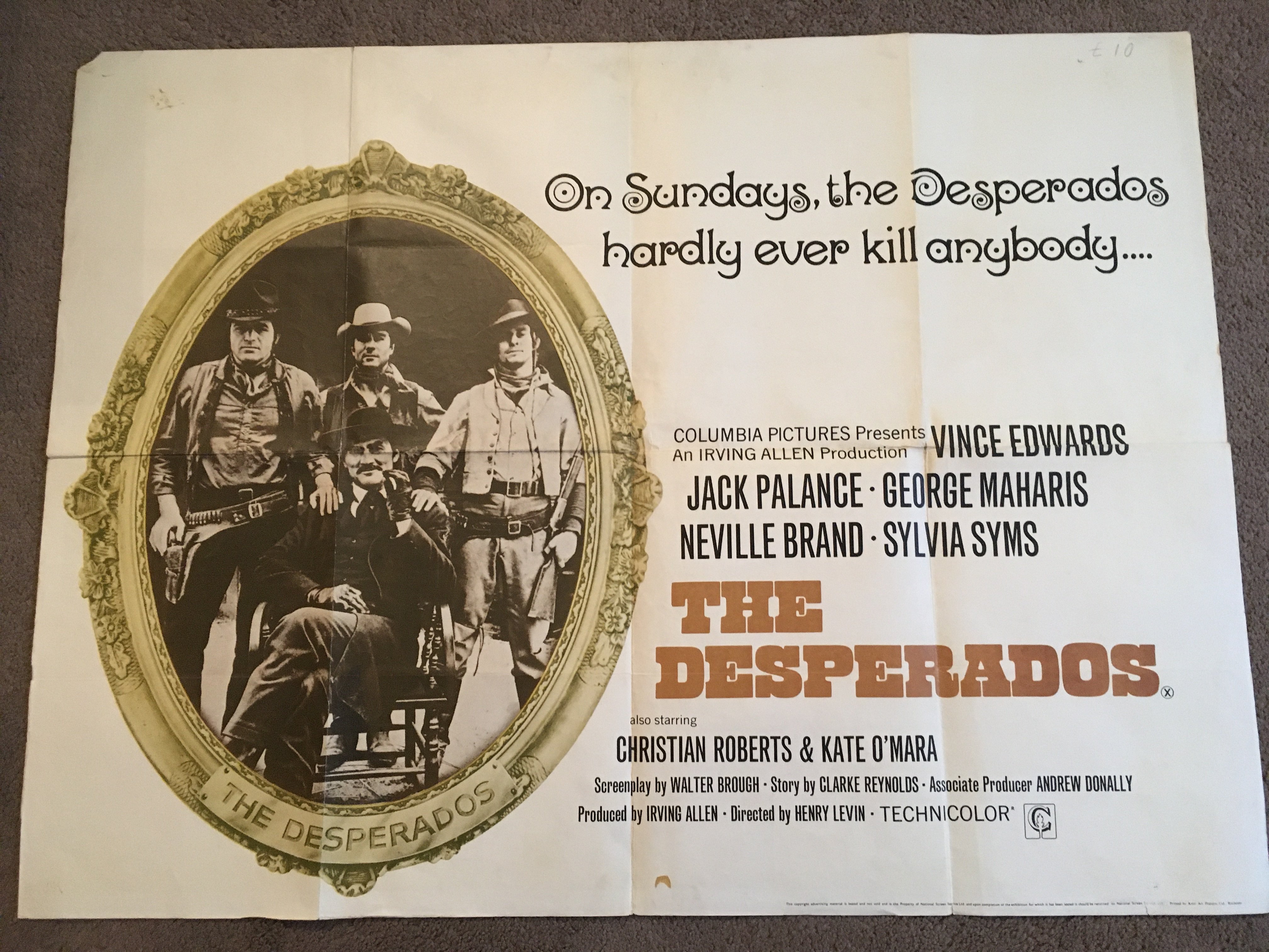 Eight film posters comprising a UK quad for 'Escape From The Dark', sellotape residue in corners and top centre, approx 101cm x 76cm plus three Western US one sheet movie posters including 'The Return Of The Seven', 'Guns Of The Magnificent Seven' and 'The Magnificent Sven Ride', all folded with small tears, a UK quad of 'Desperados', a French one sheet of 'Arizona Raiders' and two others., all folded with small tears.