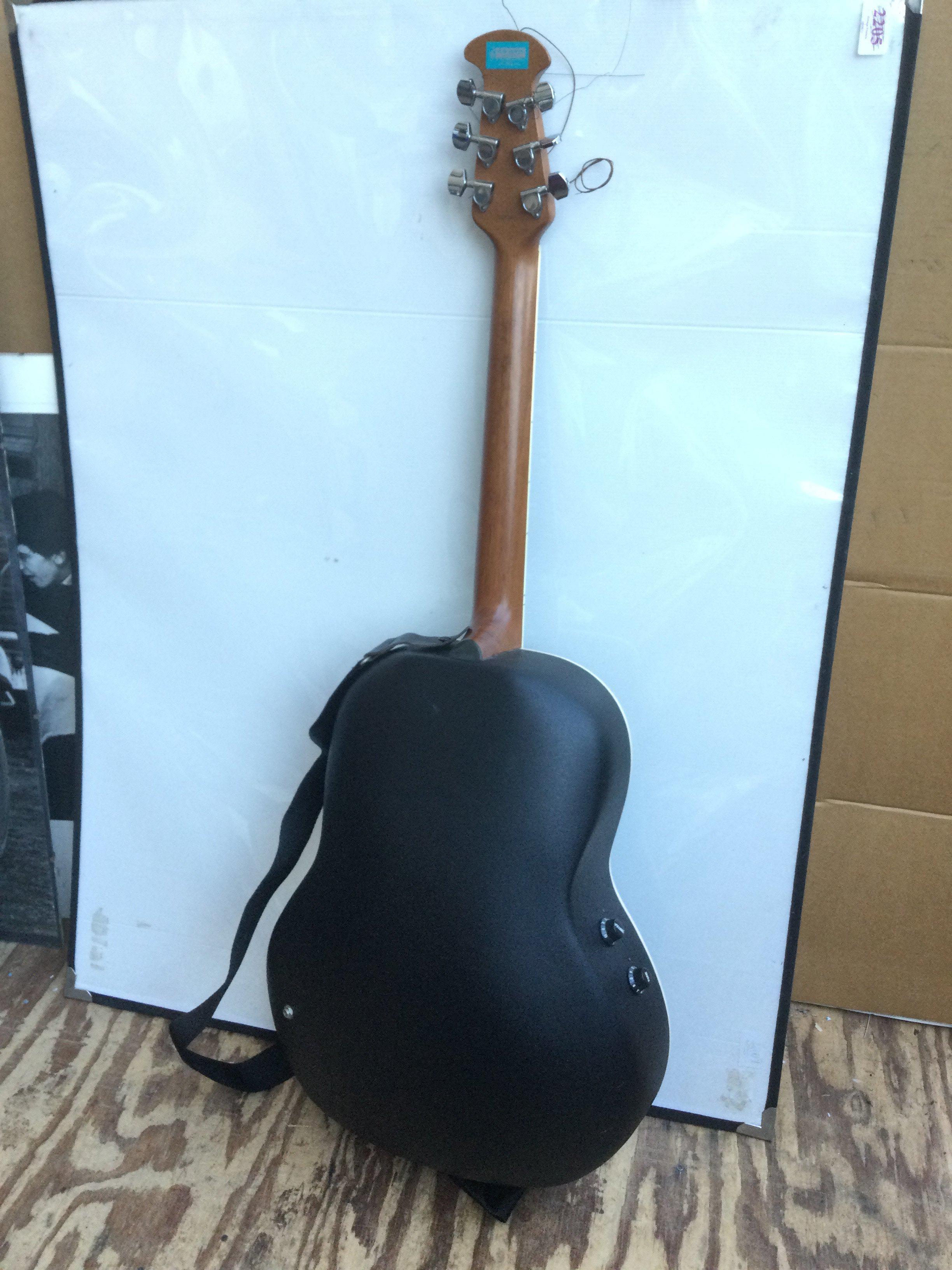 An Ovation Celebrity bowl back acoustic guitar with hard carry case.