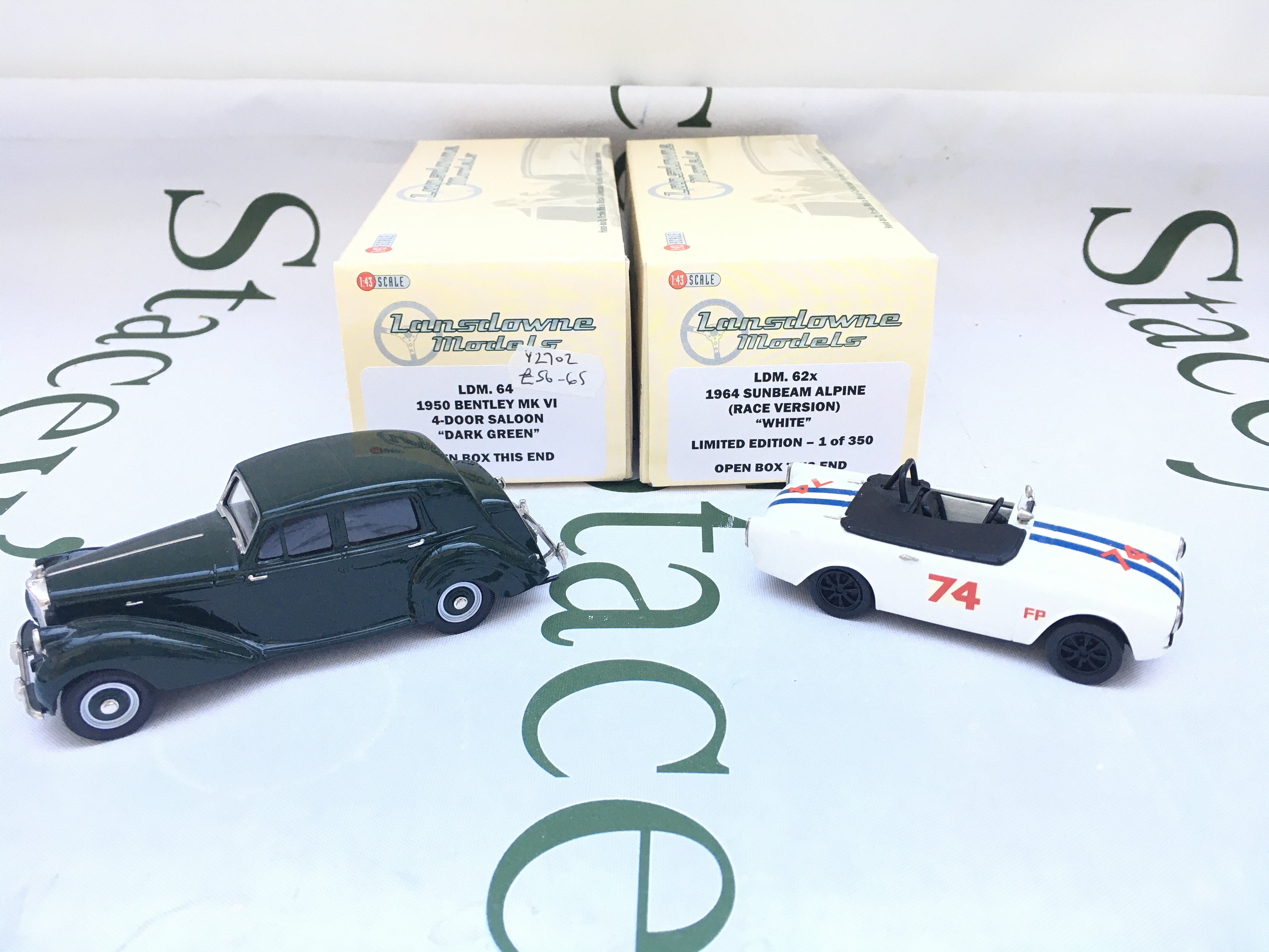 2 X Boxed Lansdowne Models 1/43 Scale.A 1950 Bentley MK VI 4-Door Saloon #LDM. 64 And A 1964 Sunbeam Alpine Race Version #LDM.62x.