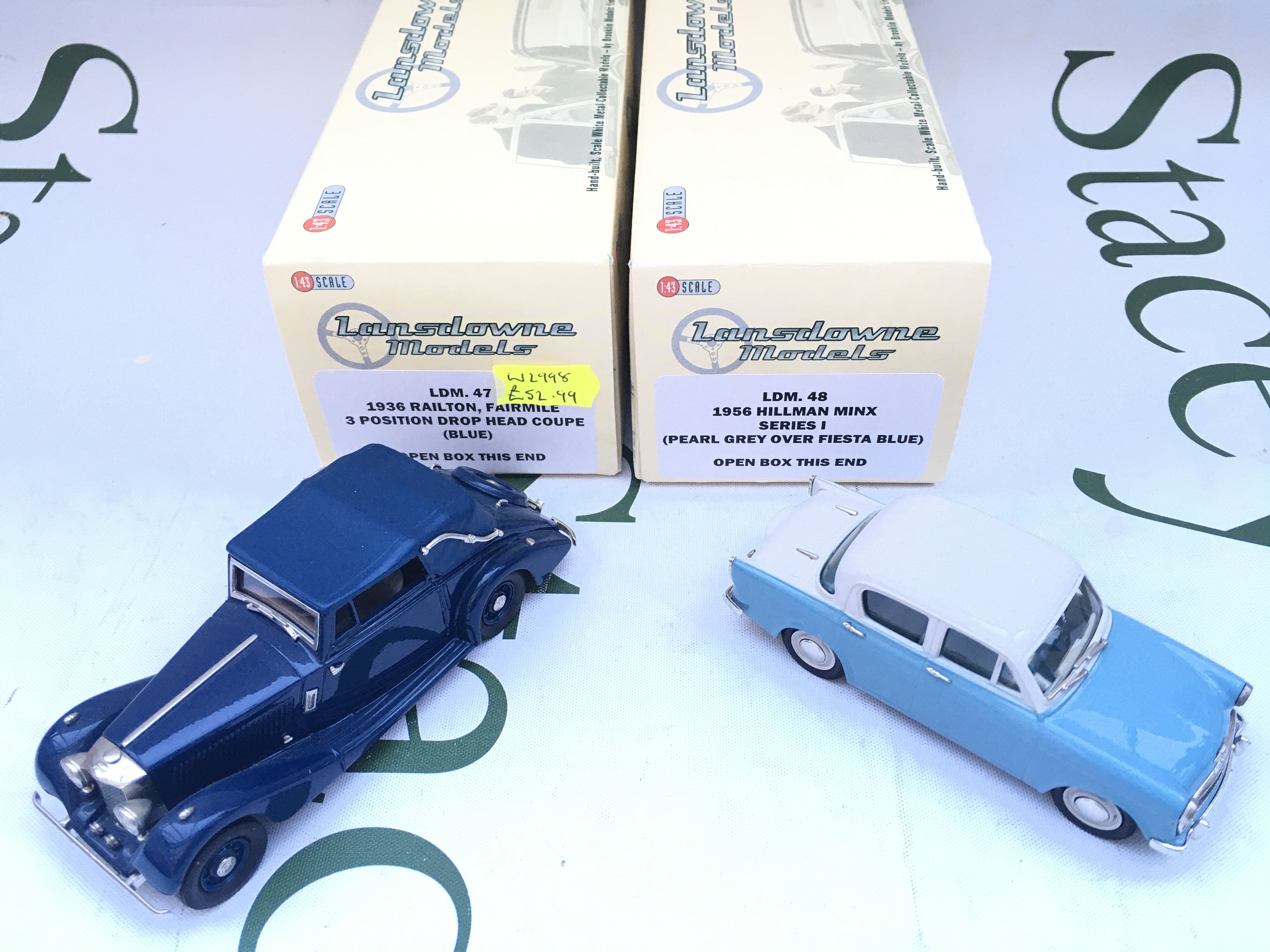 2 X Boxed Lansdowne Models 1/43 Scale. A 1936 Railton Fairmile 3 Position Drop Head Coupe #LDM.47 And A 1956 Hillman Minx Series I #LDM.48.