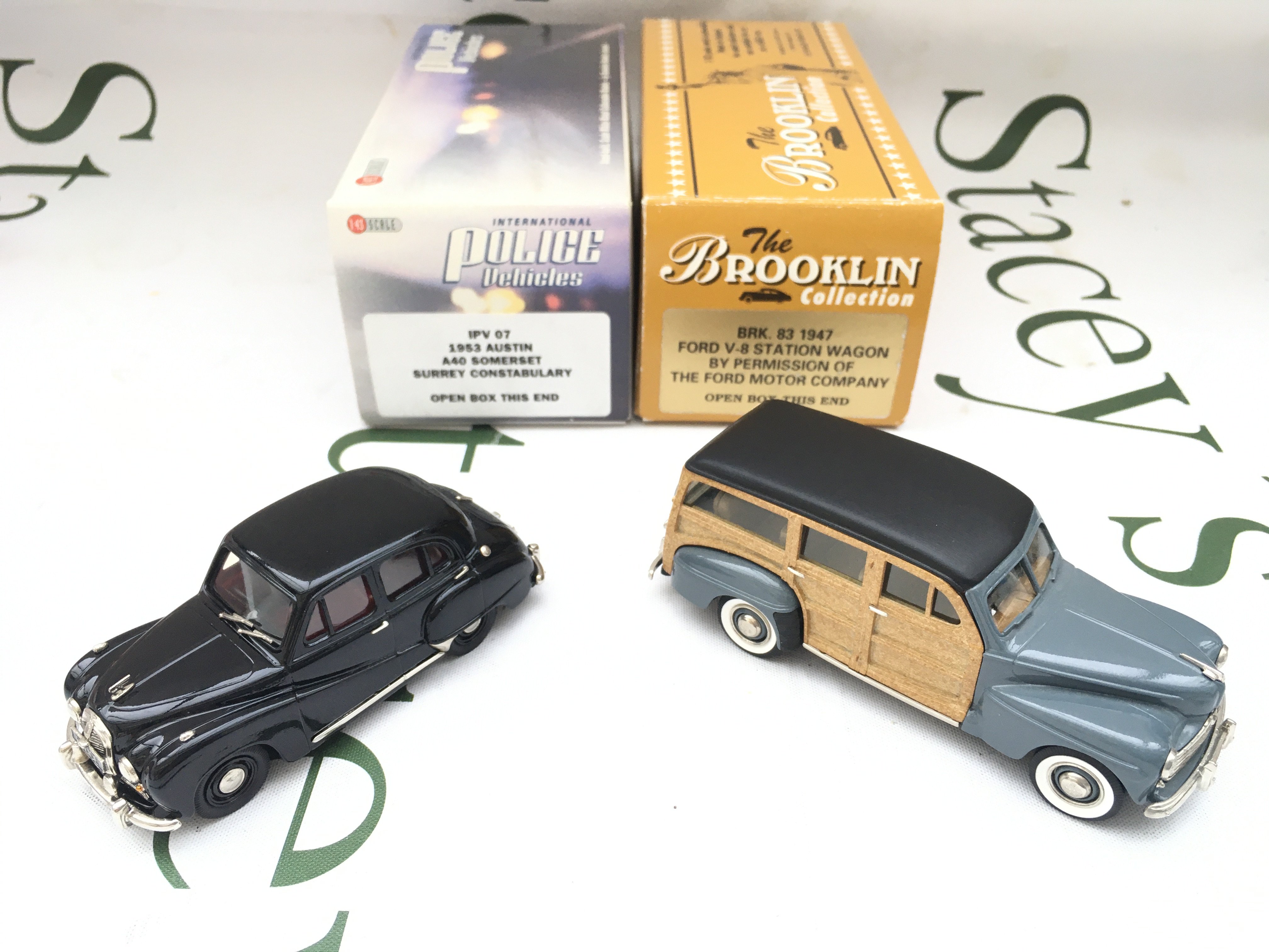 2 X Boxed Brooklin Model Diecast. A Austin A40 Somerset Constabulary And. Ford V-8 Station Wagon.