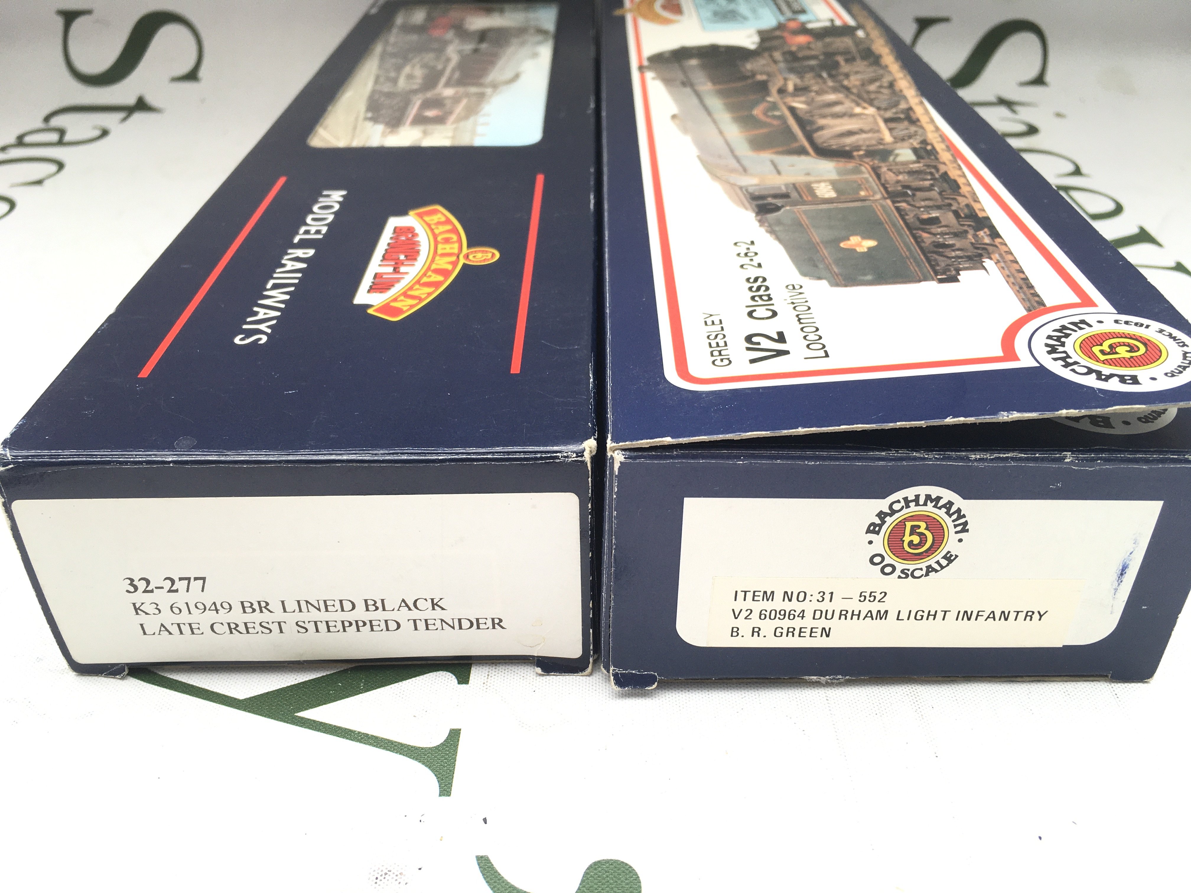 2 X Boxed Bachmann 00 Gauge Locomotives a K3 61949 BR Lined Black Late Crest Stepped Tender #32-277 And A V2 60964 Durham Light Infantry B.R.Green #31-552.