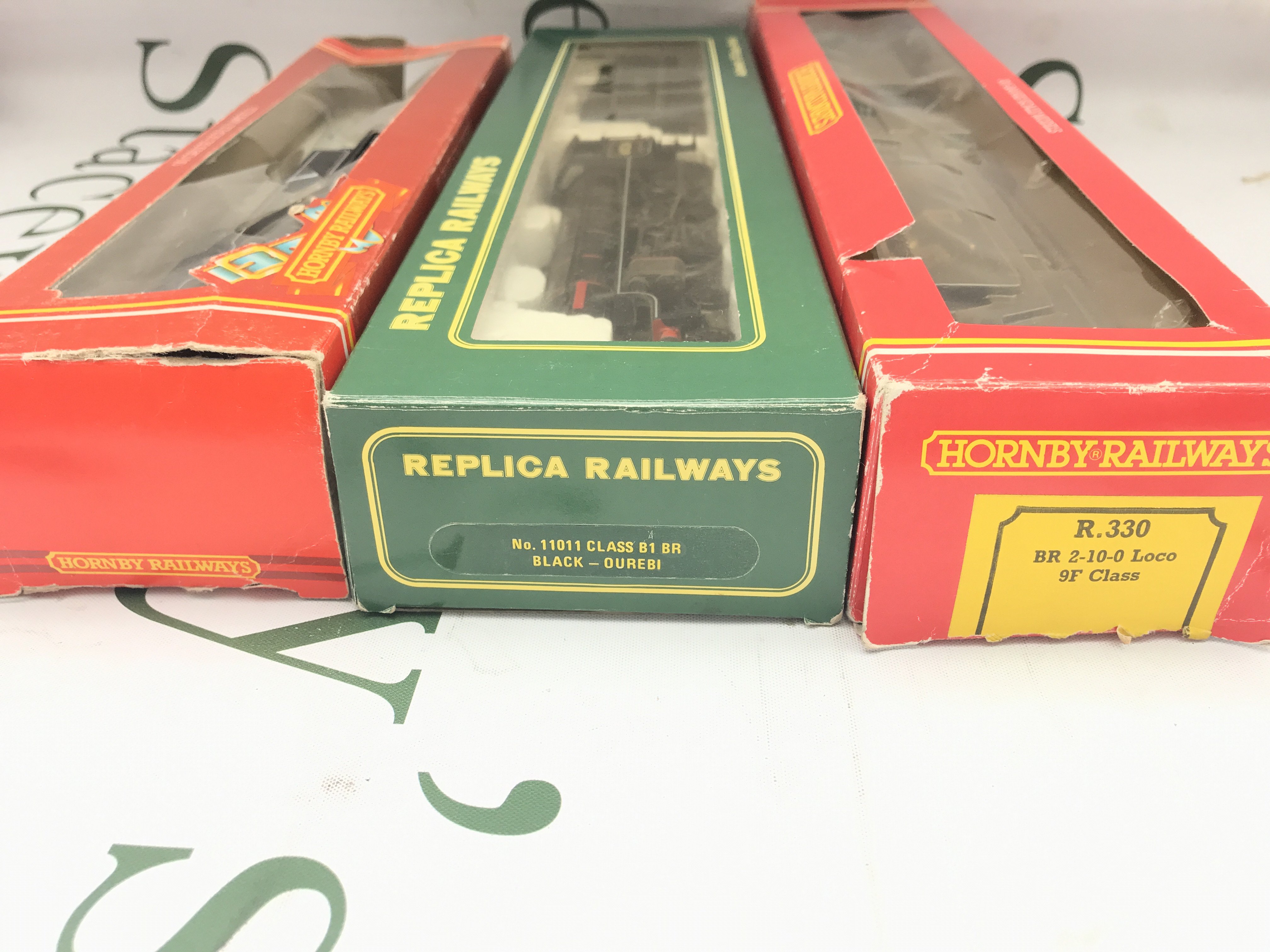 3 Boxed 00 Gauge Locomotives by Hornby and Replica. Boxes are Worn.