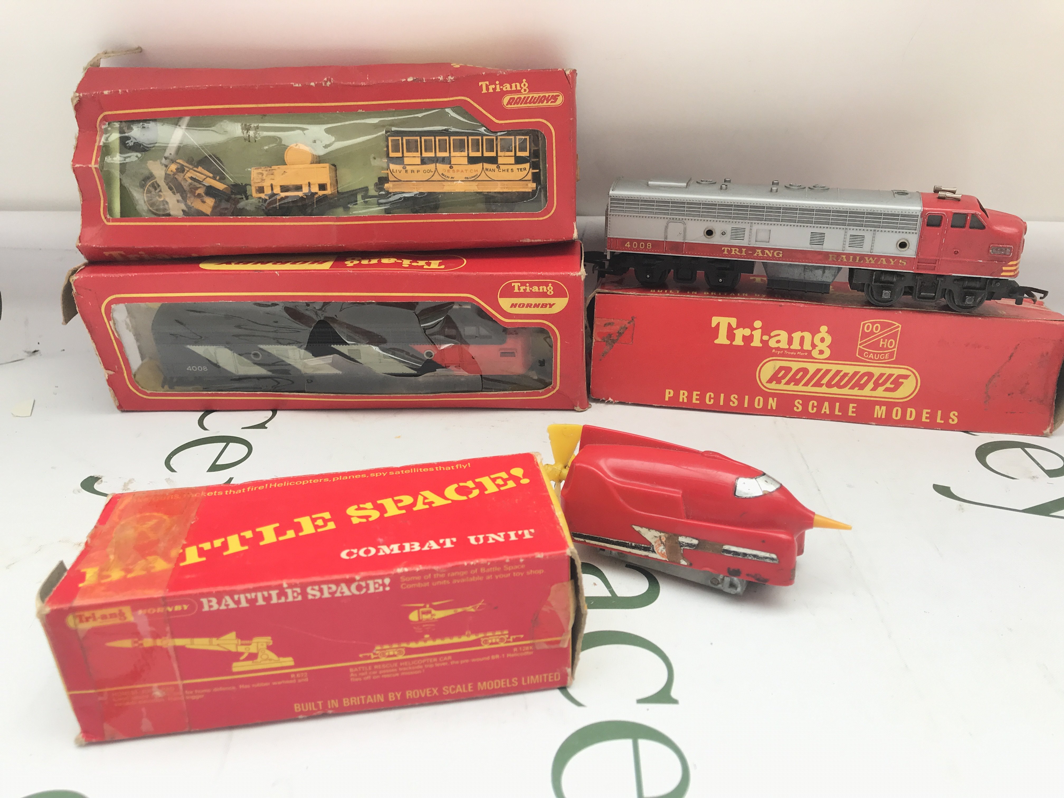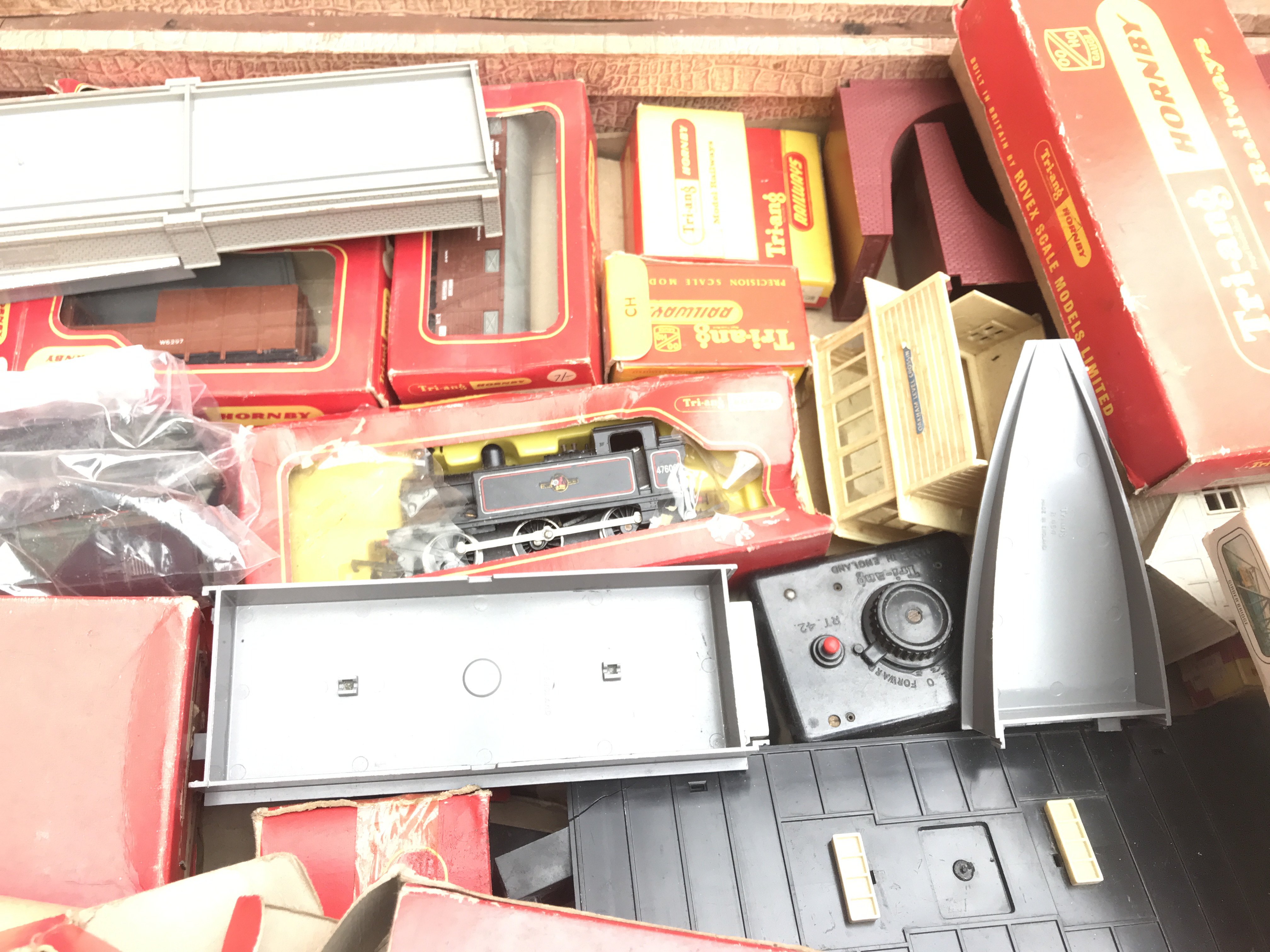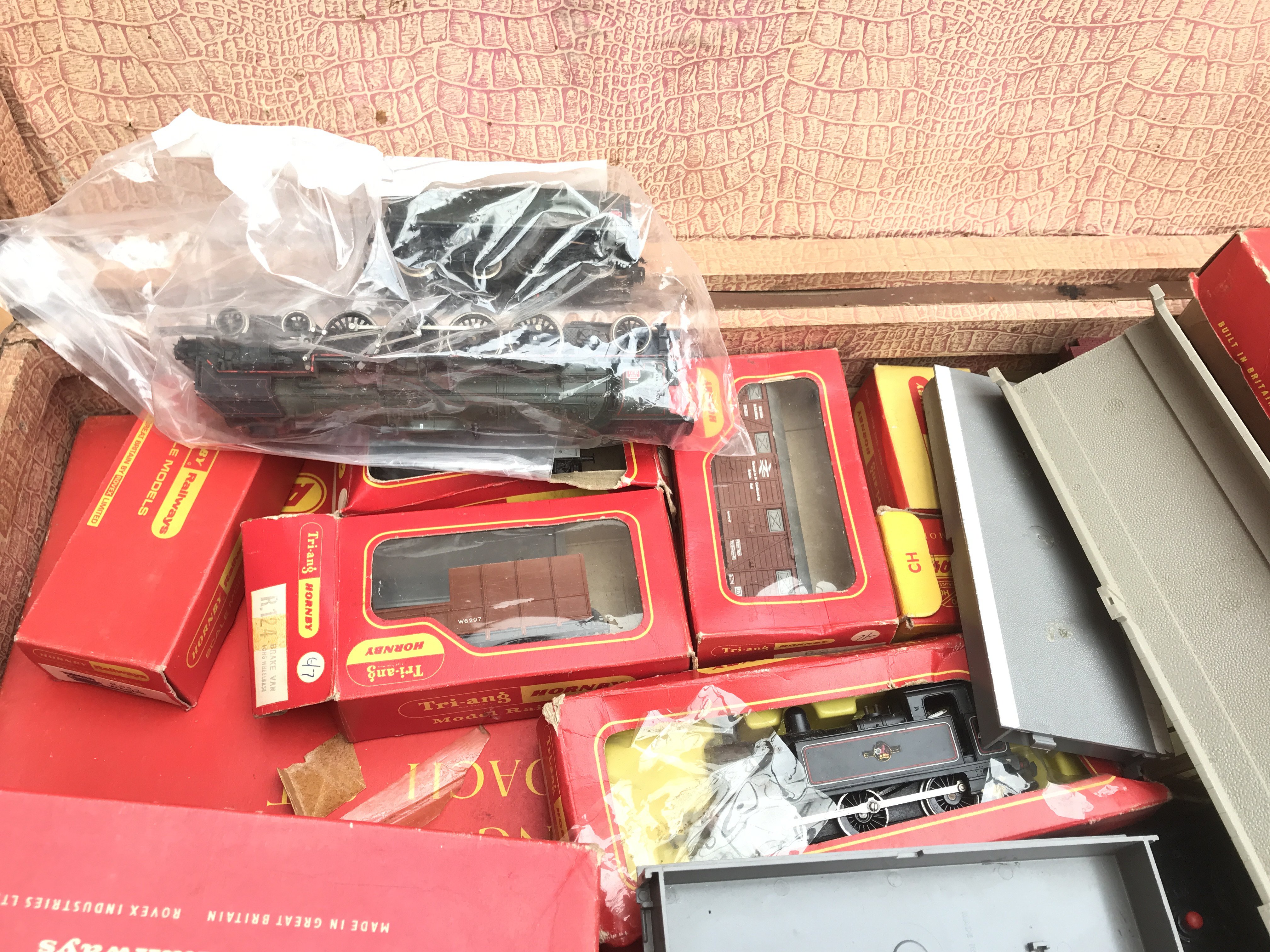 A Case Containing A Collection Of Hornby/Tri-Ang 00 Gauge Locos. Wagons. Buildings etc.(2)