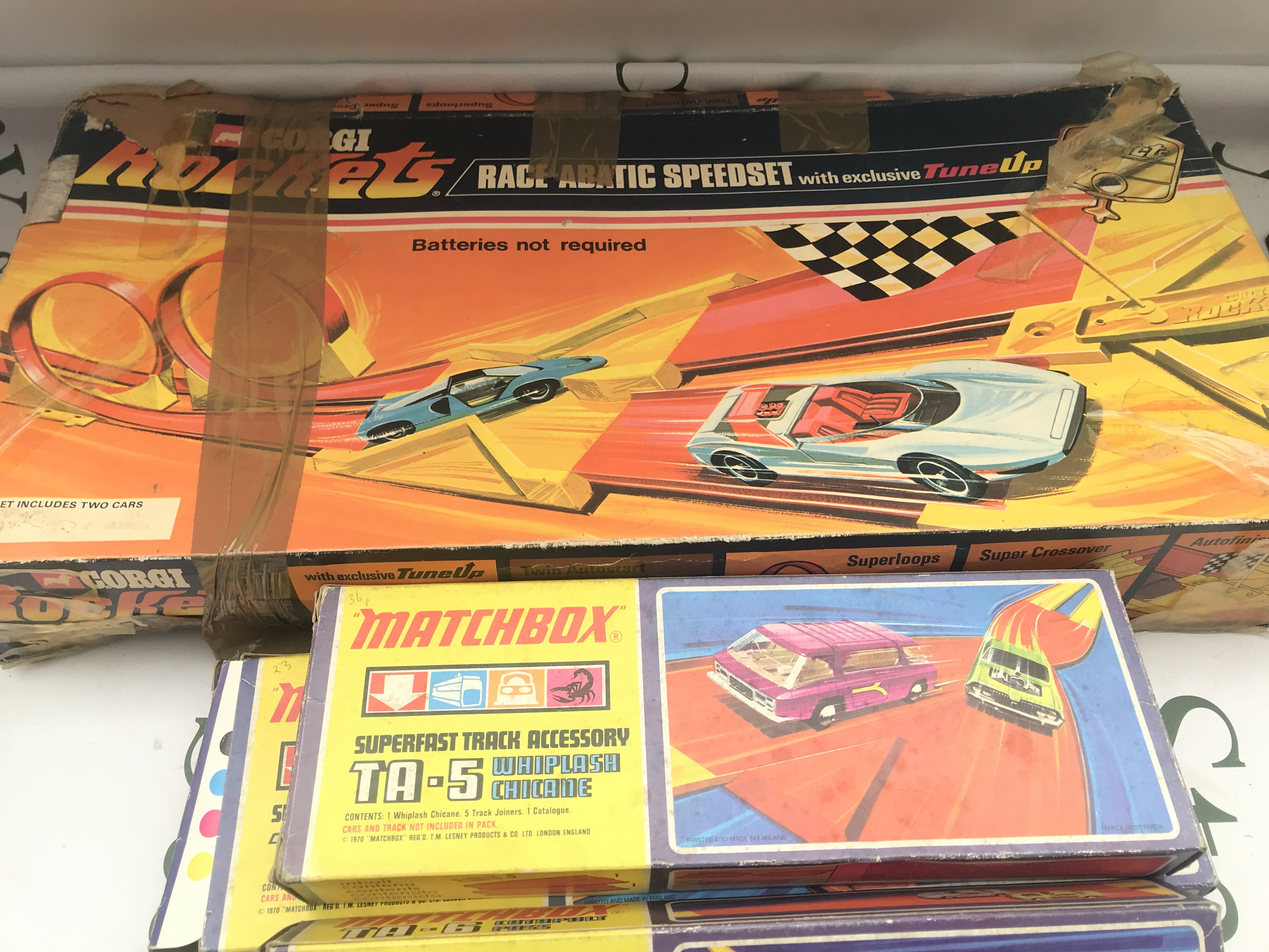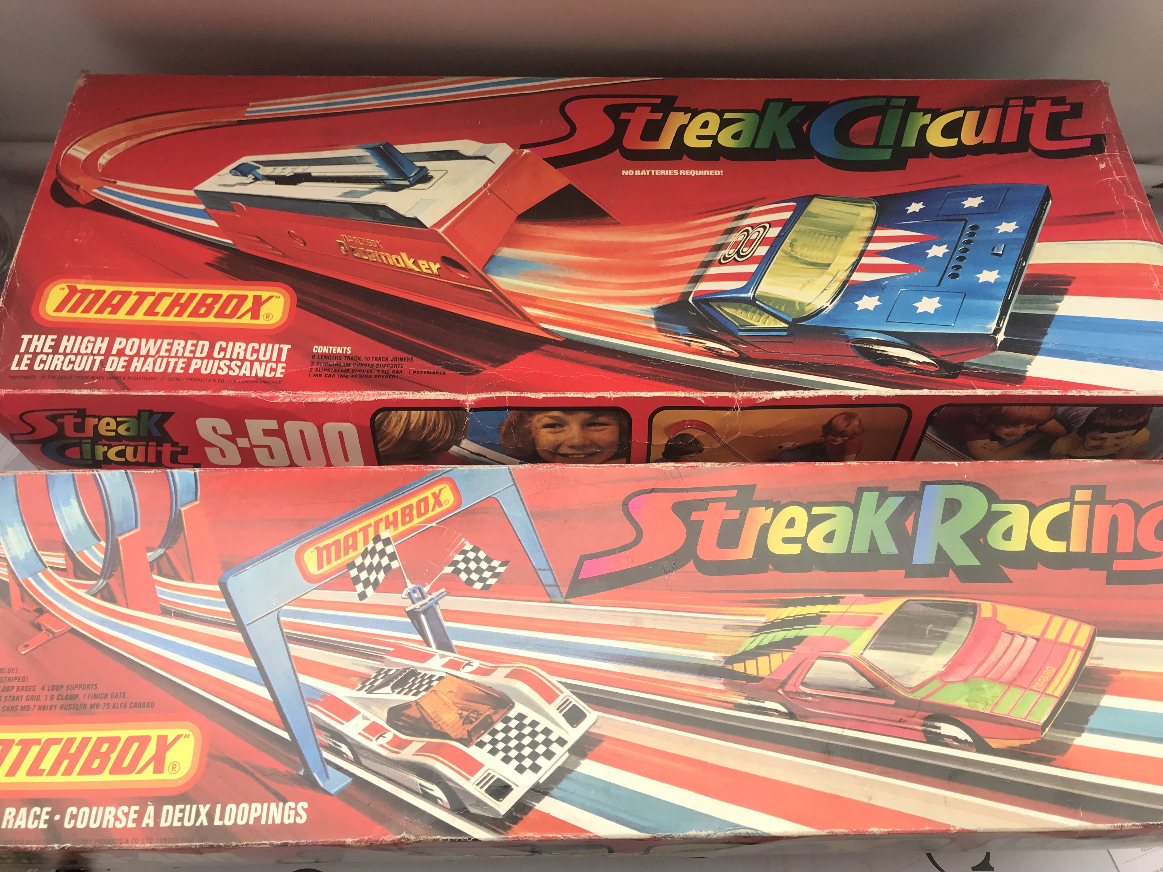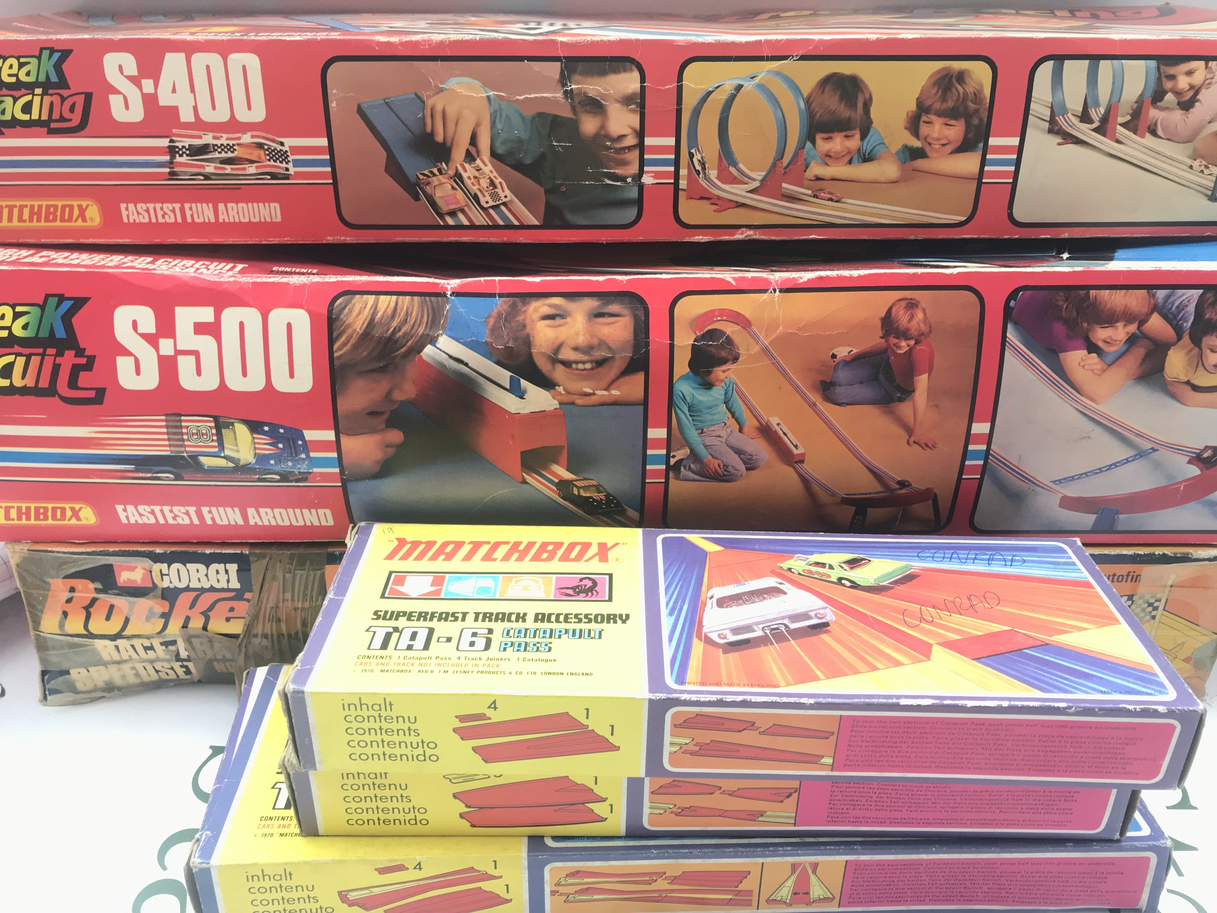 A Collection Of Boxed Matchbox Track. Including Street Circuit. Street Racing.Race-Abratic Speedset And A Streak-A-Round Plus Extras. No Reserve.