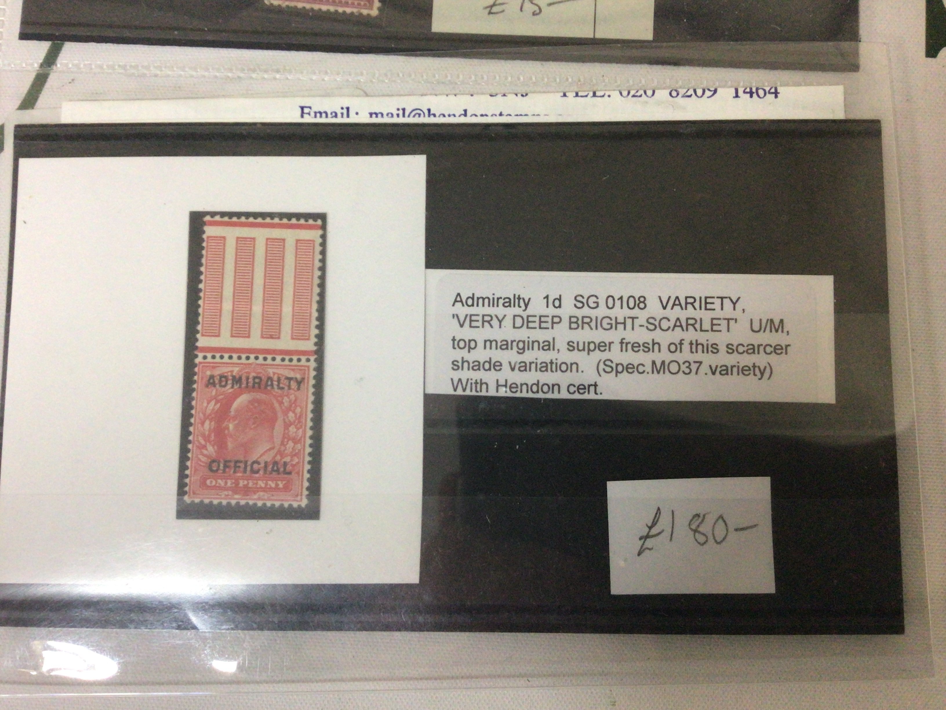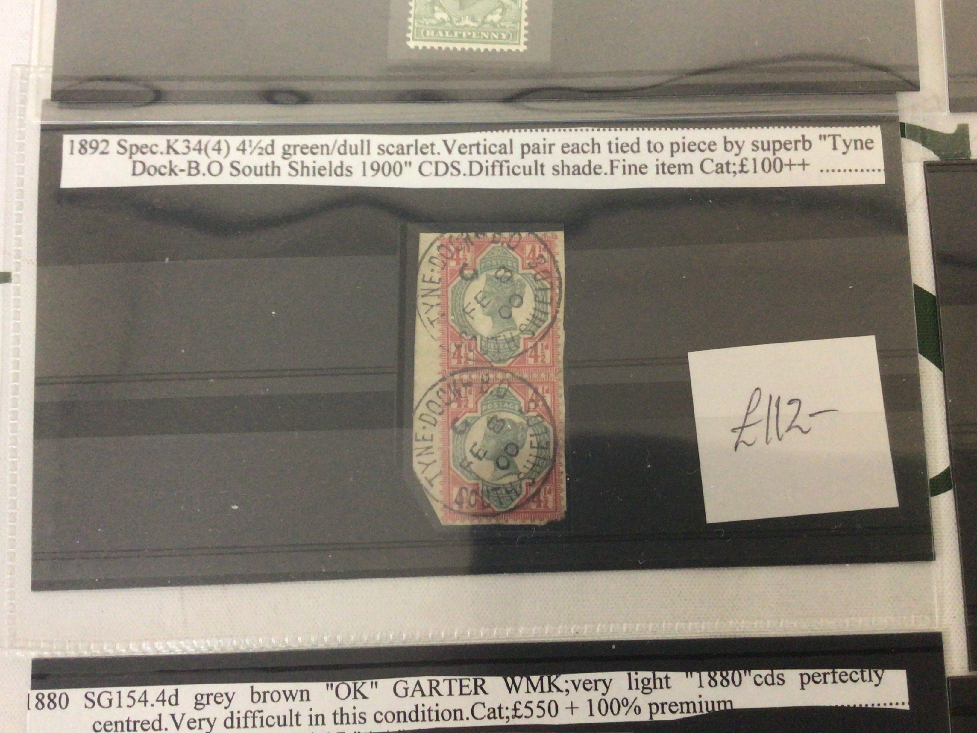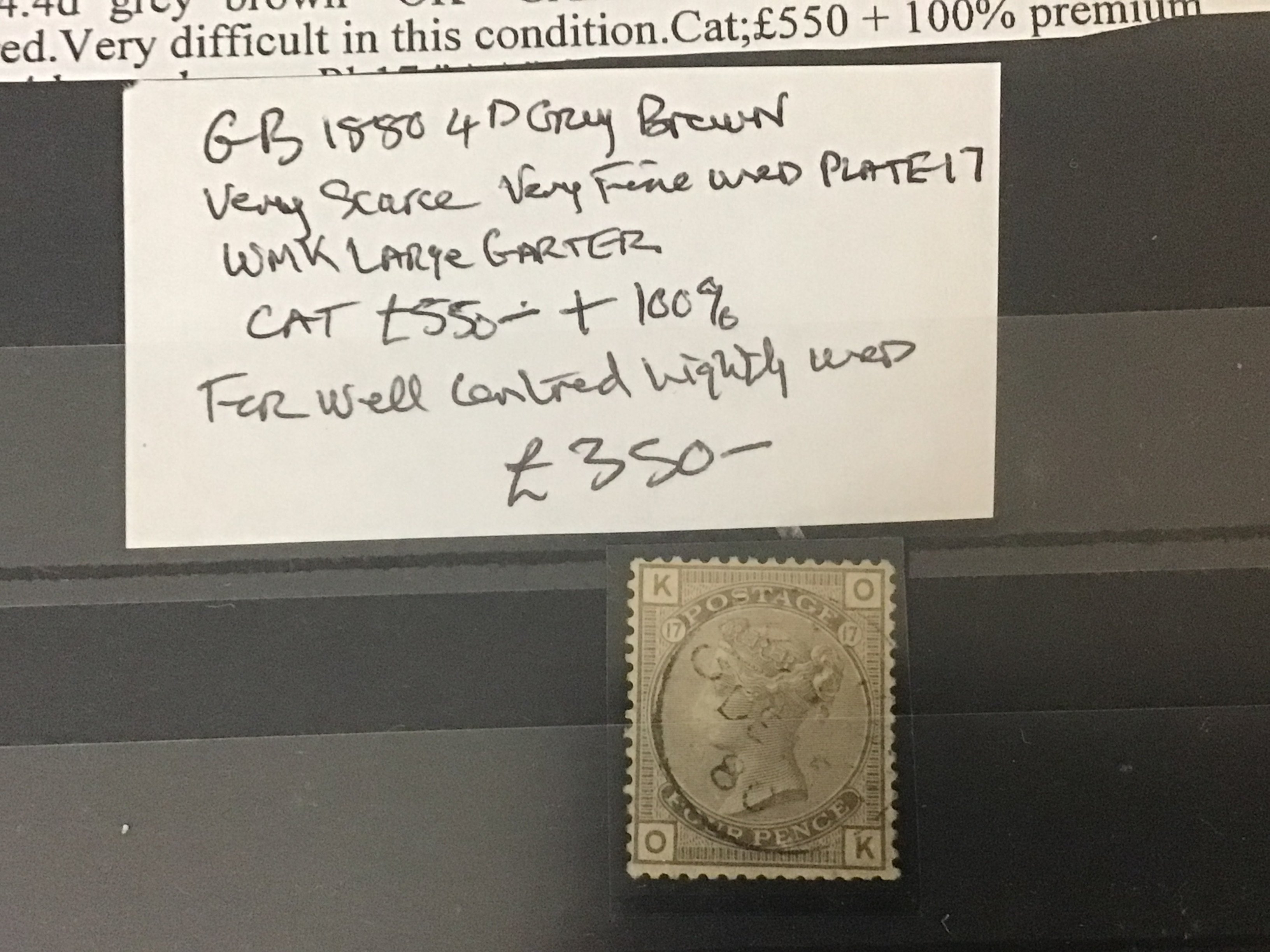 PLEASE NOTE WE HAVE REMOVED TWO CERTIFICATES OF AUTHENTICITY FROM THIS LOT WHICH BELONG WITH THE TEN SHILLING STAMP 3782 THE VICTORIAN ONE POUND STAMP 12172 IN LOT 2216. A Collection of Victorian Edward VII and George V stamps good examples well presented many with Stanley Gibions reference and catalogue values. Including 1880 scares SG154 4d stamp catalogue value550 and many others including a Victorian pound in a sealed plastic slip.