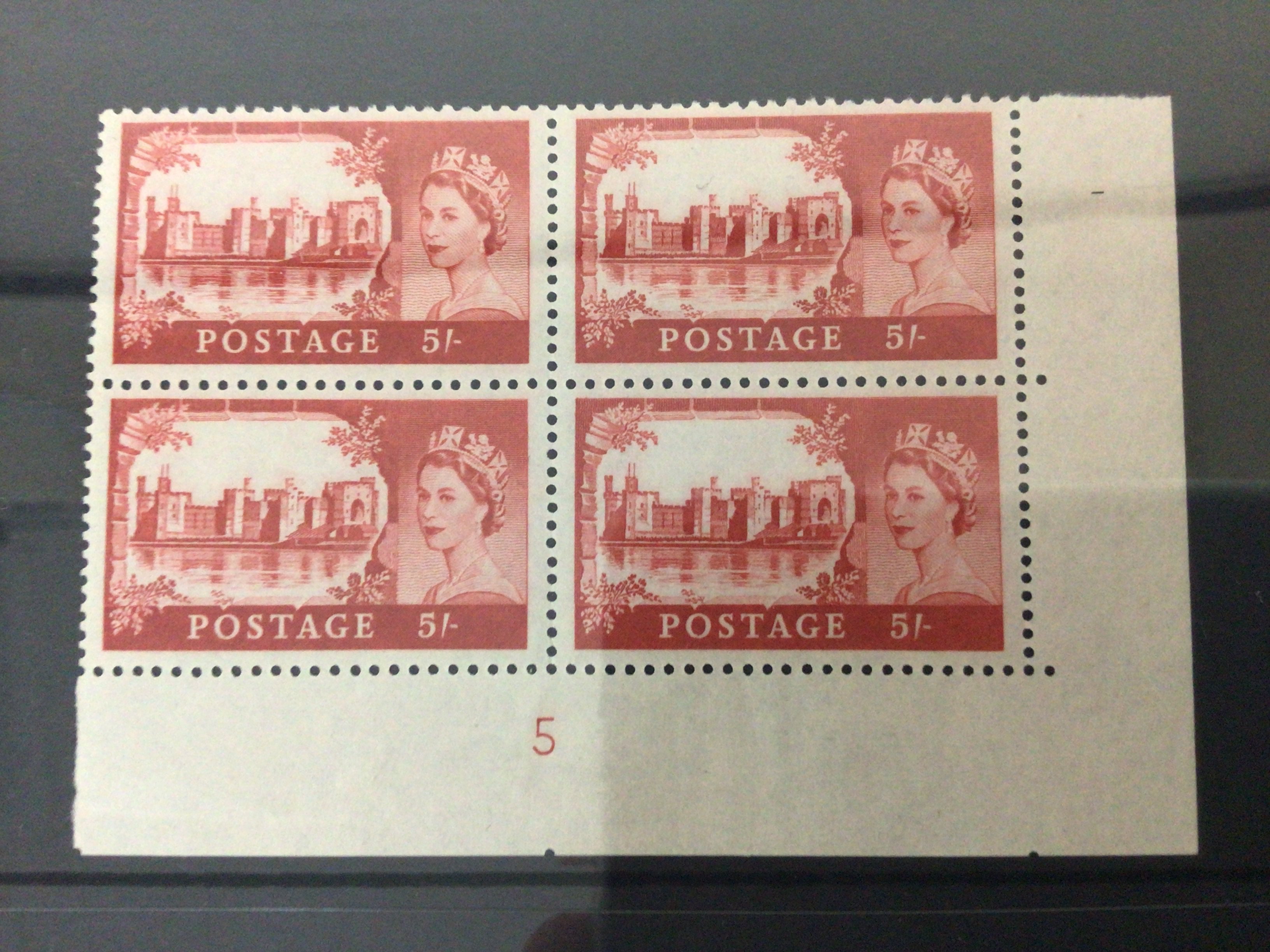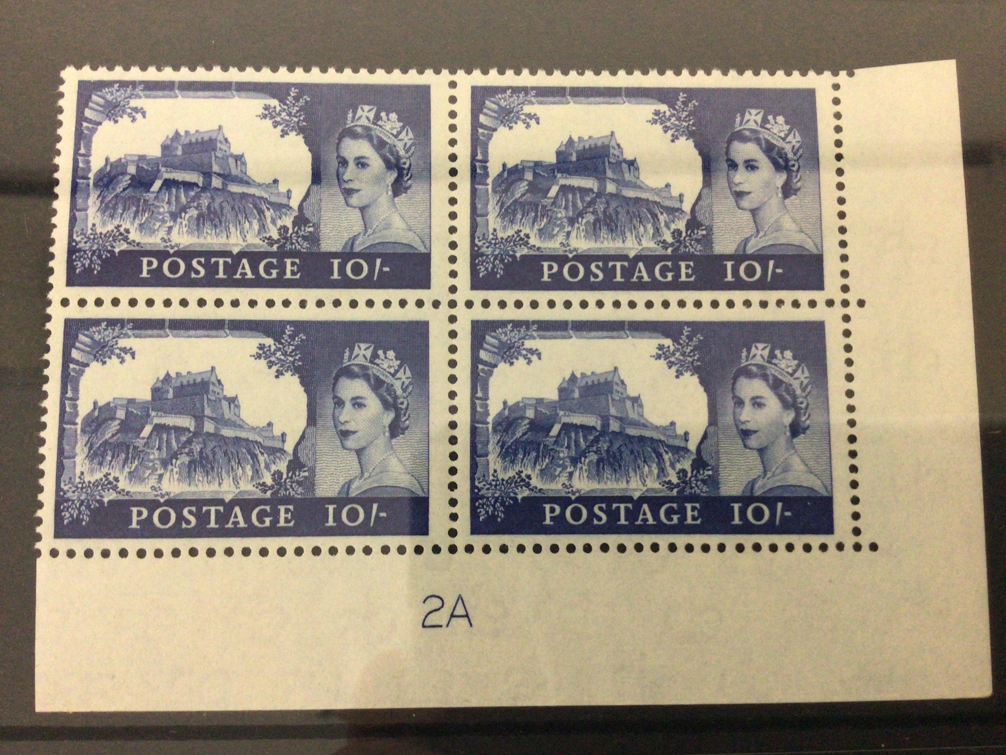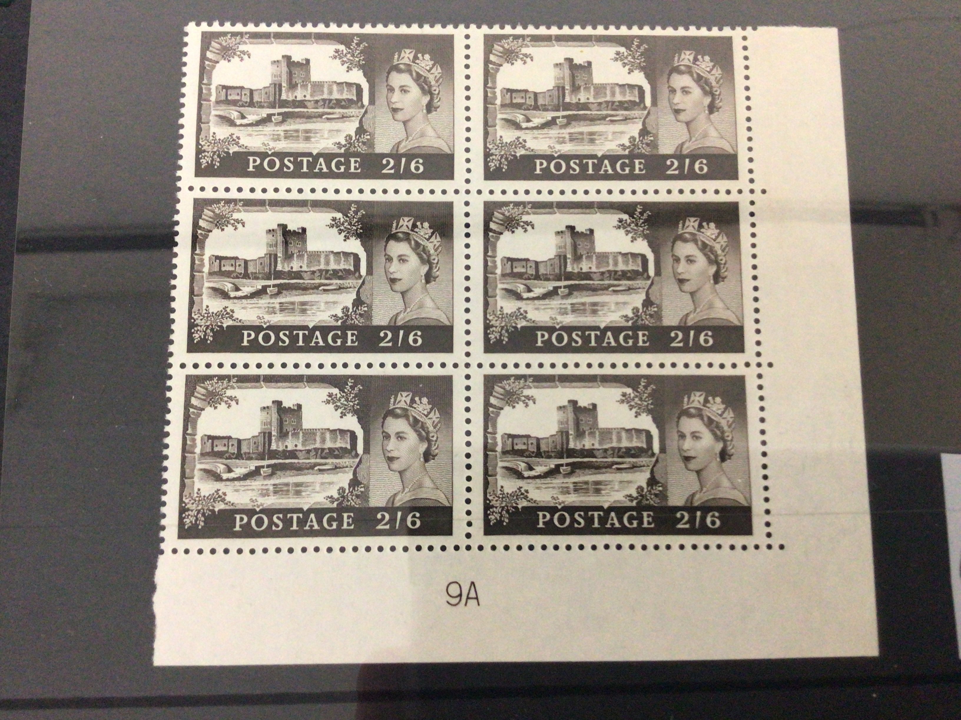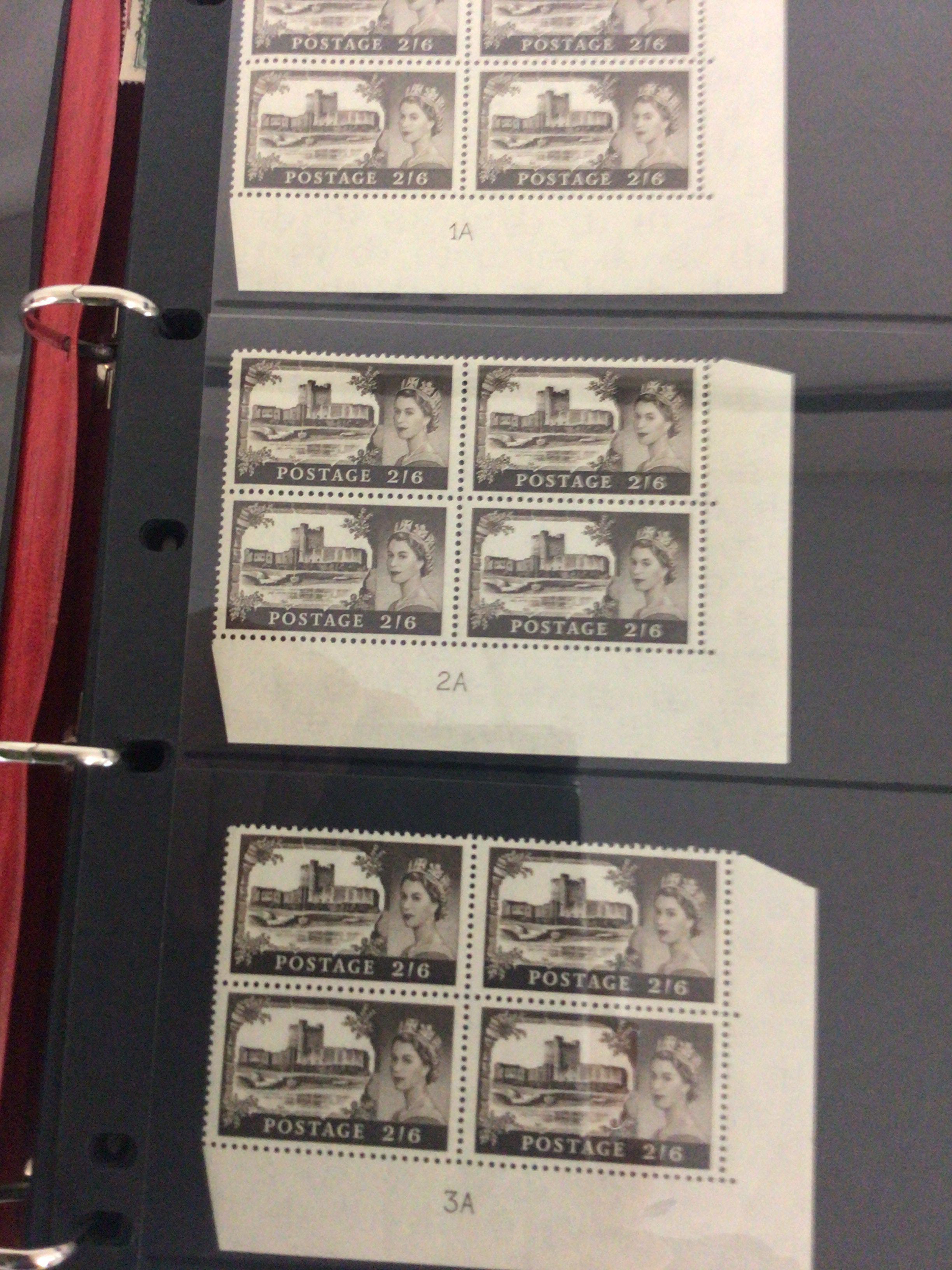 A well presented album containing nice unused Examples of Elizabeth II pre-decimal blocks of high value stamps most with margins including numerous 2/6 Castles 5/ 10/ and 1 approximately 44 unused blocks of stamps.