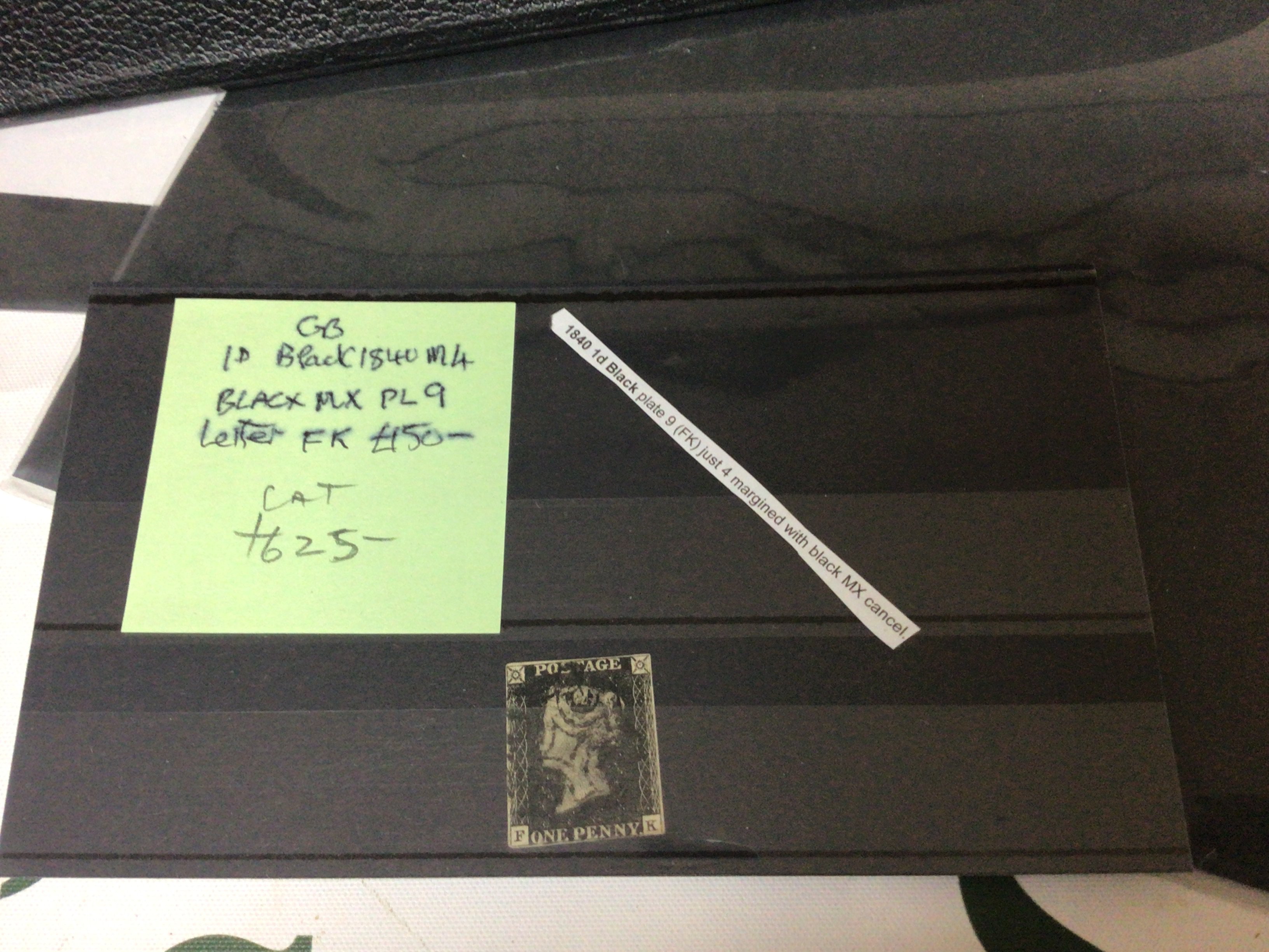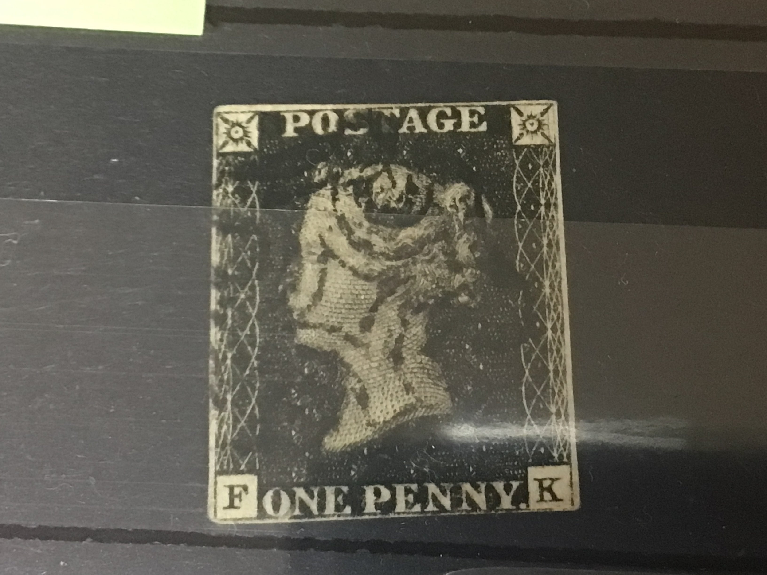 A Victorian 1840 Penny black stamp F-K catalogue value 625.
