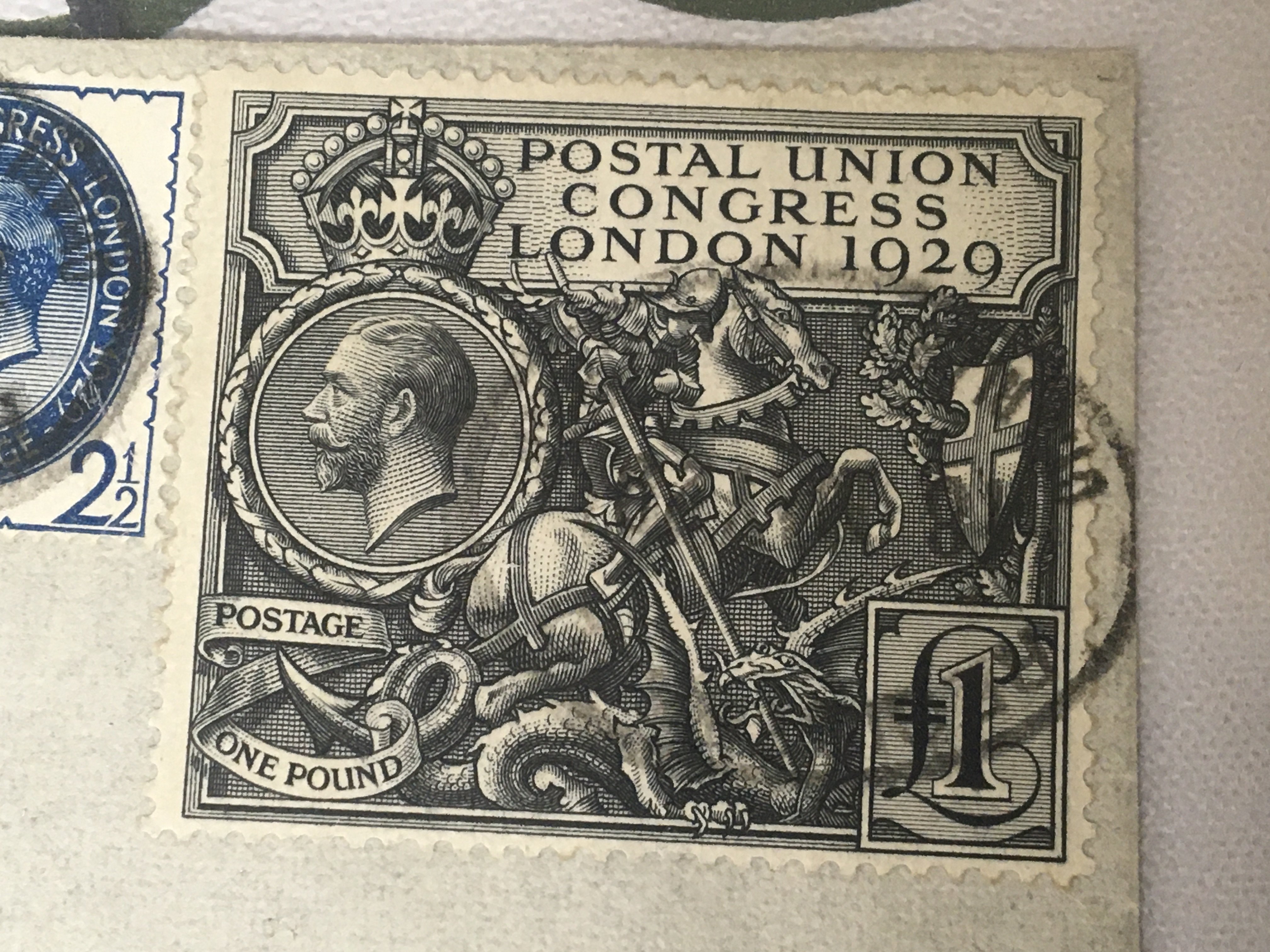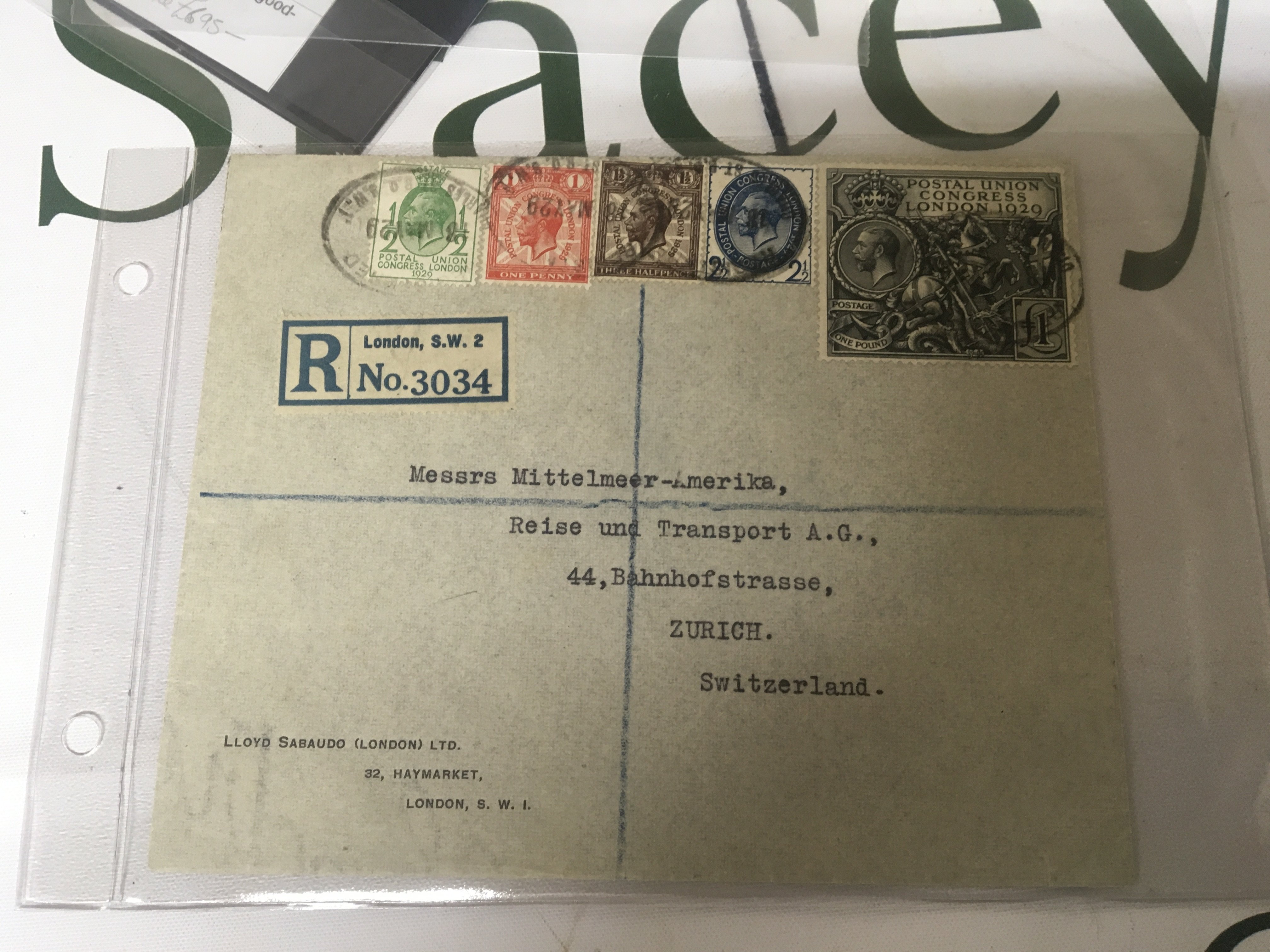 A High Value Recorded delivery international postal cover with Postal Union Congress 1929 one pound stamp.