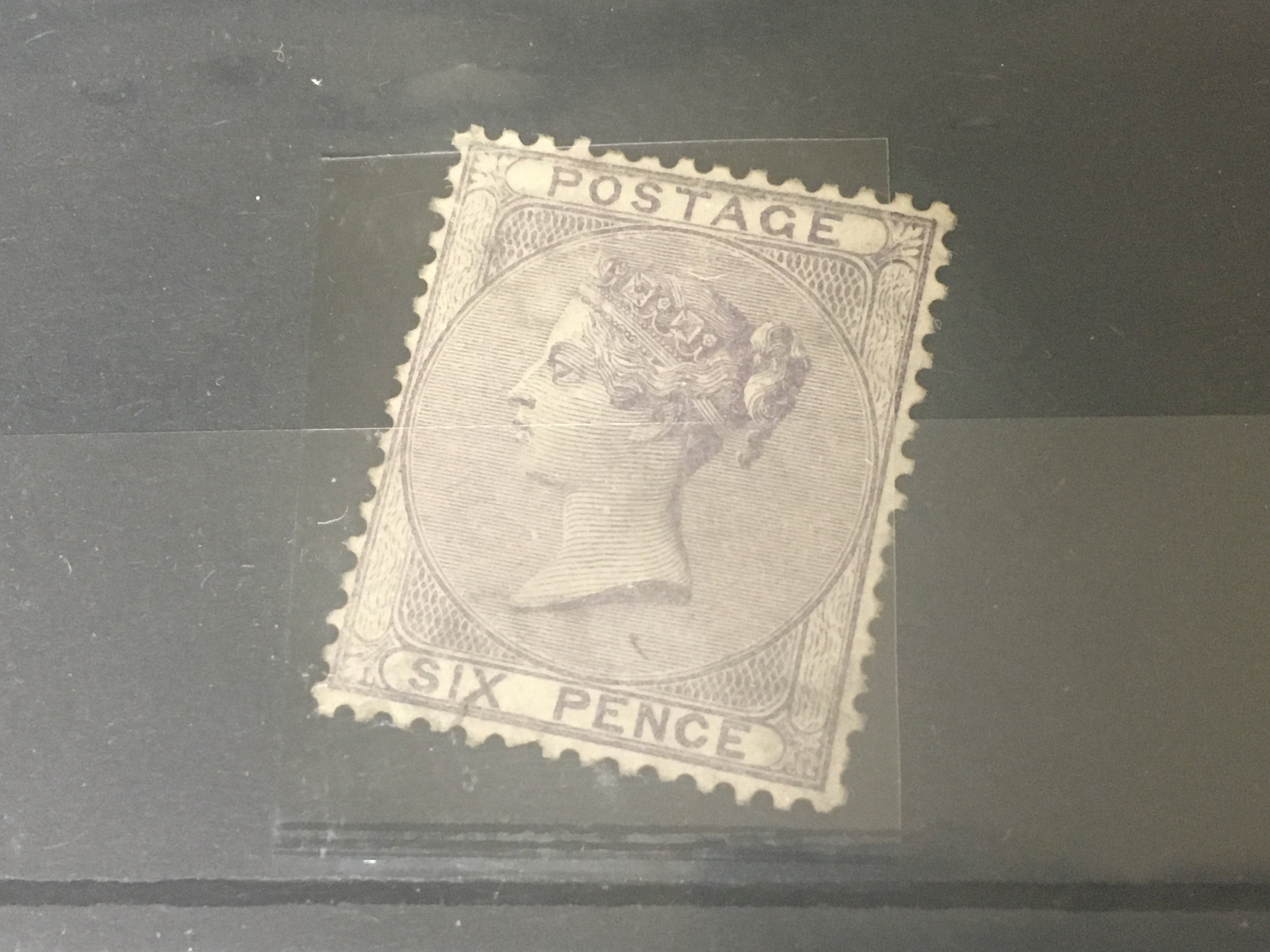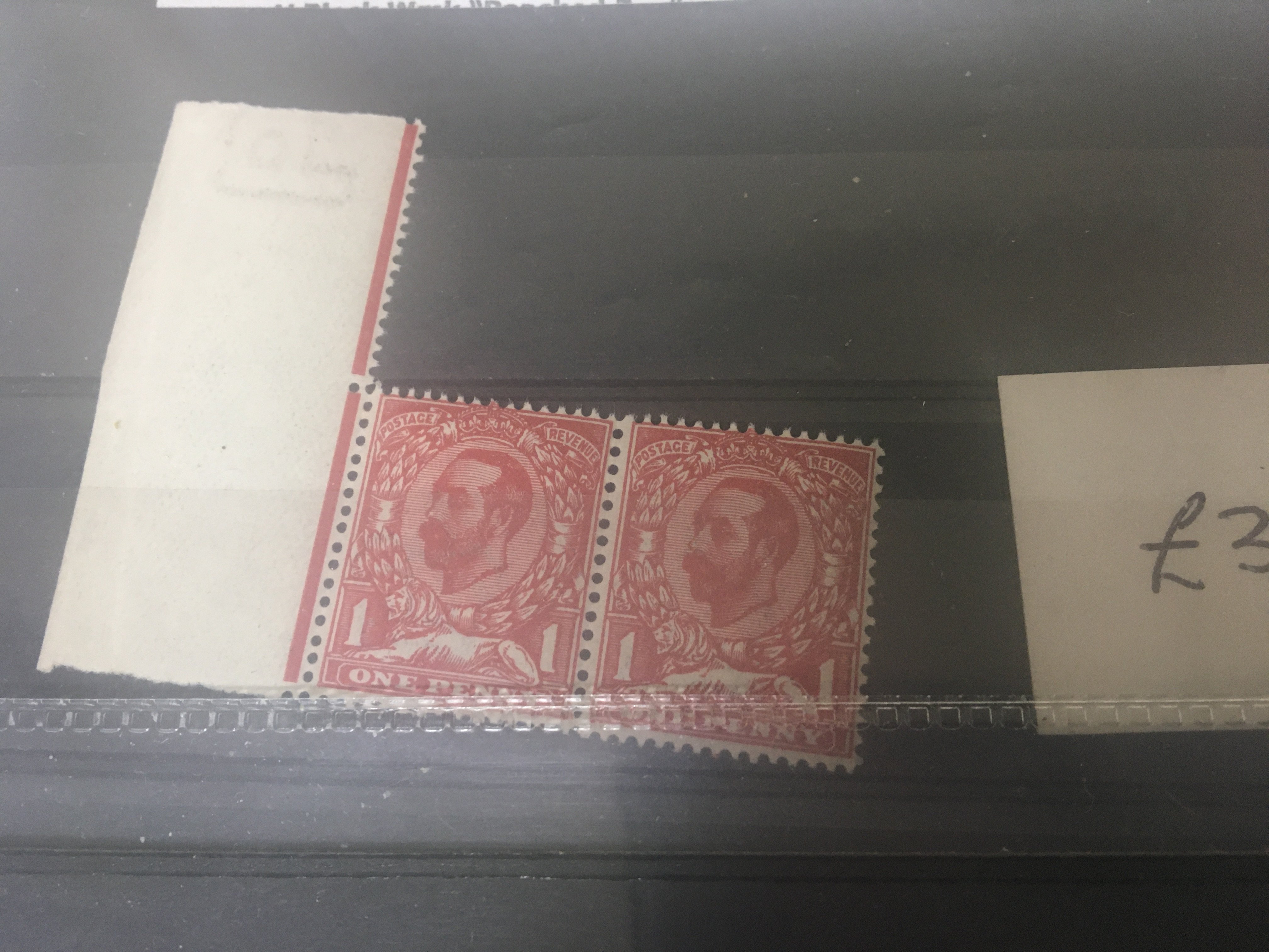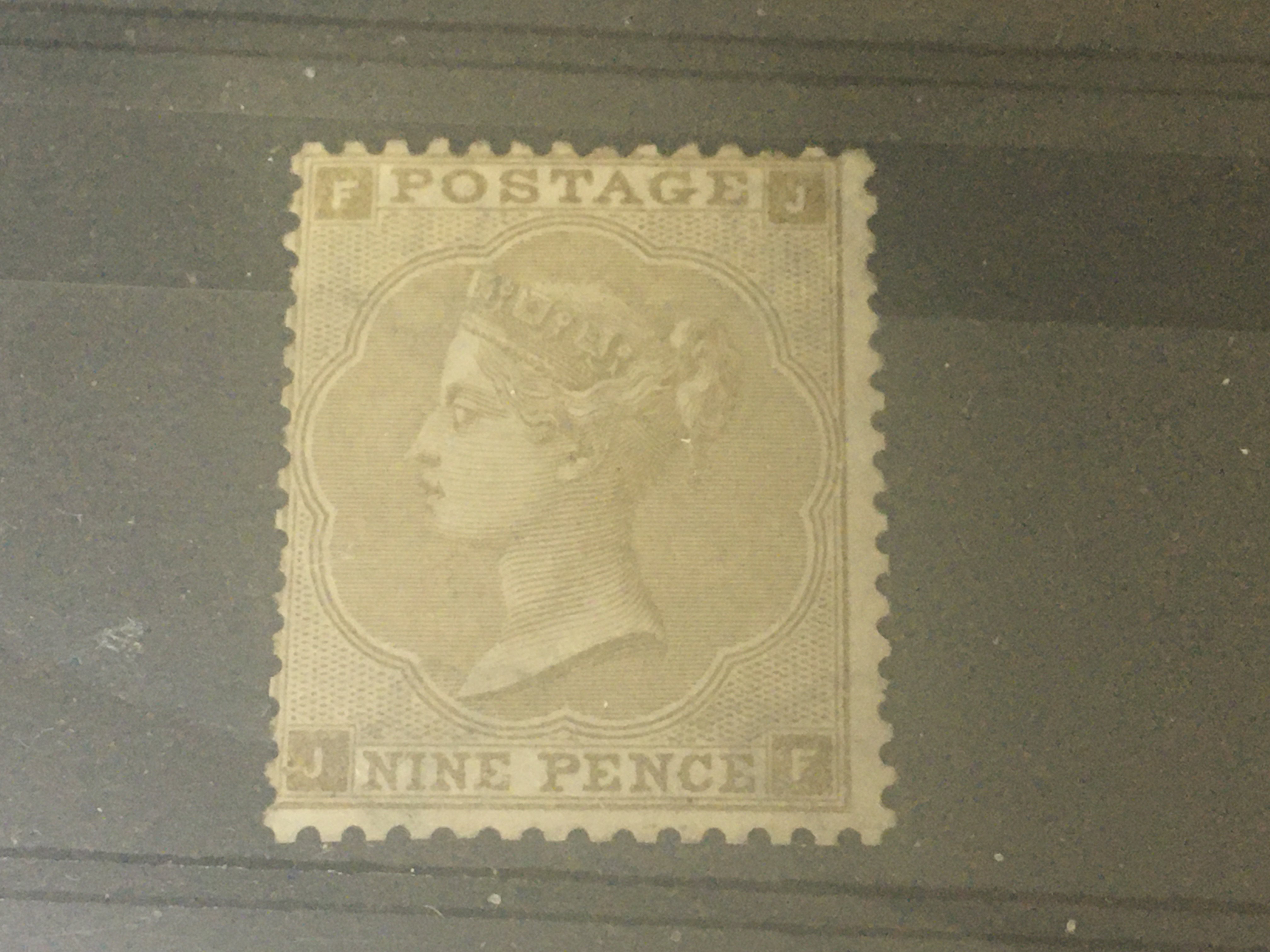 An unused 1862 Victorian nine pence stamp an unused Victorian six pence stamp and a block of two George V one penny stamps