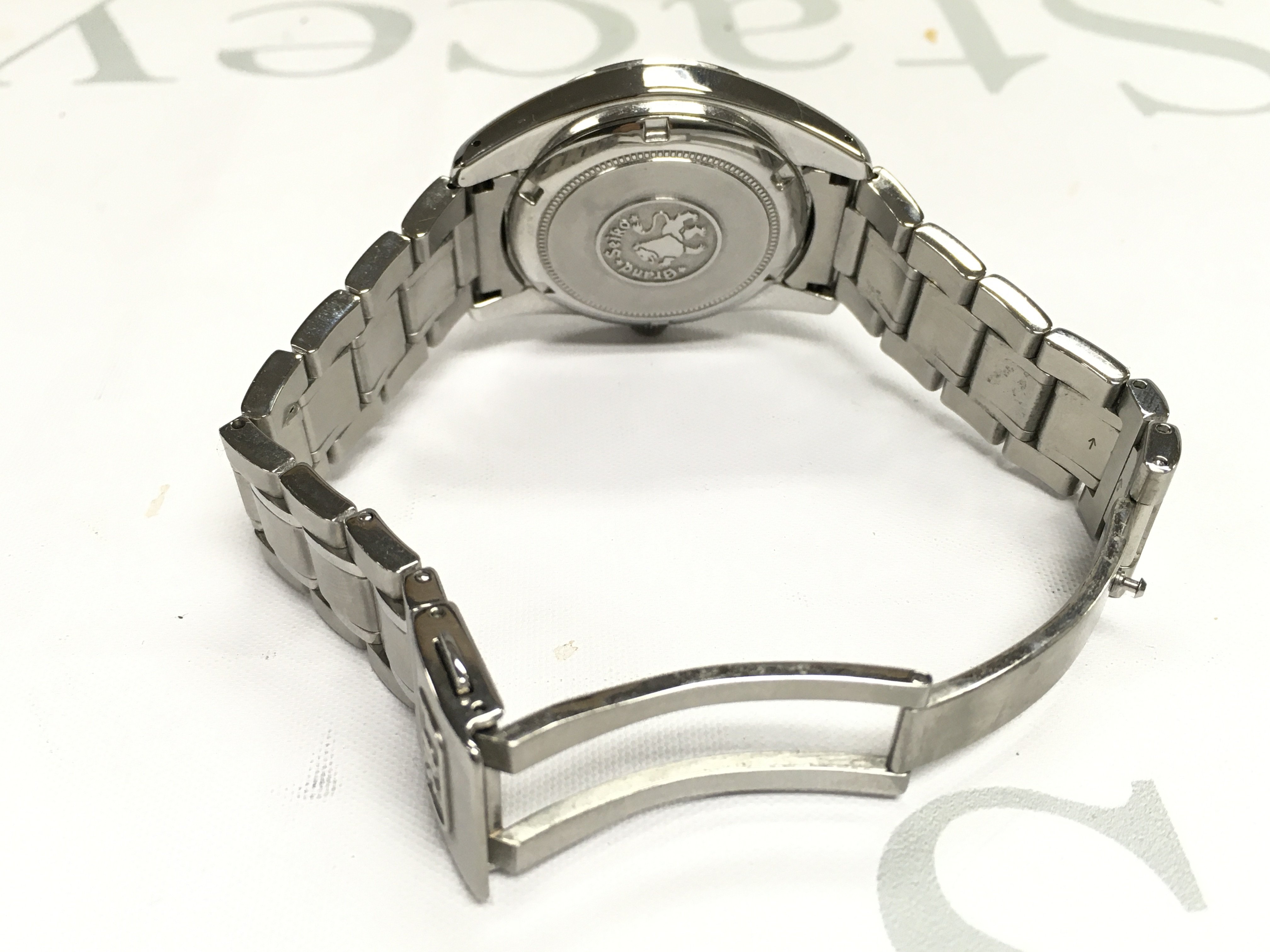 A mens Grand Seiko wrist watch. Model SNGR001. Stainless steel case and strap. Case approx 36mm. Automatic and seen running. Comes with copy or service receipt paperwork from August 2024. Postage B