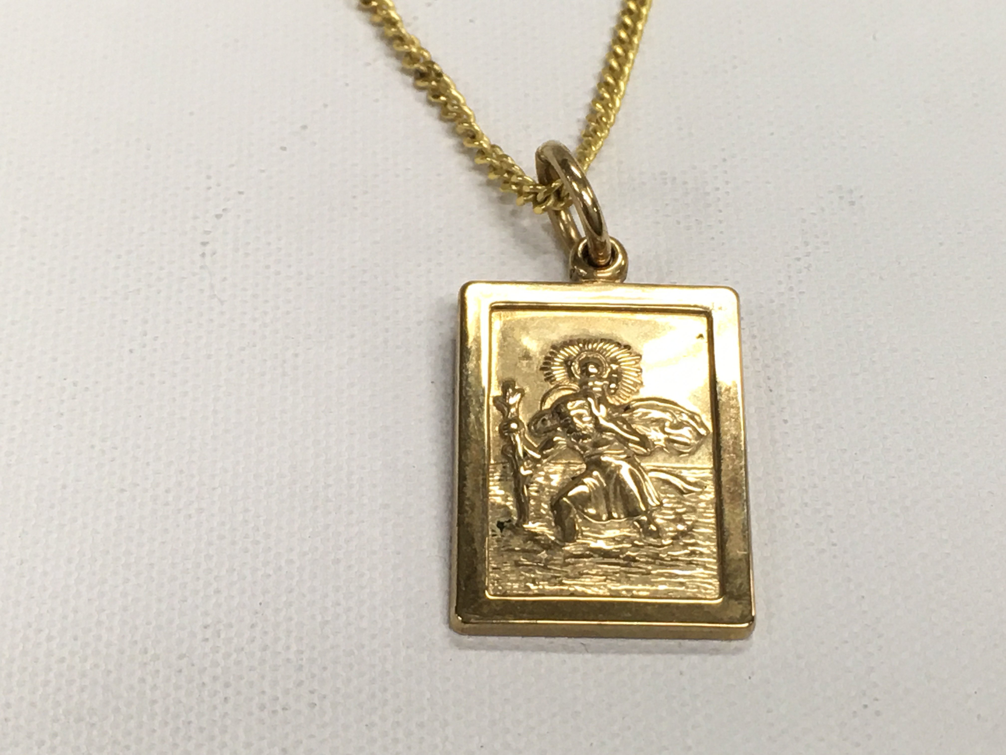A 9ct gold st Christopher۪s pendant on a 9ct gold chain. 9.30g