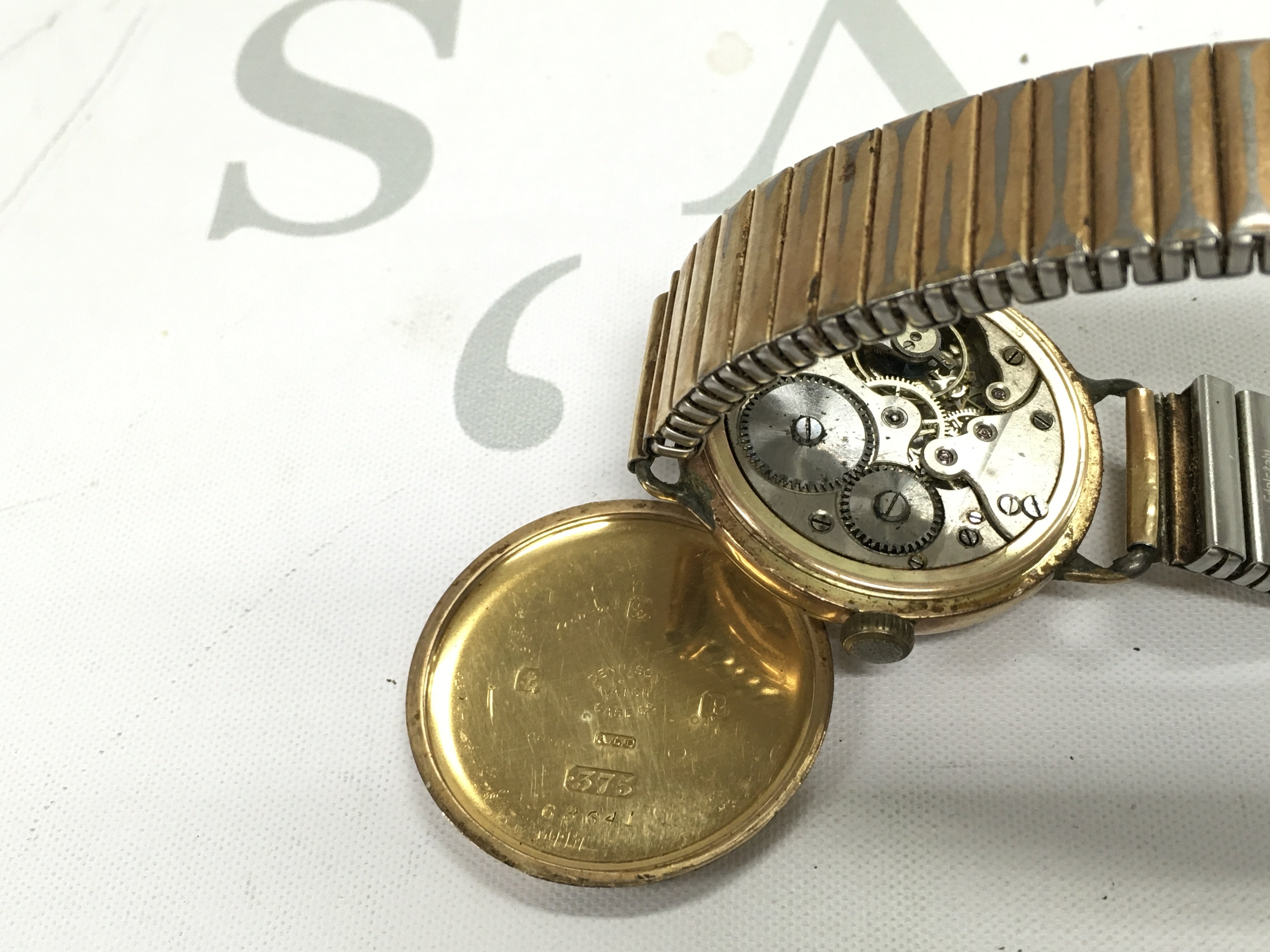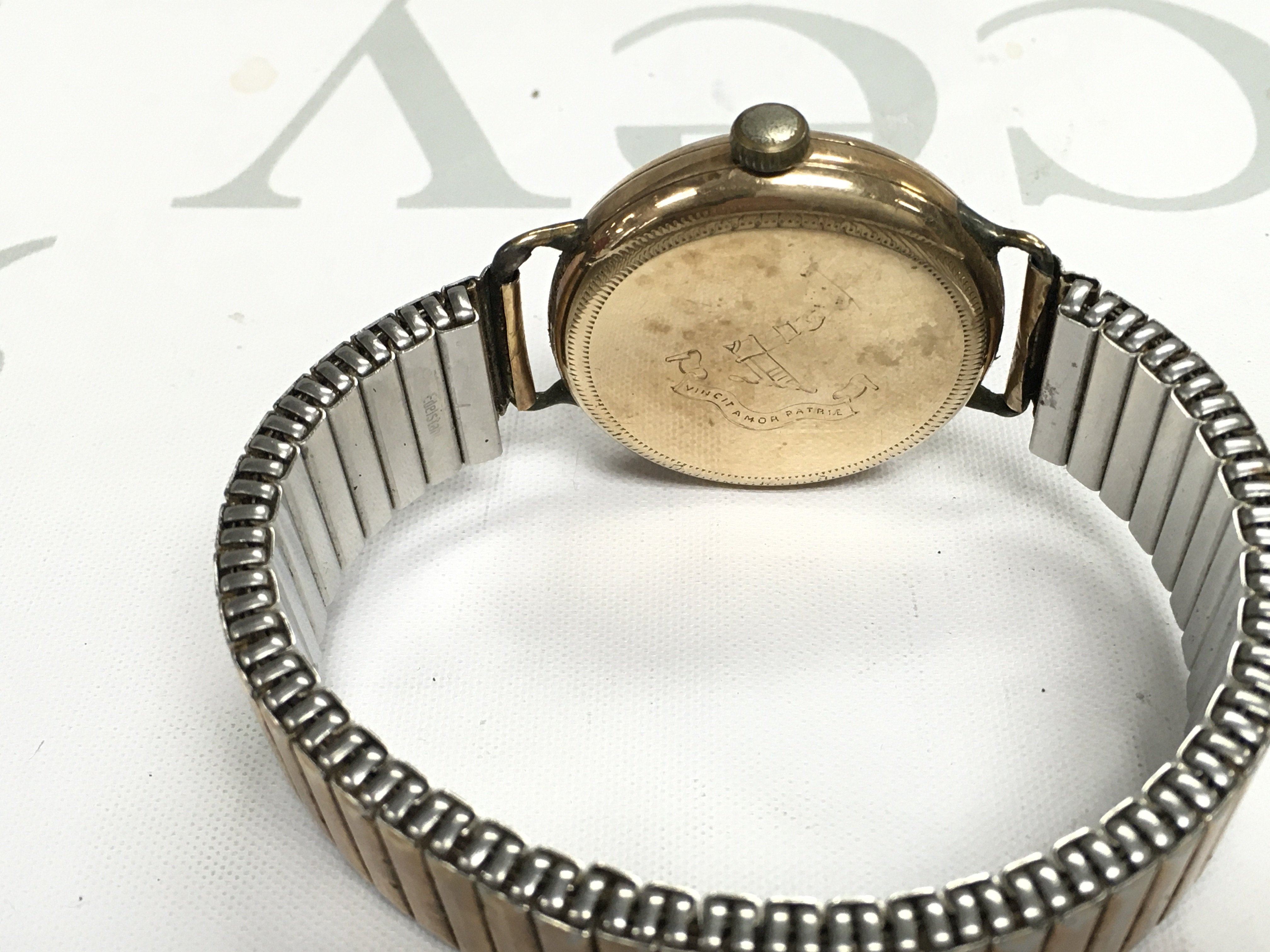 A vintage 9ct gold cased Dogma Prima watch. Winds and runs. Case approx 36mm