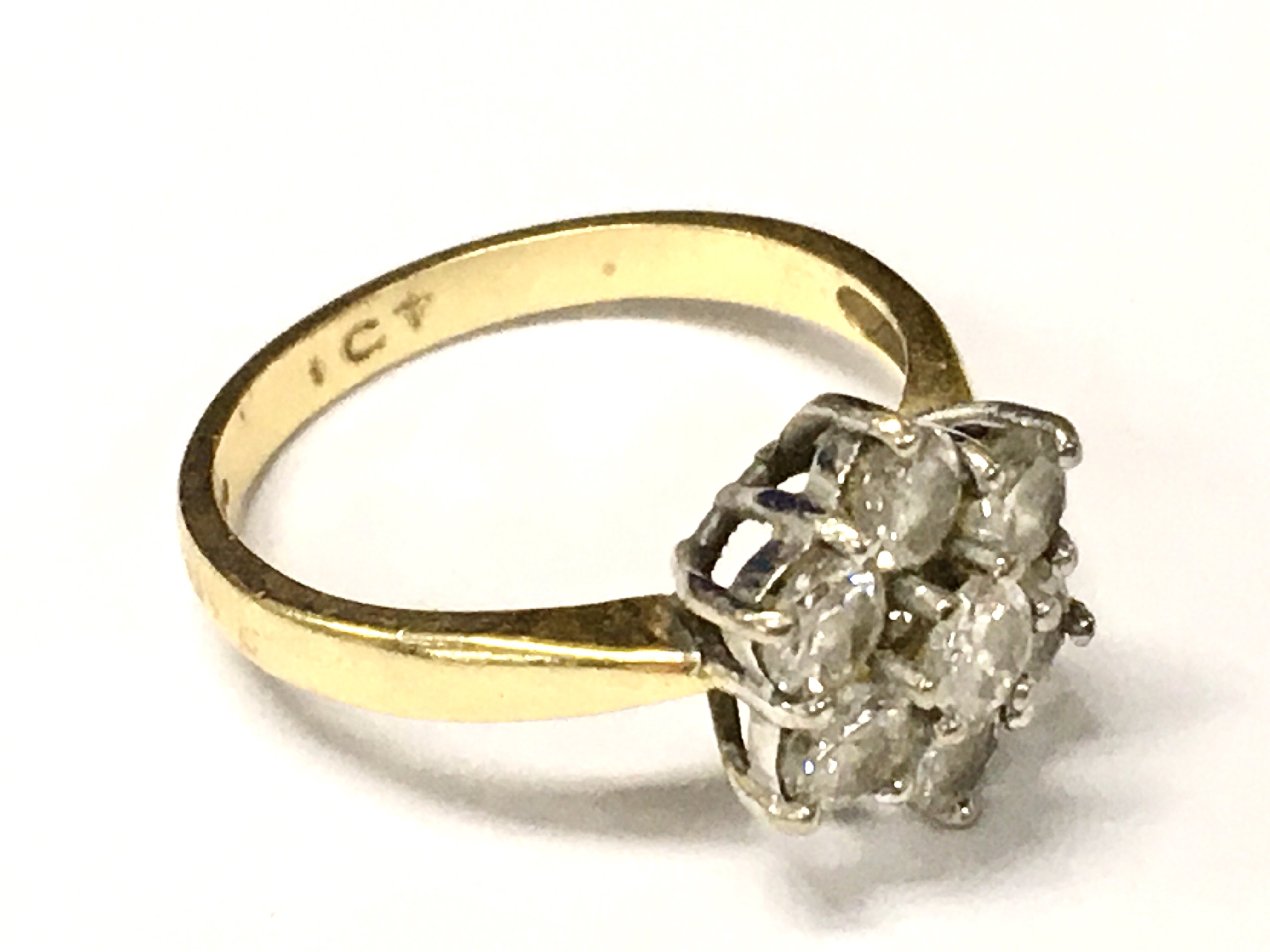 An 18ct gold small diamond cluster ring, Approx size O, Approx weight 3.99
