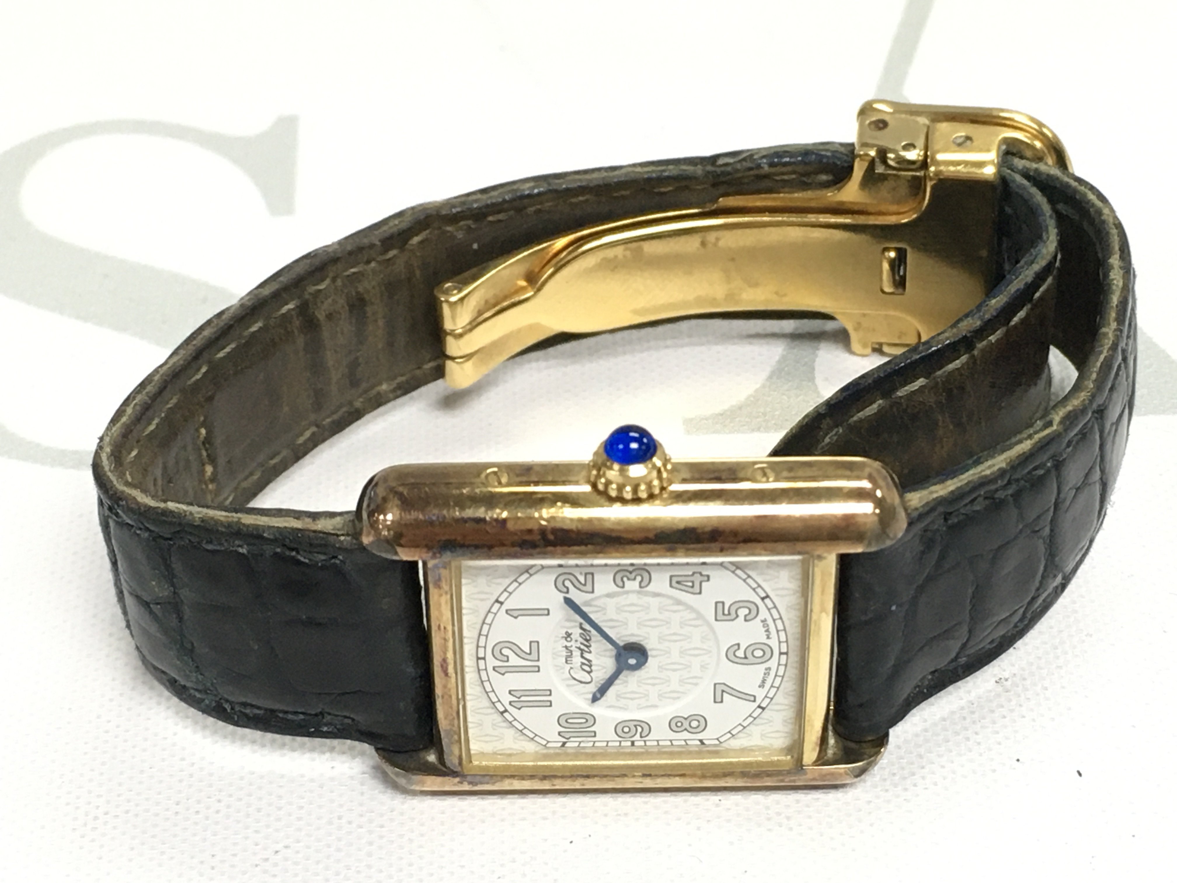 Cartier Must De Tank 2415 Quartz Watch Gold-Plated 925 Art Deco Style Dial. Not seen running. Postage B