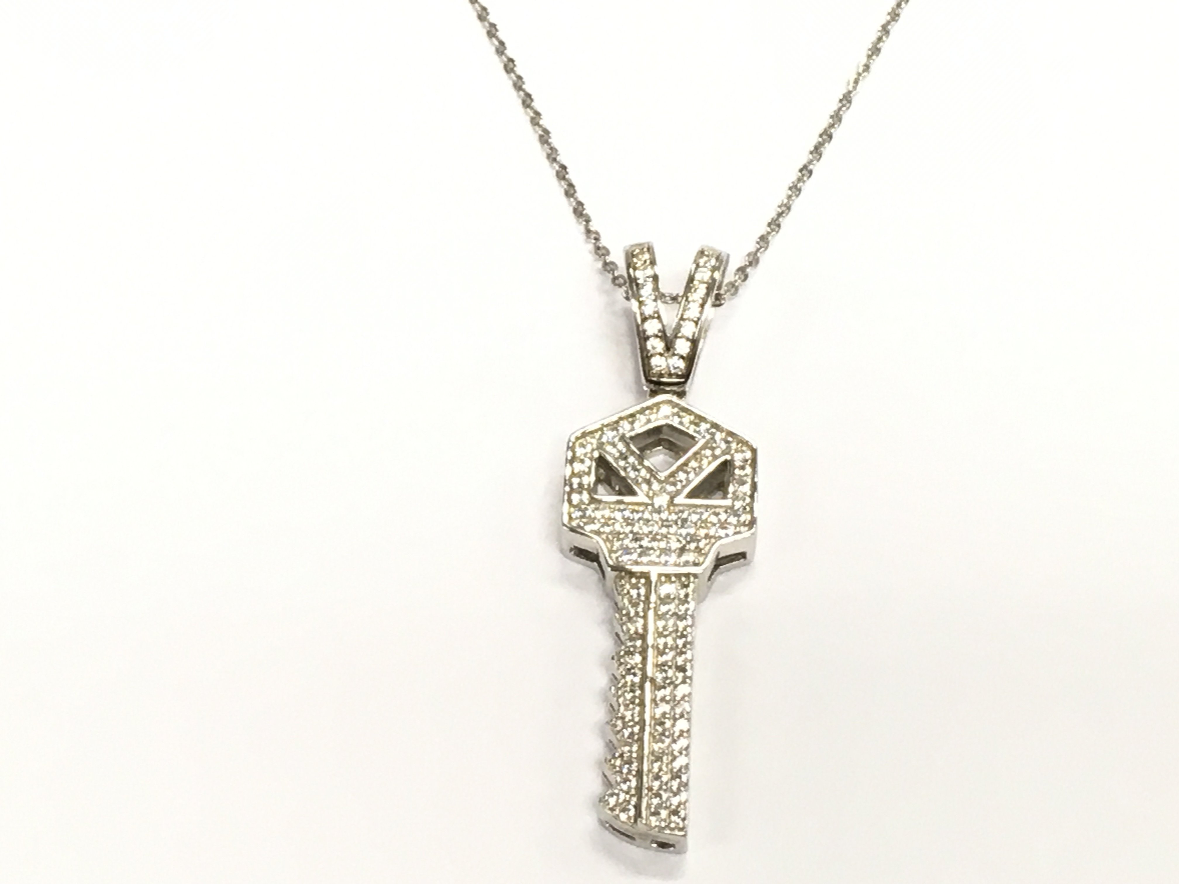 A silver key pendant pave set with over 100 white round CZ. Postage B