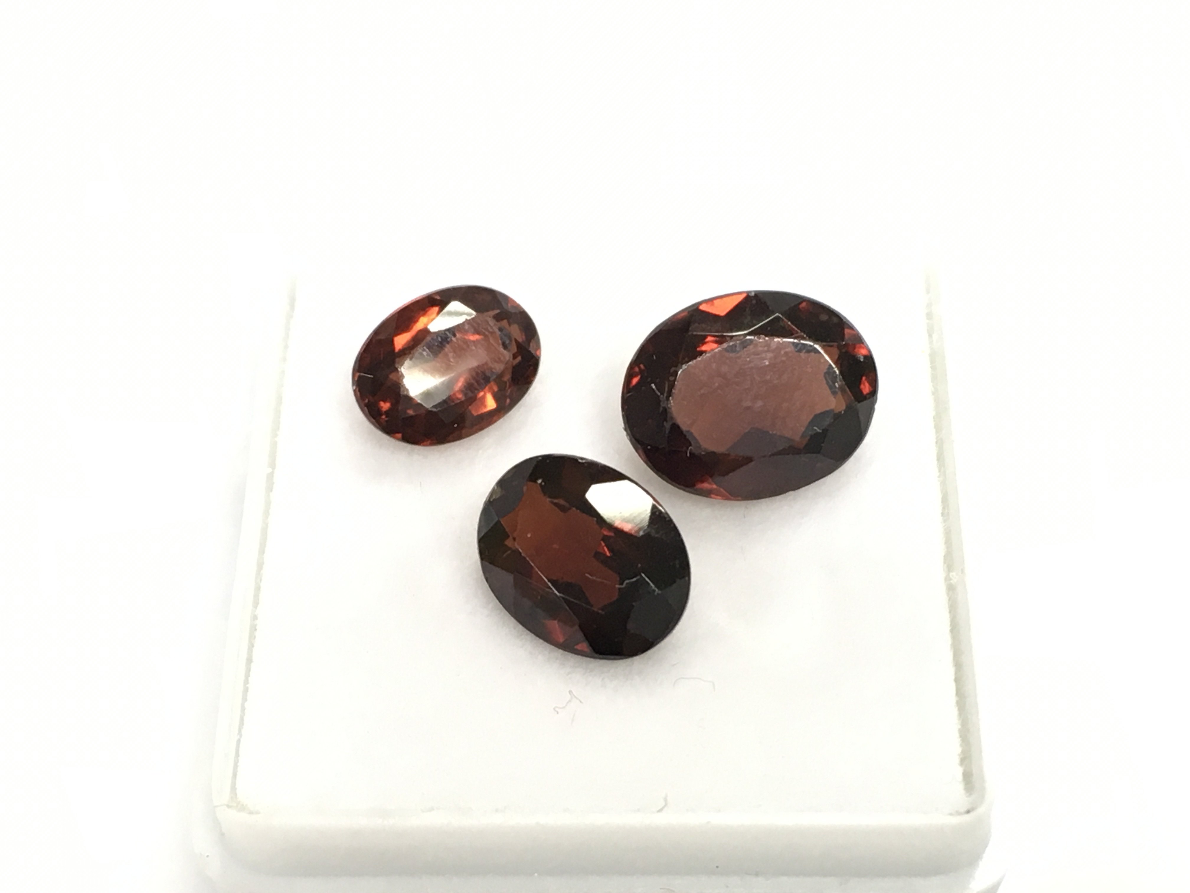 3 unmounted oval cut garnets in box. Approximately 6.84ct total.