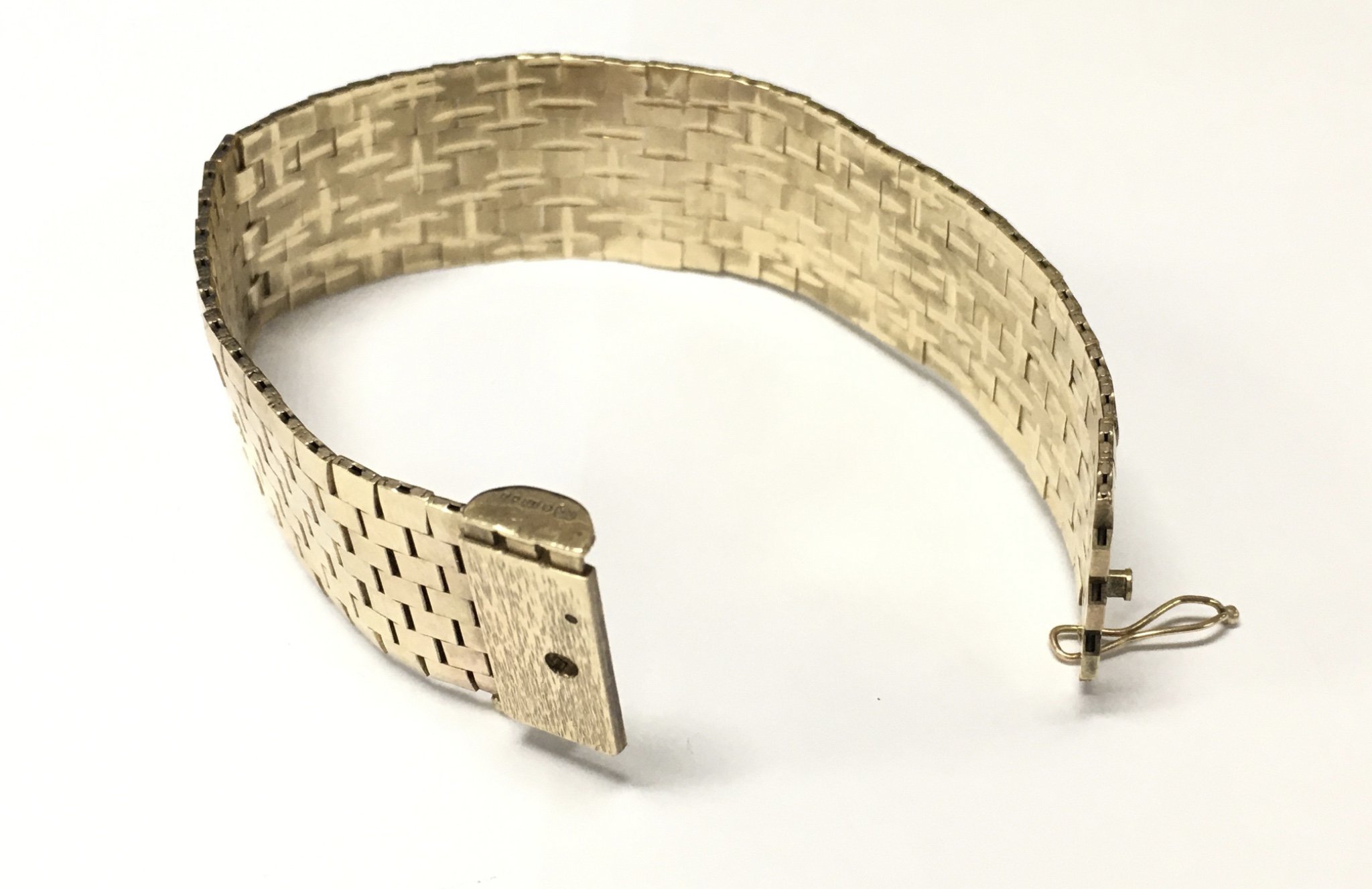 A 9ct gold solid row link bracelet. Approx length 7.5 inches, Approx weight 52.74 grams.
