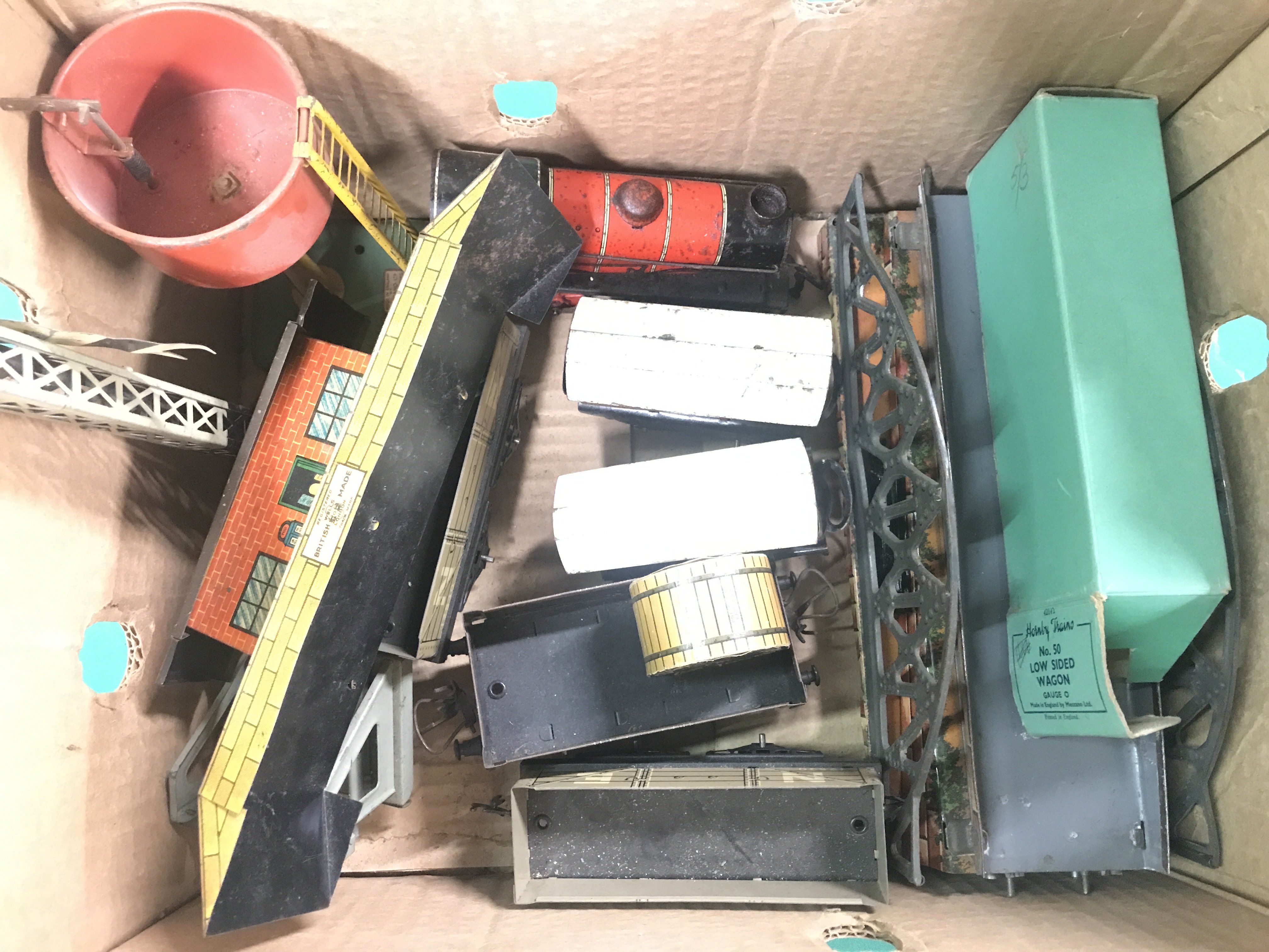 A Collection Of Boxed 0 Gauge Including 3 Locos. Wagons And Accessories. Some Loose And Track.(5).