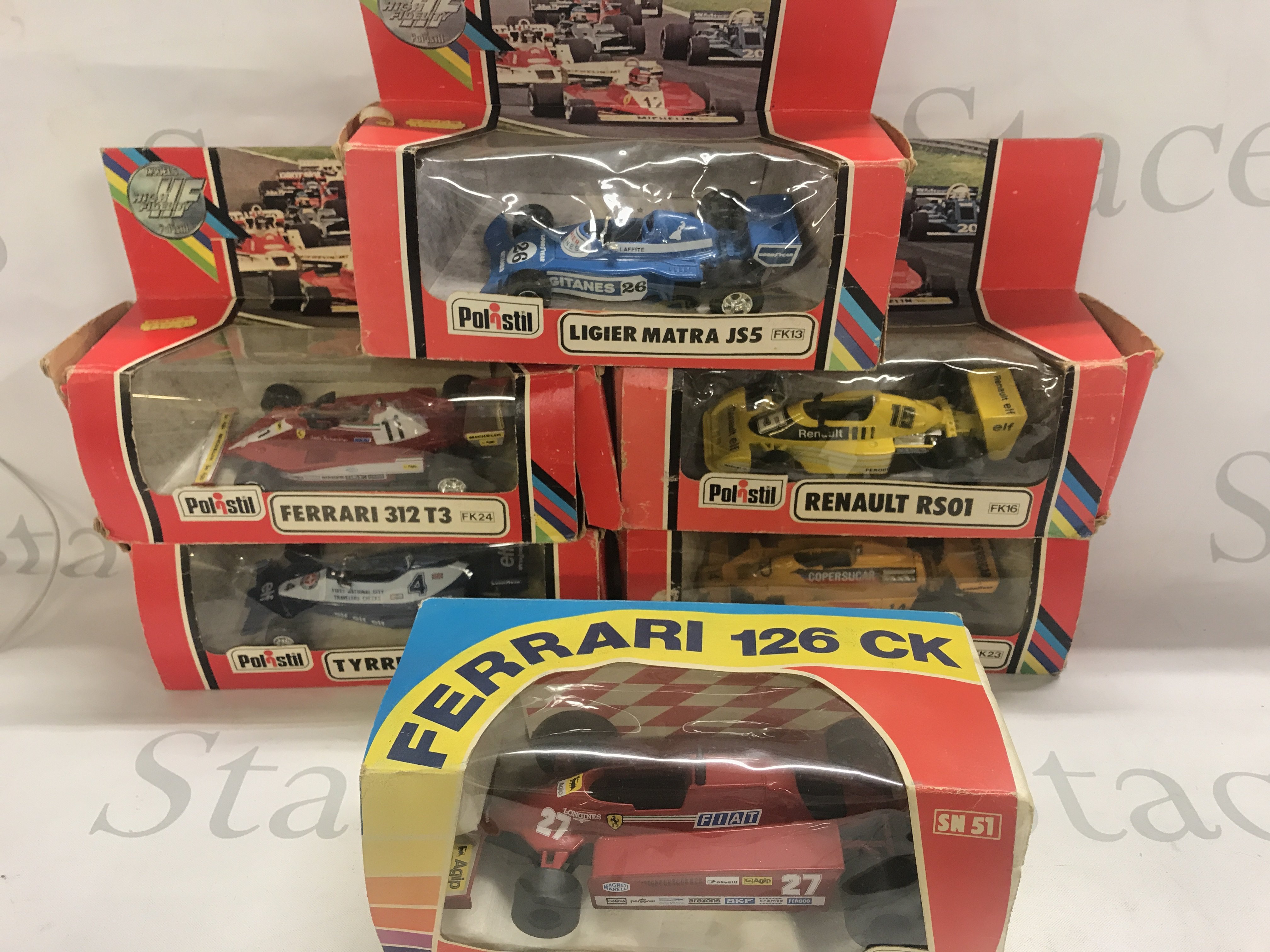 6 Boxed Polistil Diecast F1 Cars. 5 Are 1/32 Scale And 1 Is 1/22 Scale,