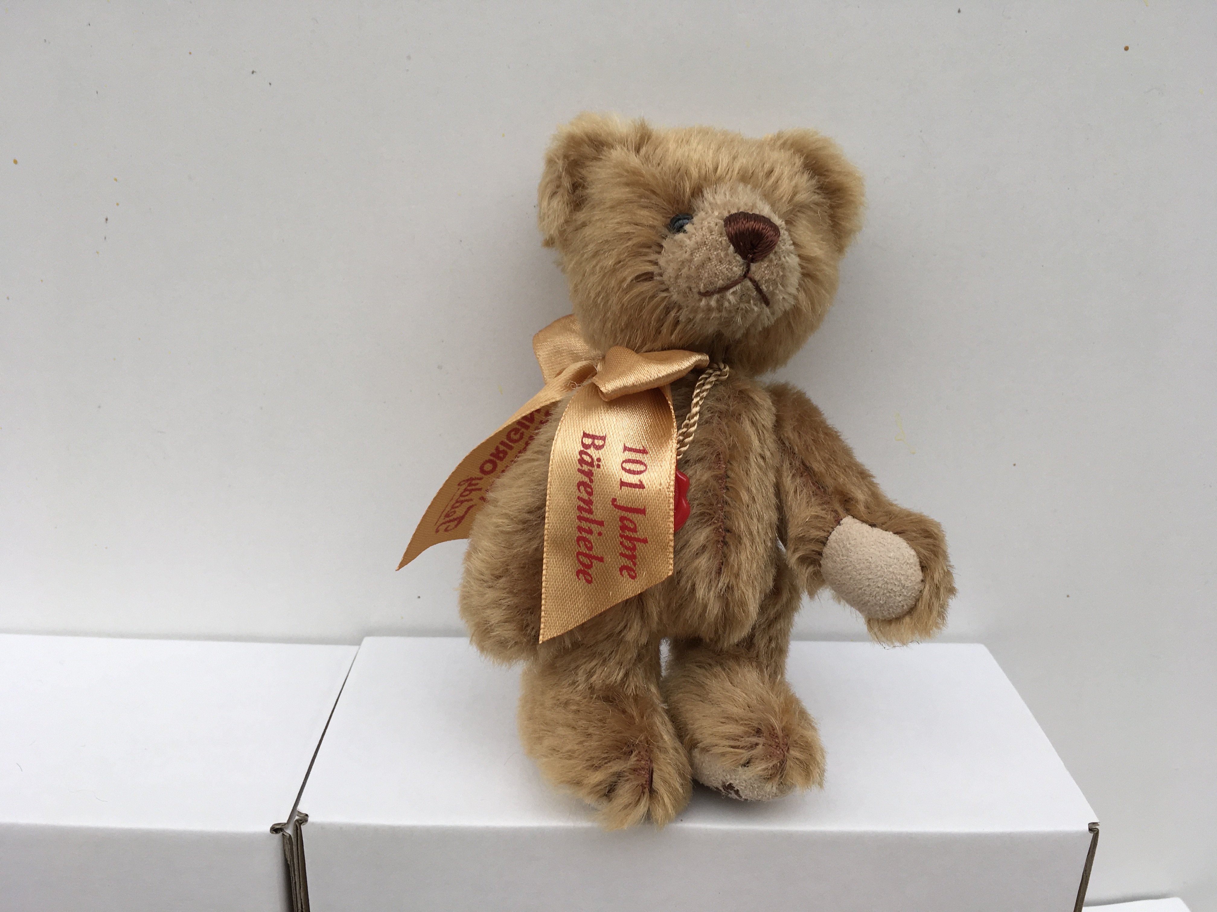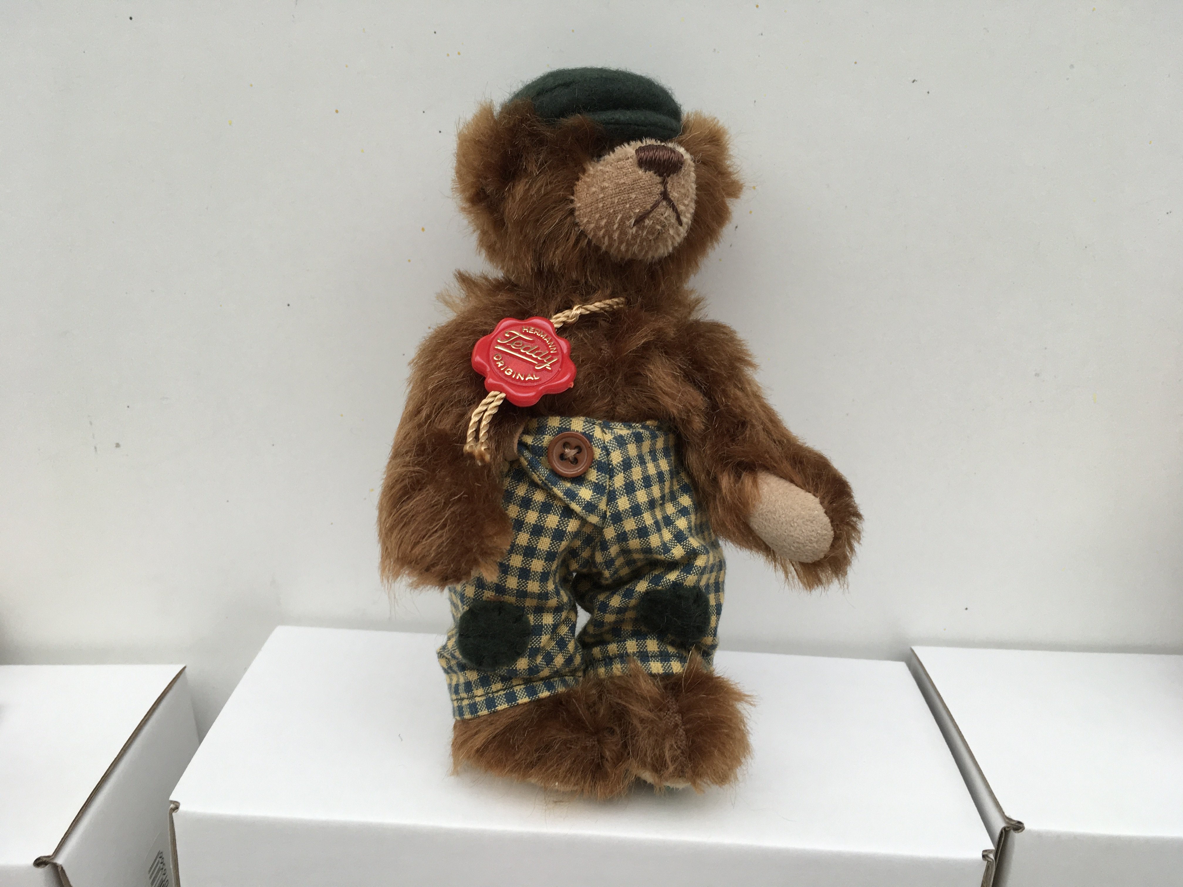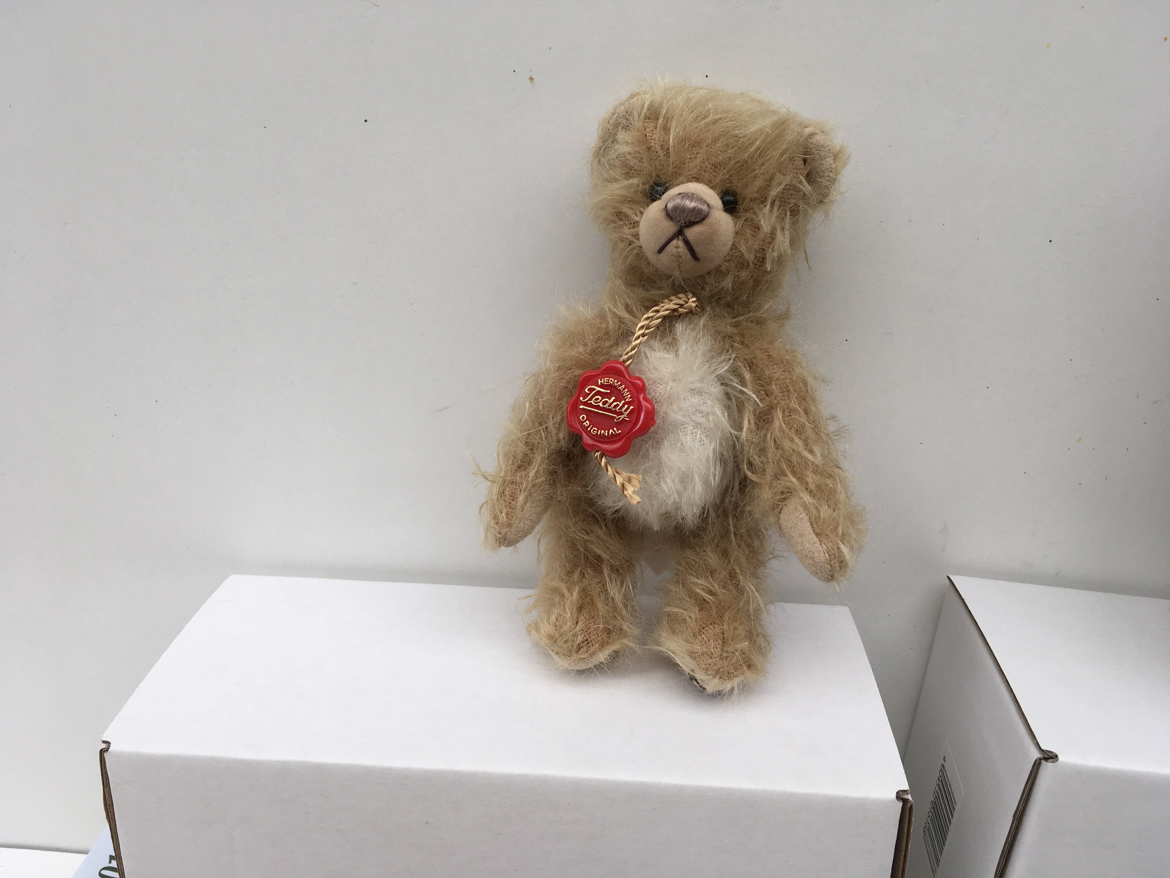 Three boxed Herman minature Teddy bears featuring 2009 dark brown bear a 2013 golden brown bear and a 2015 light brown white tippled bear, includes associated magazine. No reserve.