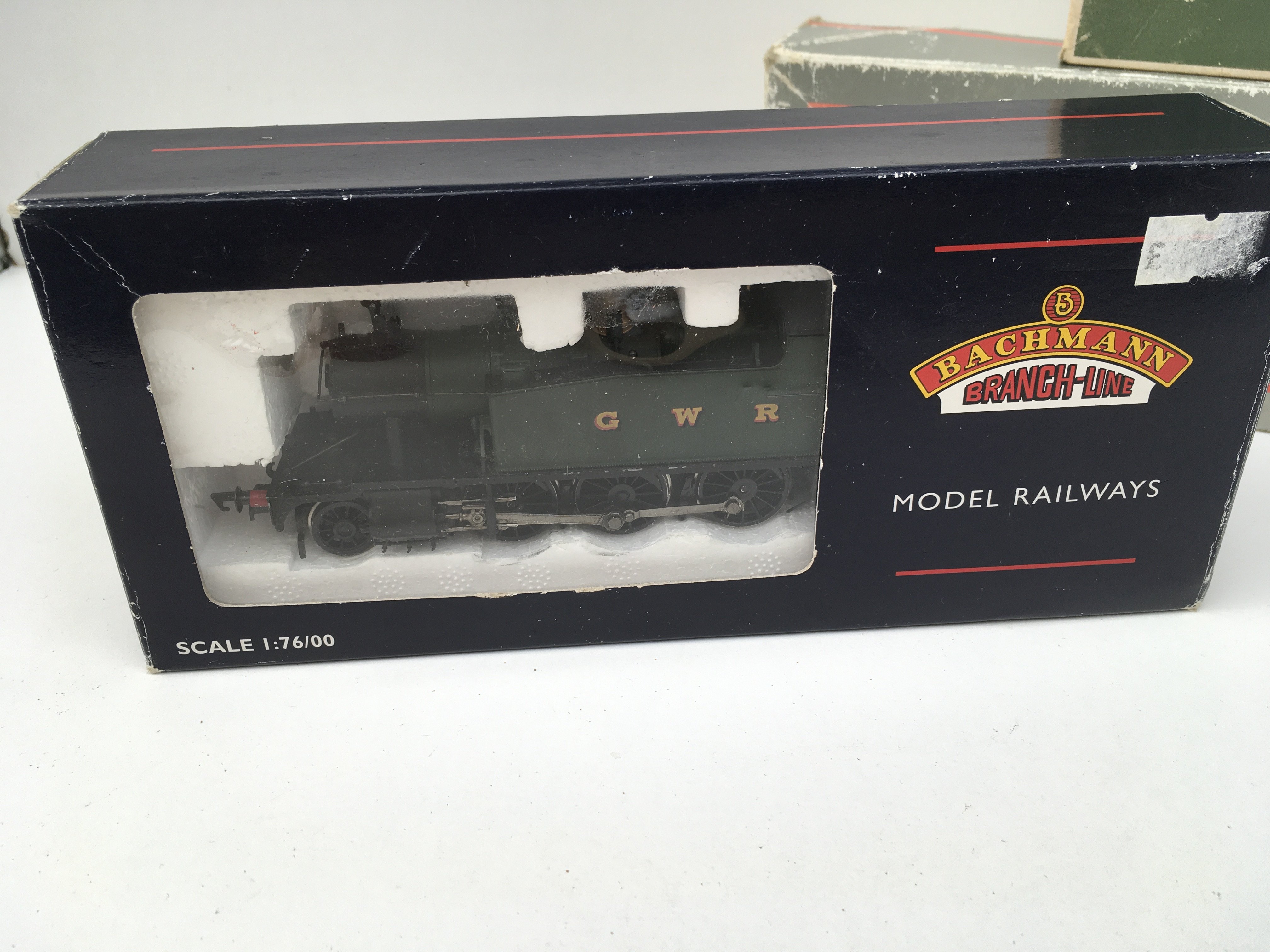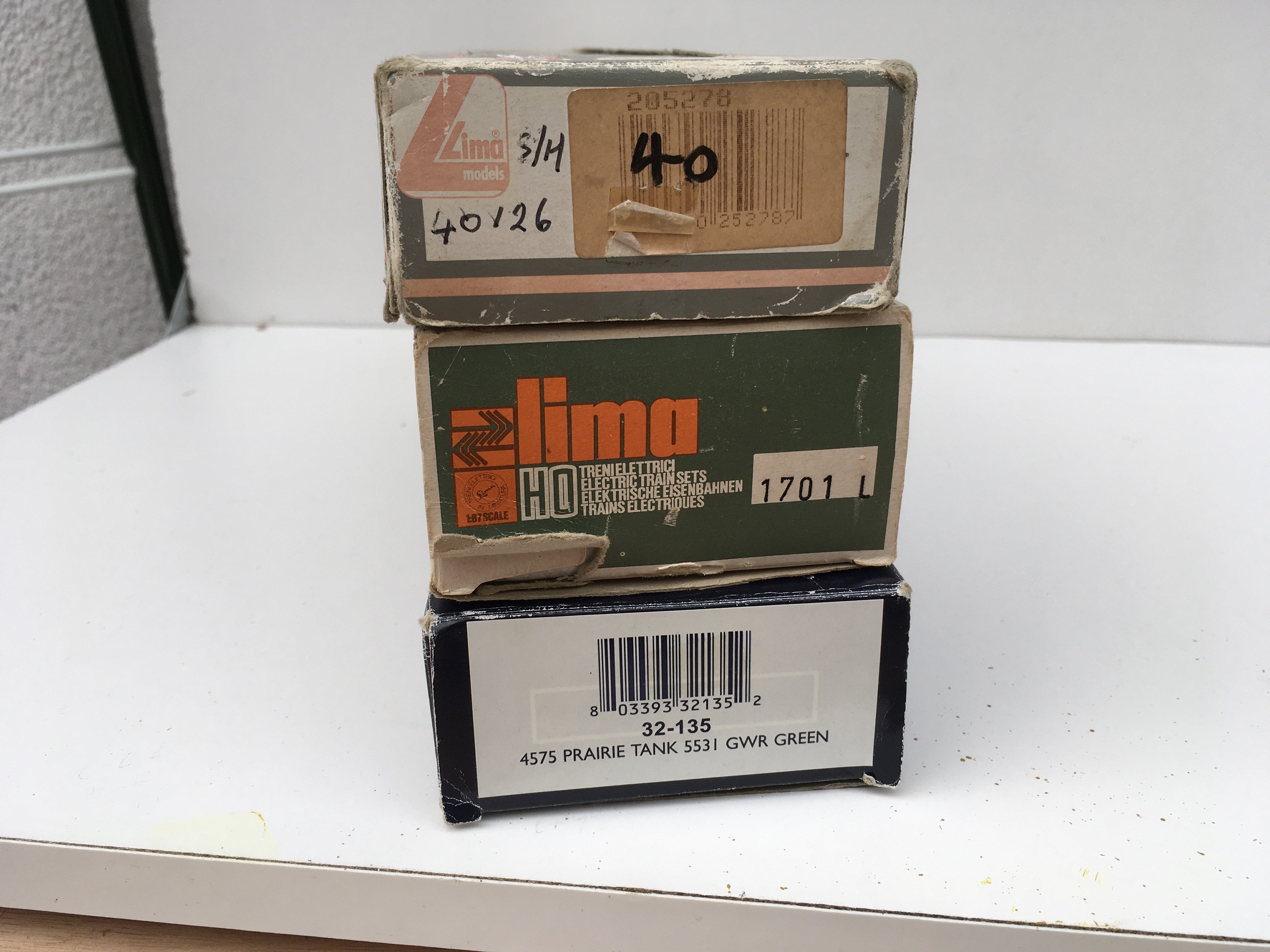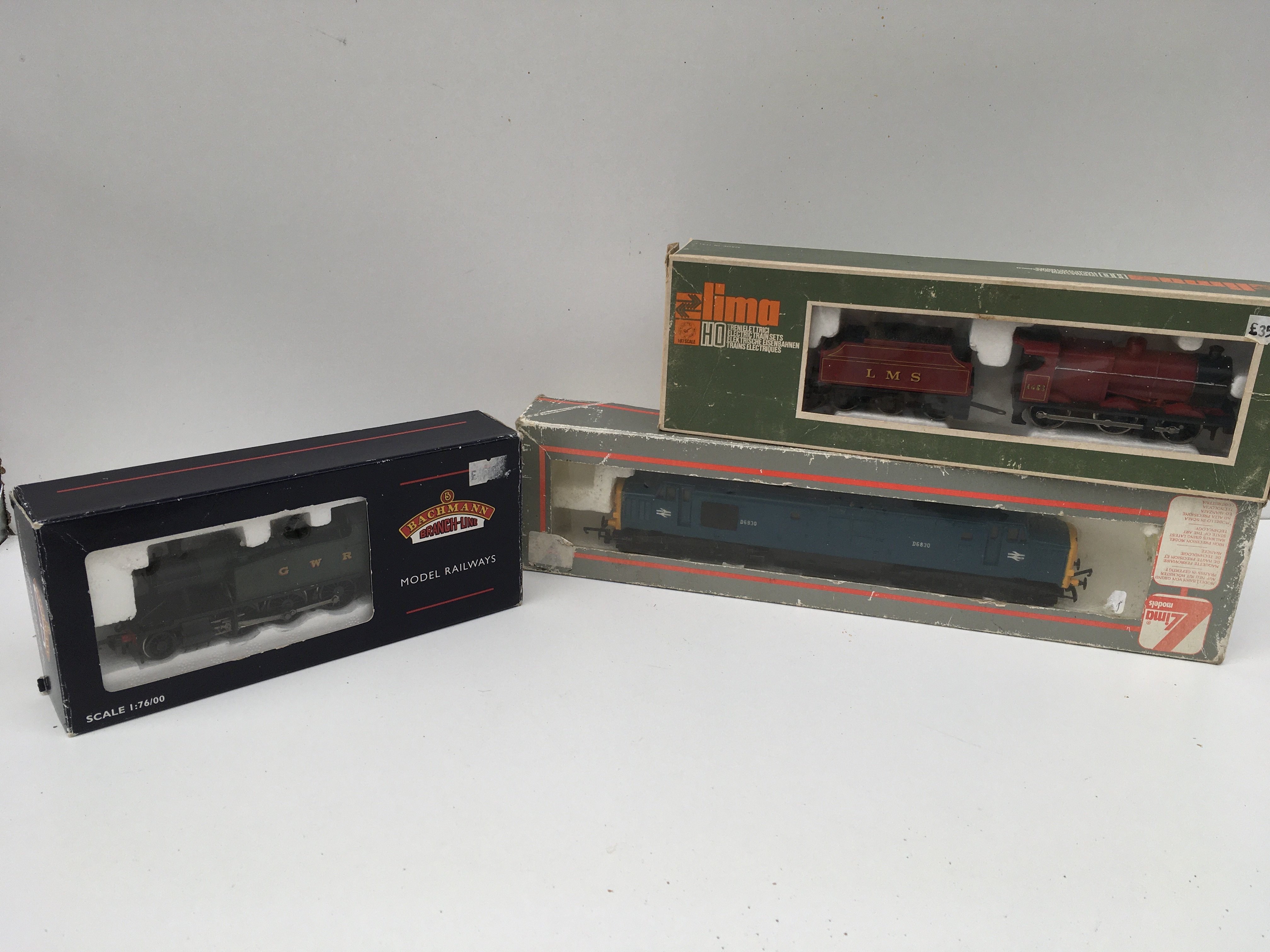 A group of 3 boxed model railway locomotives featuring Bachmann 32.135 GWR Green_.Lima 1701.L and a Lima 40126. OO gauge. No reserve