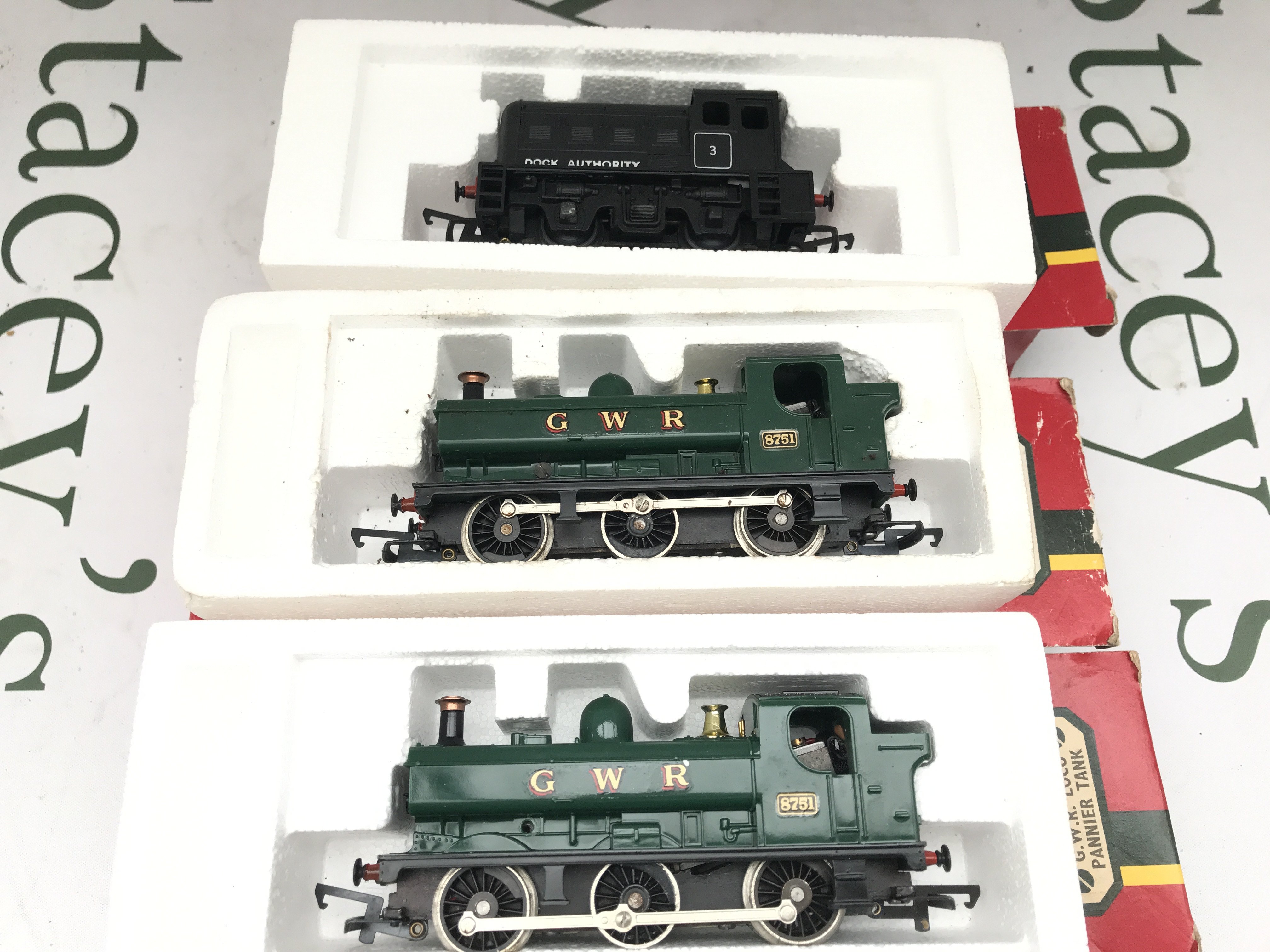 Withdrawn -3 Boxed Hornby 00 Gauge Locomotives. A DockYard Shunter #R.253. And 2 X GWR Pannier Tank #R.041. (3).